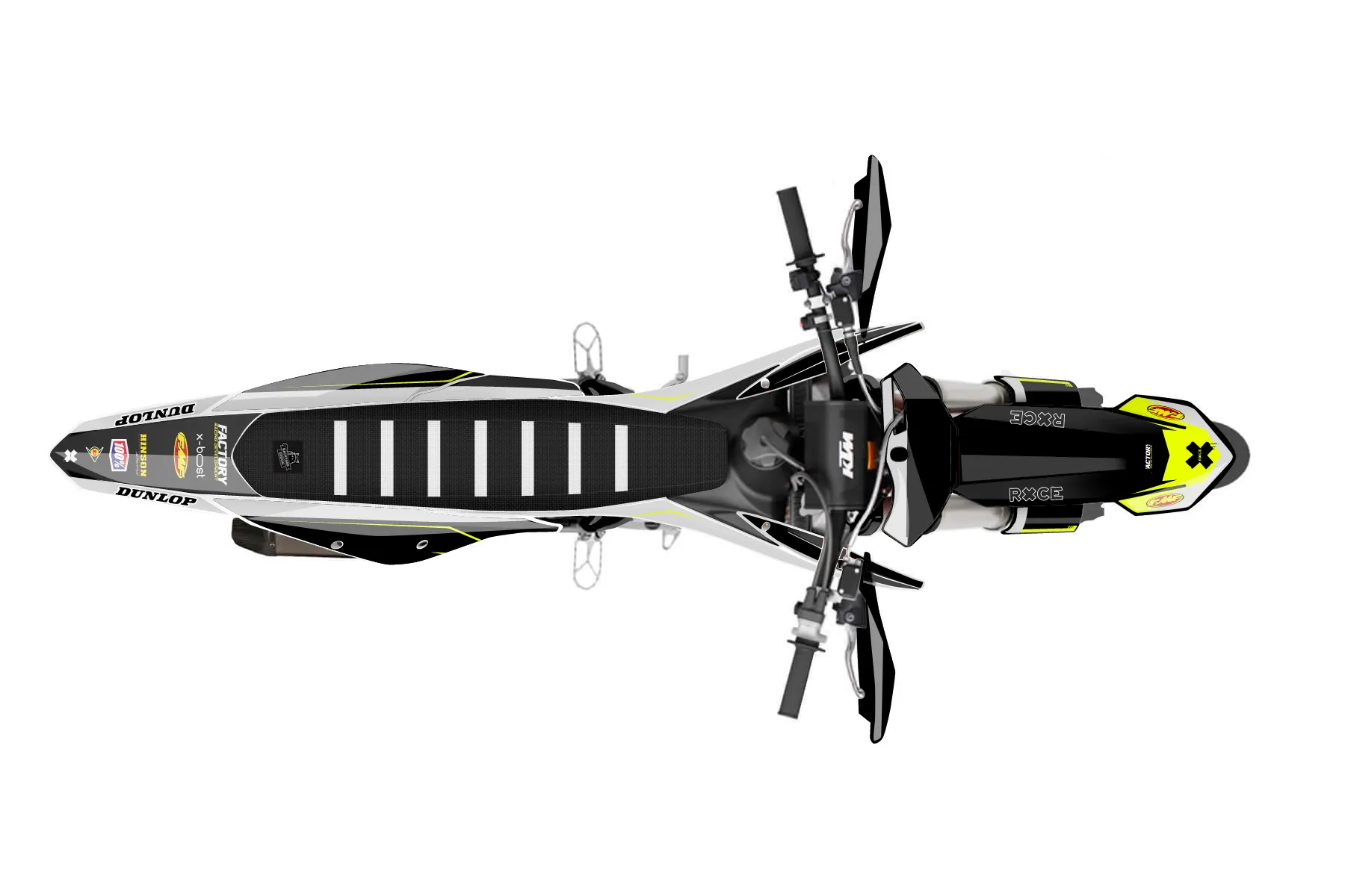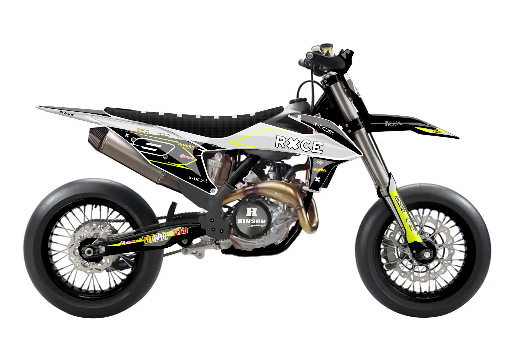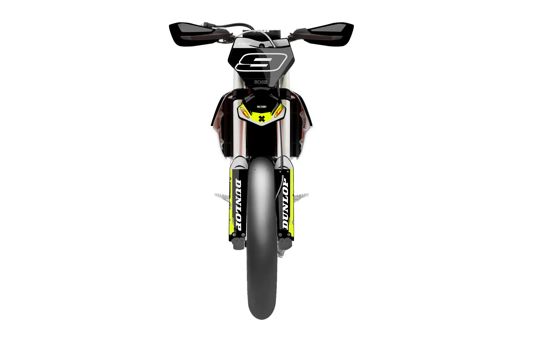 «Close» — готовый комплект графики серии Untucked для KTM Supermoto KTM SMR 450 2021. В комплекте: графика на бак и боковые облицовки, крылья (переднее и заднее), передний щиток, номерные таблички, защита вилки. Материал: ПВХ-винил 80 мкр с холодной ламинацией 300 мкр, общая толщина 380 мкр; покрытие глянцевое или матовое на выбор. Устойчив к UV-излучению, воде, бензину и мойке высокого давления. Клей акриловый на сольвентной основе — постоянный, для гибких пластиков. На простых поверхностях монтируется без нагрева; для сложных изгибов рекомендуем фен. Этот пресет можно заказать как есть или взять за основу в конструкторе: поменять цвета, добавить стартовый номер и свой бренд. Производство — 3–5 рабочих дней, доставка по России СДЭКом или Почтой, по СНГ — курьерскими службами.