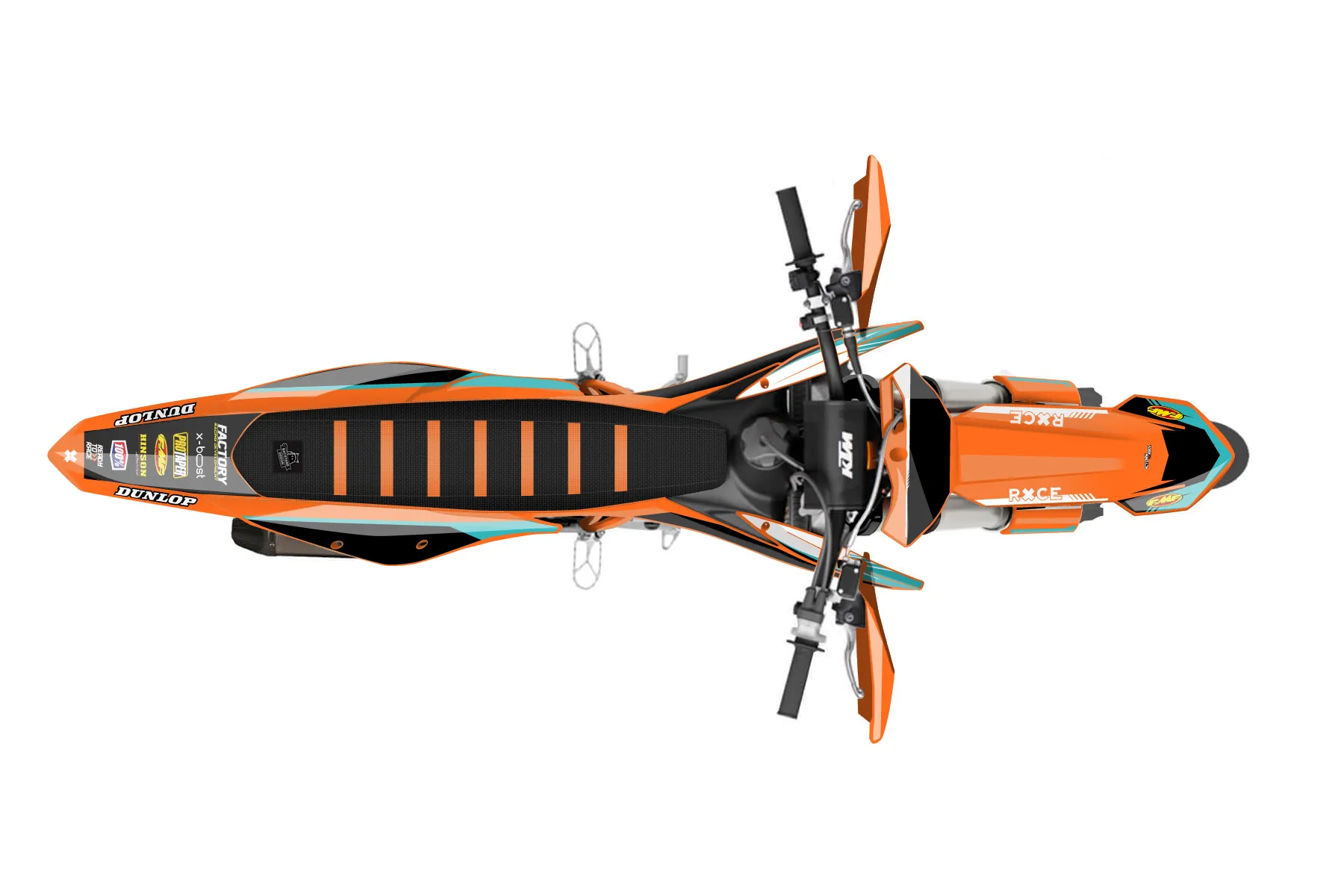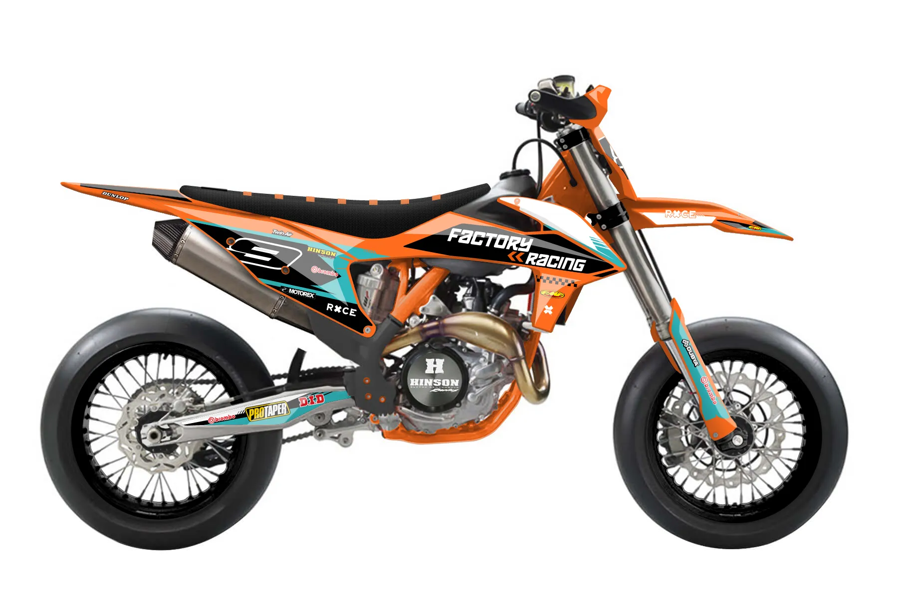 «Concrete» — готовый комплект графики серии Untucked для KTM Supermoto KTM SMR 450 2021. В комплекте: графика на бак и боковые облицовки, крылья (переднее и заднее), передний щиток, номерные таблички, защита вилки. Материал: ПВХ-винил 80 мкр с холодной ламинацией 300 мкр, общая толщина 380 мкр; покрытие глянцевое или матовое на выбор. Устойчив к UV-излучению, воде, бензину и мойке высокого давления. Клей акриловый на сольвентной основе — постоянный, для гибких пластиков. На простых поверхностях монтируется без нагрева; для сложных изгибов рекомендуем фен. Этот пресет можно заказать как есть или взять за основу в конструкторе: поменять цвета, добавить стартовый номер и свой бренд. Производство — 3–5 рабочих дней, доставка по России СДЭКом или Почтой, по СНГ — курьерскими службами.