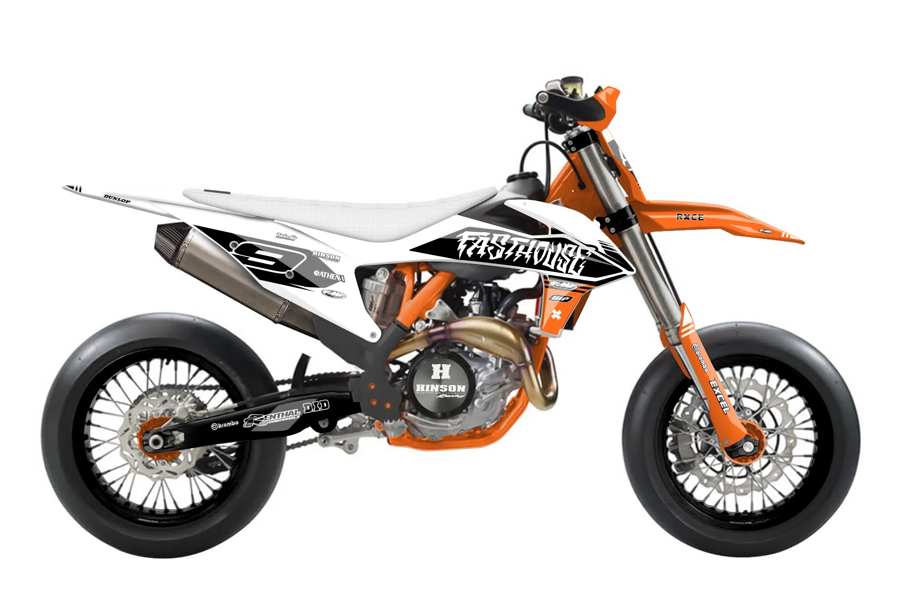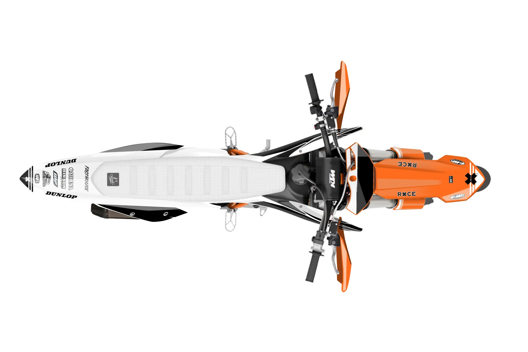 «Infinite» — готовый комплект графики серии Untucked для KTM Supermoto KTM SMR 450 2021. В комплекте: графика на бак и боковые облицовки, крылья (переднее и заднее), передний щиток, номерные таблички, защита вилки. Материал: ПВХ-винил 80 мкр с холодной ламинацией 300 мкр, общая толщина 380 мкр; покрытие глянцевое или матовое на выбор. Устойчив к UV-излучению, воде, бензину и мойке высокого давления. Клей акриловый на сольвентной основе — постоянный, для гибких пластиков. На простых поверхностях монтируется без нагрева; для сложных изгибов рекомендуем фен. Этот пресет можно заказать как есть или взять за основу в конструкторе: поменять цвета, добавить стартовый номер и свой бренд. Производство — 3–5 рабочих дней, доставка по России СДЭКом или Почтой, по СНГ — курьерскими службами.