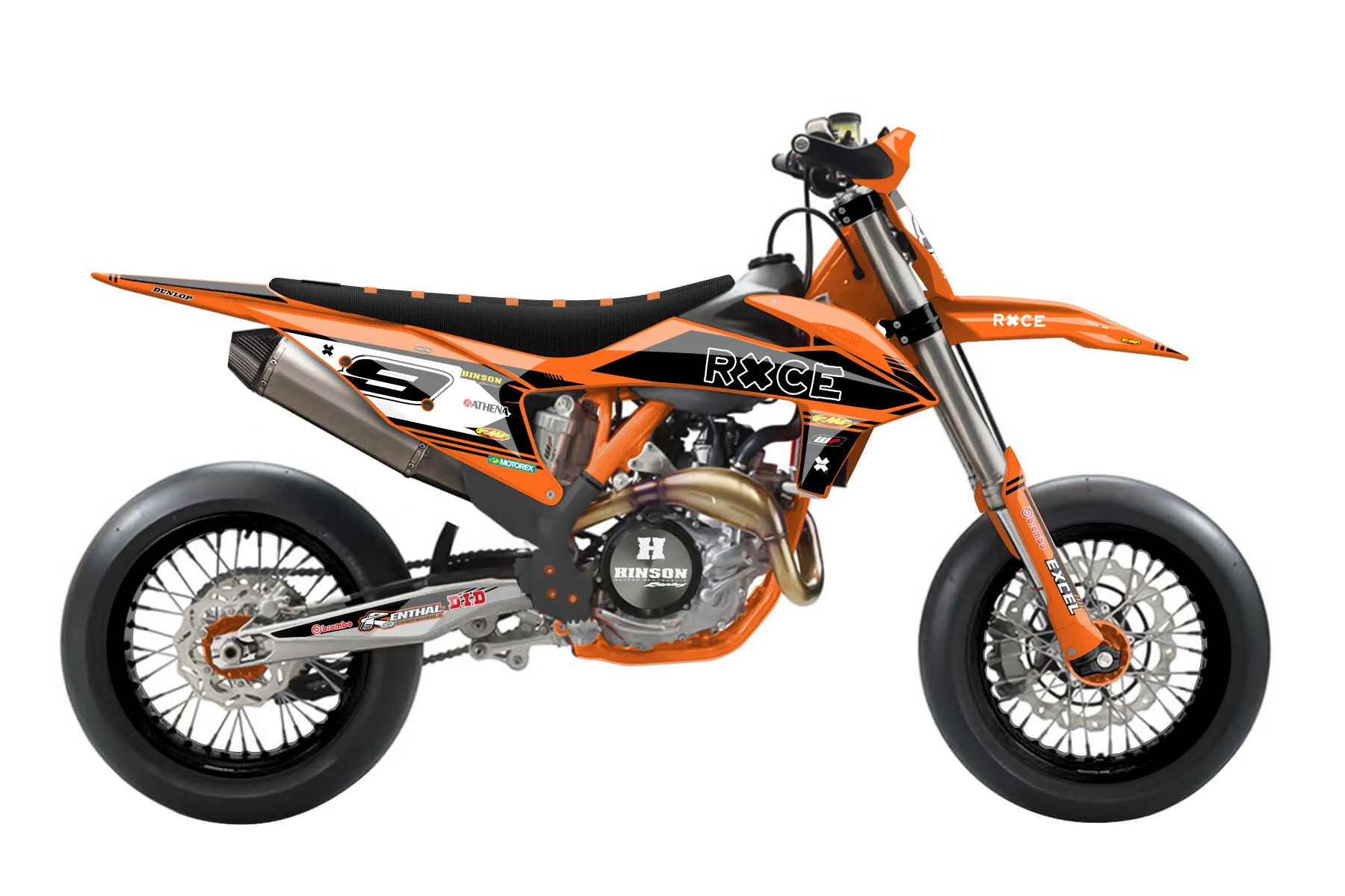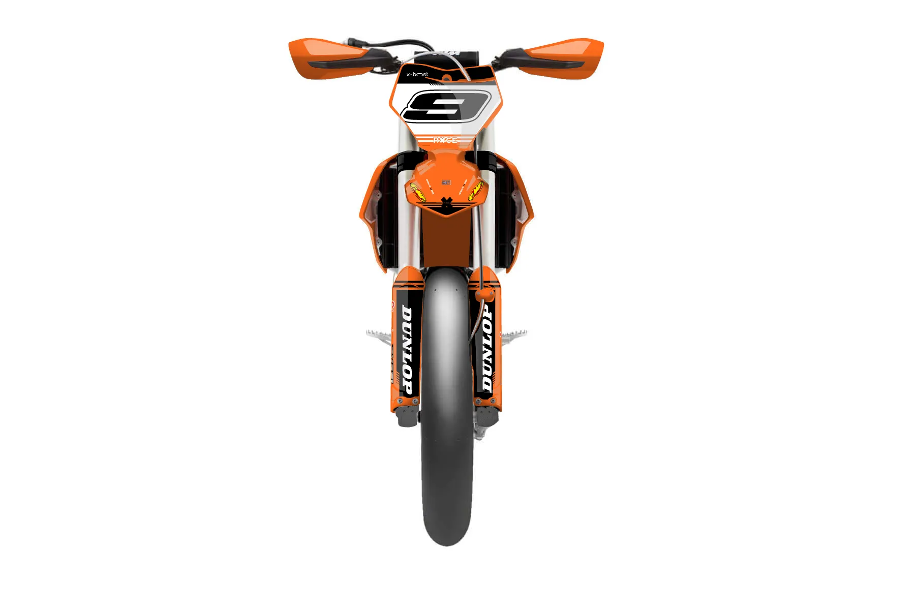 «Intact» — готовый комплект графики серии Untucked для KTM Supermoto KTM SMR 450 2021. В комплекте: графика на бак и боковые облицовки, крылья (переднее и заднее), передний щиток, номерные таблички, защита вилки. Материал: ПВХ-винил 80 мкр с холодной ламинацией 300 мкр, общая толщина 380 мкр; покрытие глянцевое или матовое на выбор. Устойчив к UV-излучению, воде, бензину и мойке высокого давления. Клей акриловый на сольвентной основе — постоянный, для гибких пластиков. На простых поверхностях монтируется без нагрева; для сложных изгибов рекомендуем фен. Этот пресет можно заказать как есть или взять за основу в конструкторе: поменять цвета, добавить стартовый номер и свой бренд. Производство — 3–5 рабочих дней, доставка по России СДЭКом или Почтой, по СНГ — курьерскими службами.