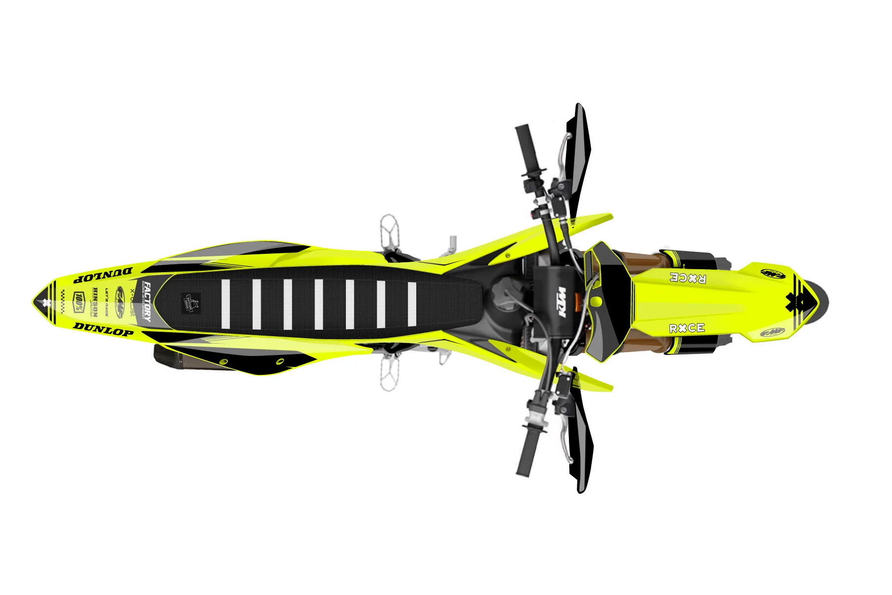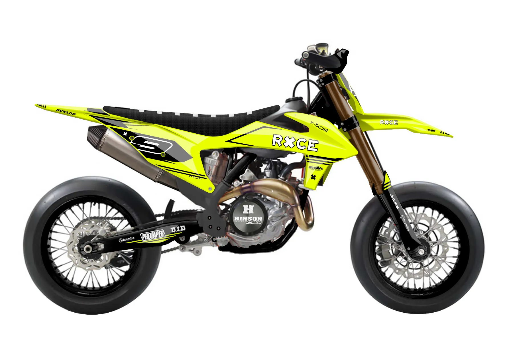 «Loose Neon» — готовый комплект графики серии Untucked для KTM Supermoto KTM SMR 450 2021. В комплекте: графика на бак и боковые облицовки, крылья (переднее и заднее), передний щиток, номерные таблички, защита вилки. Материал: ПВХ-винил 80 мкр с холодной ламинацией 300 мкр, общая толщина 380 мкр; покрытие глянцевое или матовое на выбор. Устойчив к UV-излучению, воде, бензину и мойке высокого давления. Клей акриловый на сольвентной основе — постоянный, для гибких пластиков. На простых поверхностях монтируется без нагрева; для сложных изгибов рекомендуем фен. Этот пресет можно заказать как есть или взять за основу в конструкторе: поменять цвета, добавить стартовый номер и свой бренд. Производство — 3–5 рабочих дней, доставка по России СДЭКом или Почтой, по СНГ — курьерскими службами.