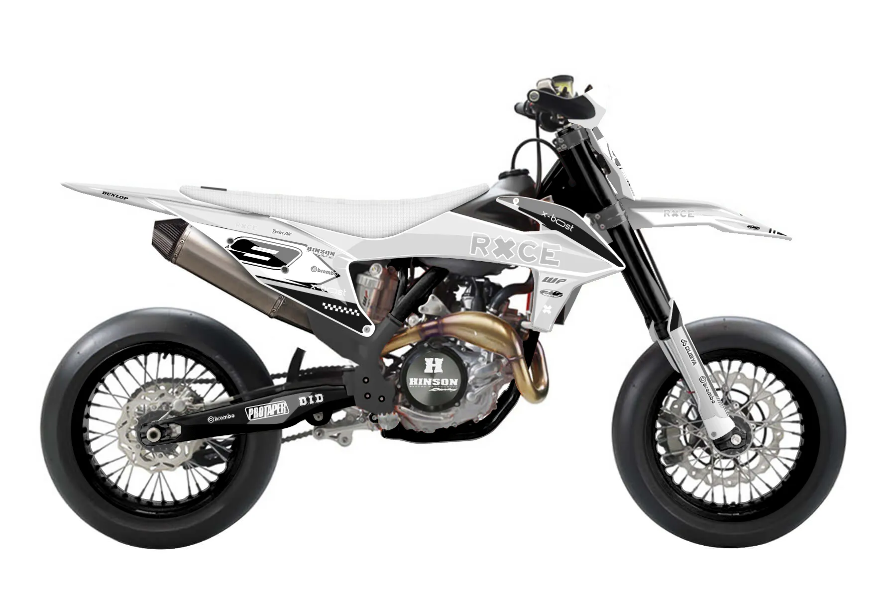 «Nifty» — готовый комплект графики серии Untucked для KTM Supermoto KTM SMR 450 2021. В комплекте: графика на бак и боковые облицовки, крылья (переднее и заднее), передний щиток, номерные таблички, защита вилки. Материал: ПВХ-винил 80 мкр с холодной ламинацией 300 мкр, общая толщина 380 мкр; покрытие глянцевое или матовое на выбор. Устойчив к UV-излучению, воде, бензину и мойке высокого давления. Клей акриловый на сольвентной основе — постоянный, для гибких пластиков. На простых поверхностях монтируется без нагрева; для сложных изгибов рекомендуем фен. Этот пресет можно заказать как есть или взять за основу в конструкторе: поменять цвета, добавить стартовый номер и свой бренд. Производство — 3–5 рабочих дней, доставка по России СДЭКом или Почтой, по СНГ — курьерскими службами.