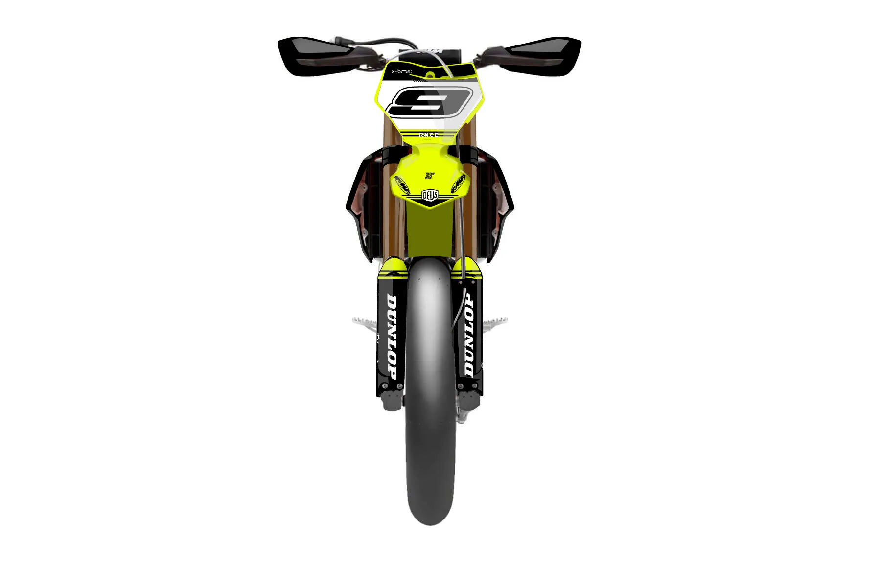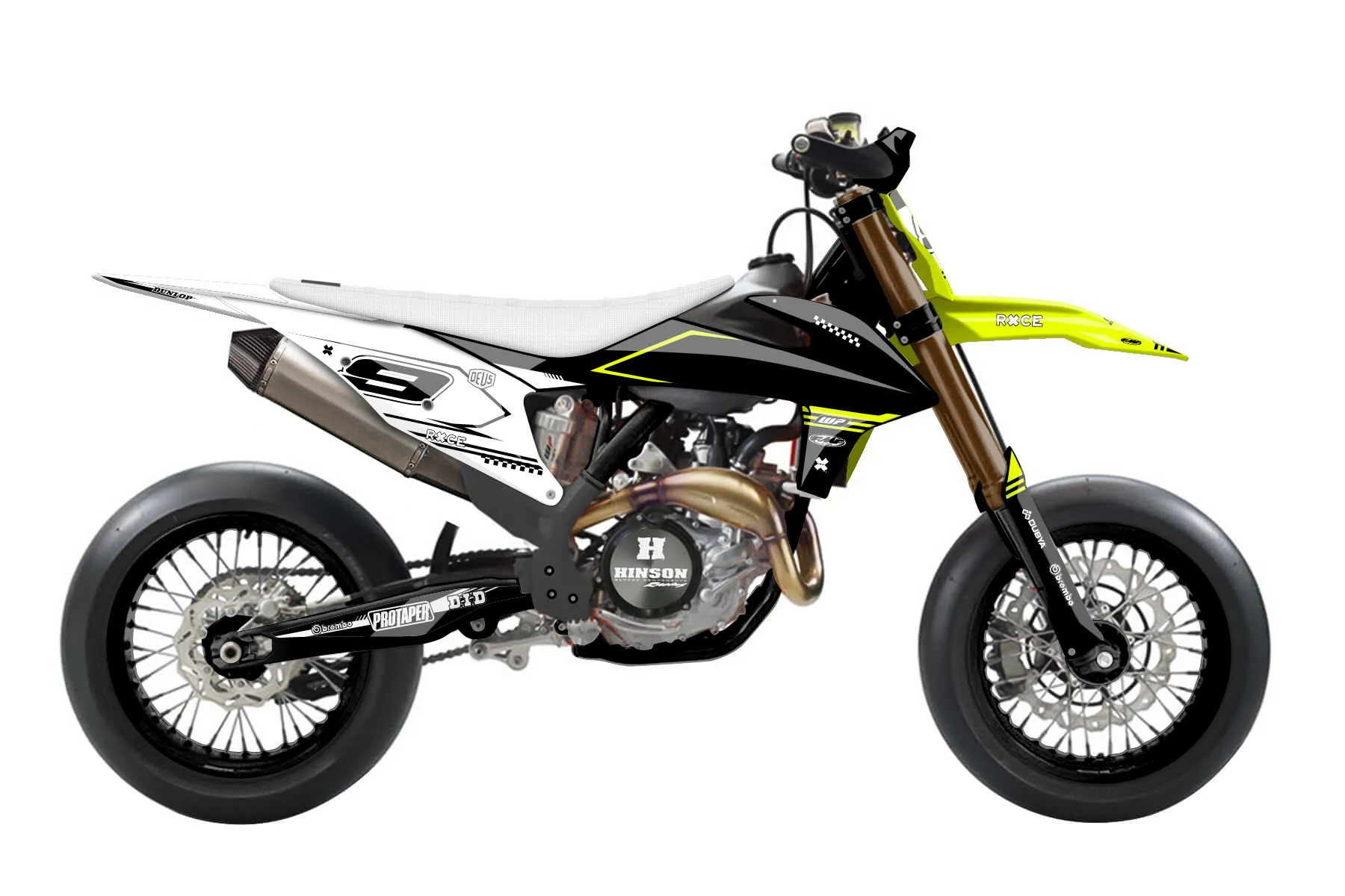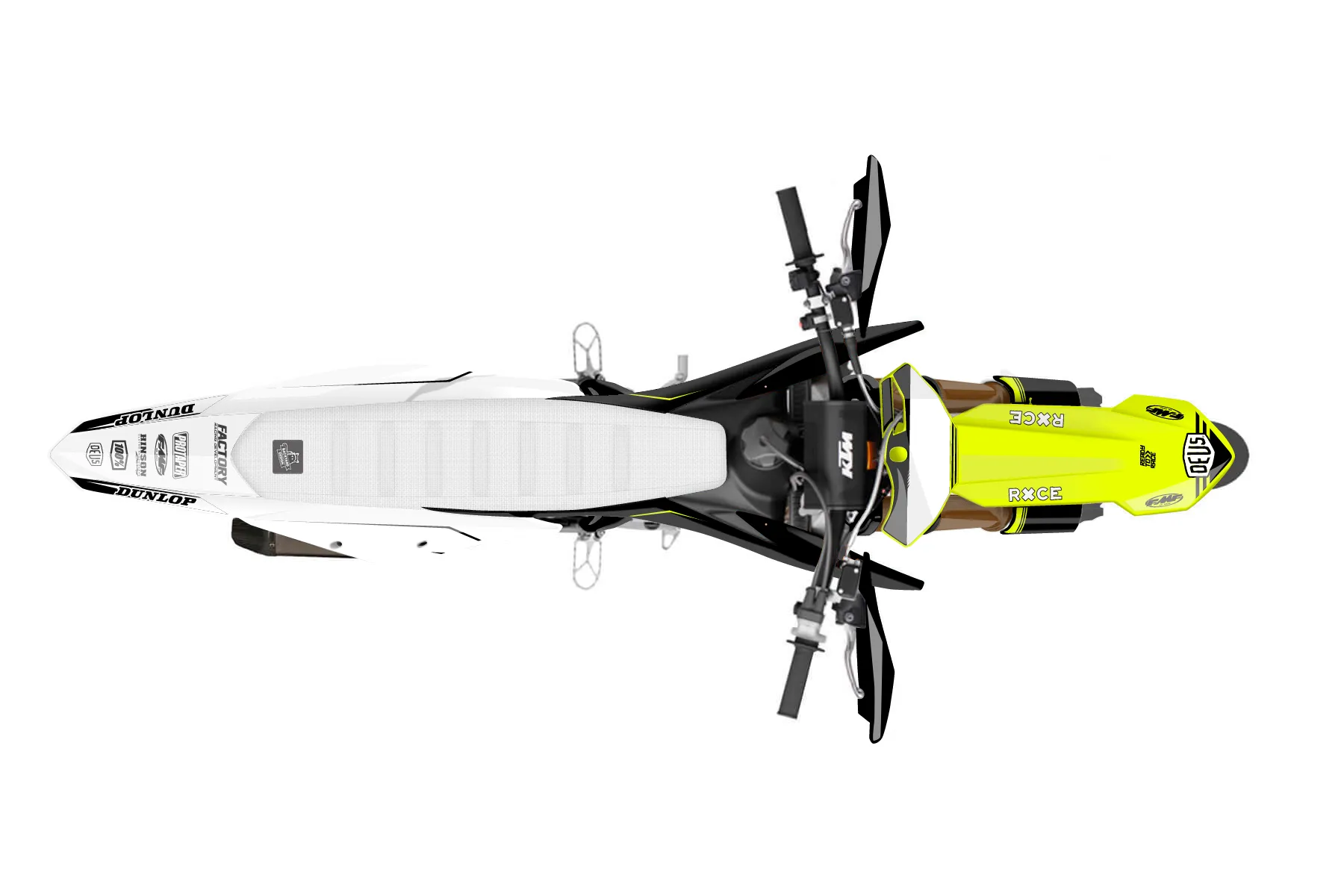 «Ride Neon» — готовый комплект графики серии Untucked для KTM Supermoto KTM SMR 450 2021. В комплекте: графика на бак и боковые облицовки, крылья (переднее и заднее), передний щиток, номерные таблички, защита вилки. Материал: ПВХ-винил 80 мкр с холодной ламинацией 300 мкр, общая толщина 380 мкр; покрытие глянцевое или матовое на выбор. Устойчив к UV-излучению, воде, бензину и мойке высокого давления. Клей акриловый на сольвентной основе — постоянный, для гибких пластиков. На простых поверхностях монтируется без нагрева; для сложных изгибов рекомендуем фен. Этот пресет можно заказать как есть или взять за основу в конструкторе: поменять цвета, добавить стартовый номер и свой бренд. Производство — 3–5 рабочих дней, доставка по России СДЭКом или Почтой, по СНГ — курьерскими службами.