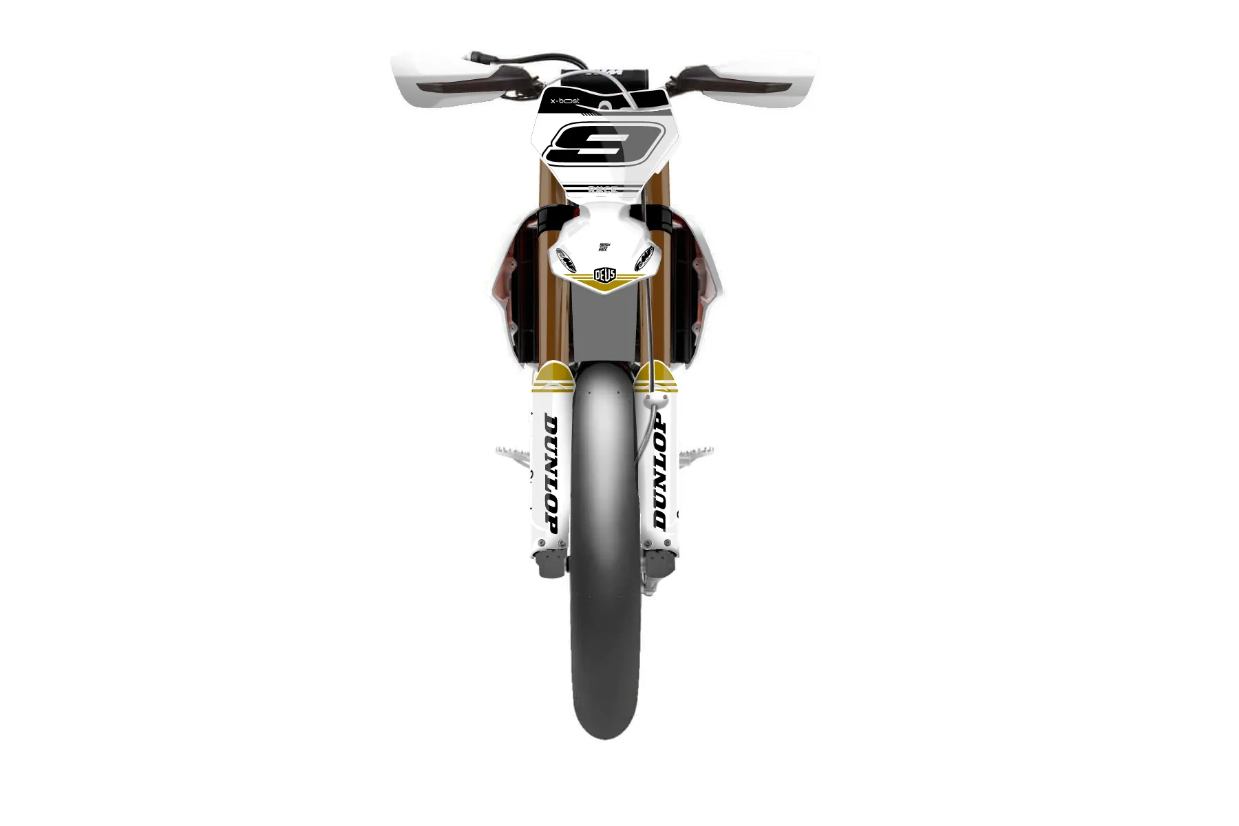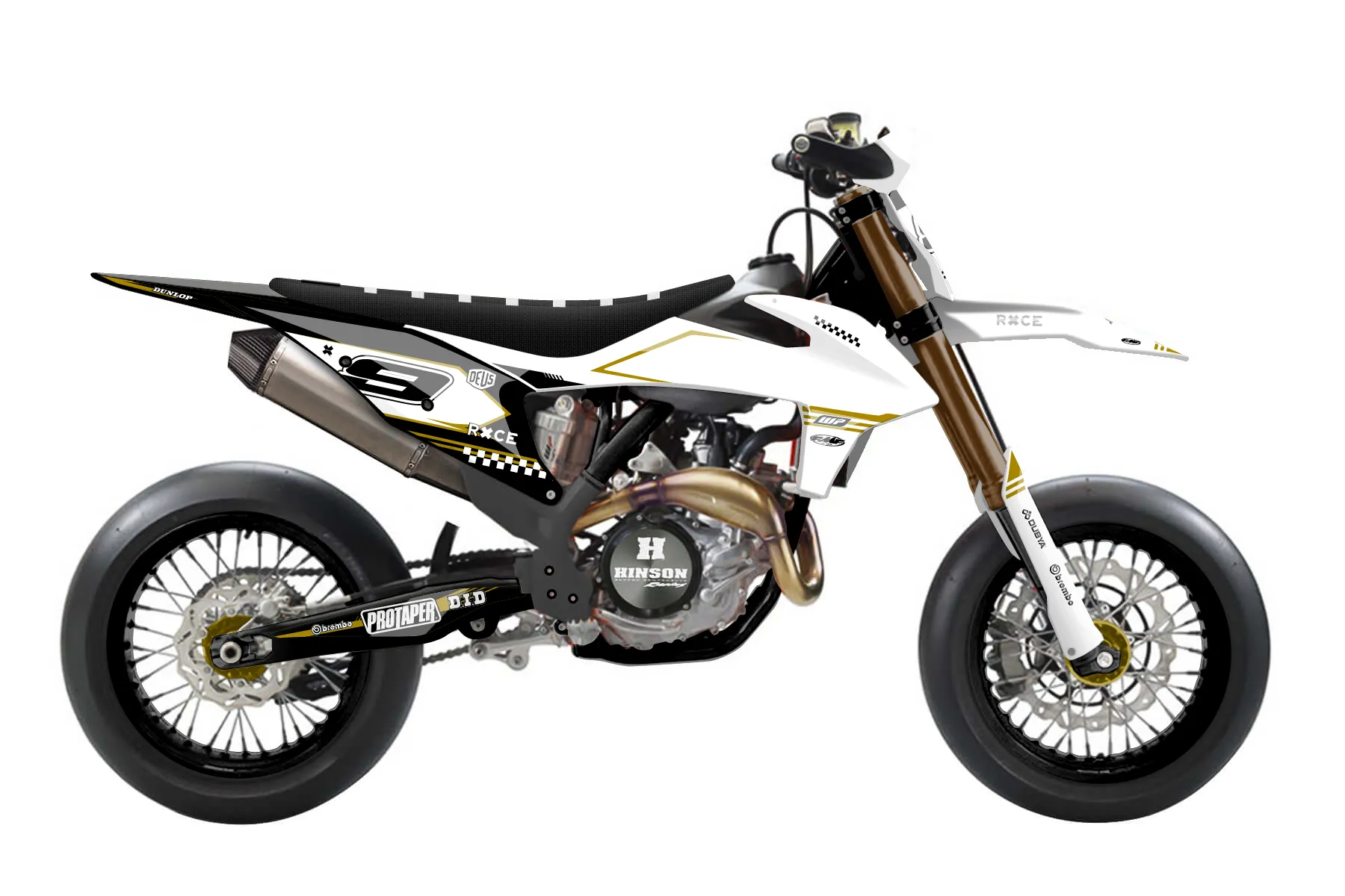 «Sharp» — готовый комплект графики серии Untucked для KTM Supermoto KTM SMR 450 2021. В комплекте: графика на бак и боковые облицовки, крылья (переднее и заднее), передний щиток, номерные таблички, защита вилки. Материал: ПВХ-винил 80 мкр с холодной ламинацией 300 мкр, общая толщина 380 мкр; покрытие глянцевое или матовое на выбор. Устойчив к UV-излучению, воде, бензину и мойке высокого давления. Клей акриловый на сольвентной основе — постоянный, для гибких пластиков. На простых поверхностях монтируется без нагрева; для сложных изгибов рекомендуем фен. Этот пресет можно заказать как есть или взять за основу в конструкторе: поменять цвета, добавить стартовый номер и свой бренд. Производство — 3–5 рабочих дней, доставка по России СДЭКом или Почтой, по СНГ — курьерскими службами.