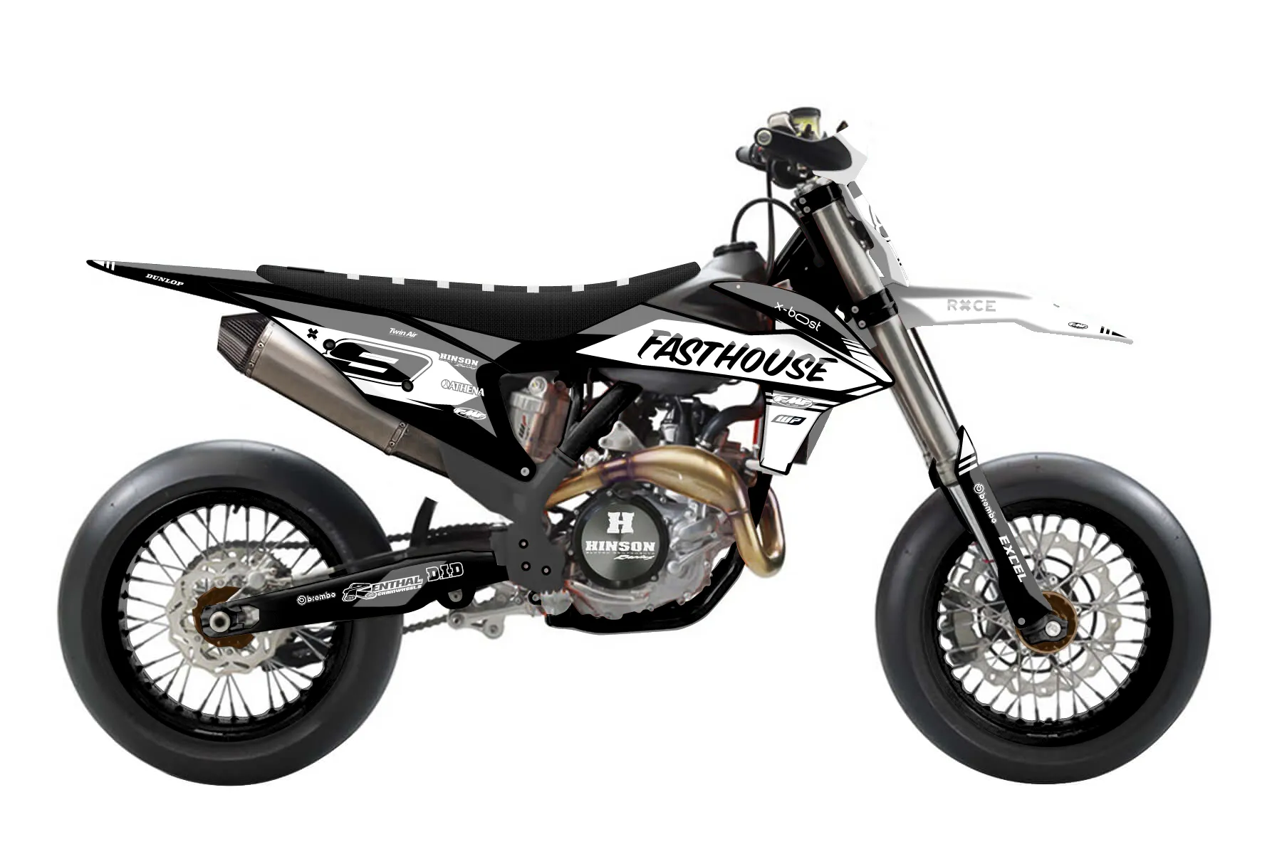 «Specific» — готовый комплект графики серии Untucked для KTM Supermoto KTM SMR 450 2021. В комплекте: графика на бак и боковые облицовки, крылья (переднее и заднее), передний щиток, номерные таблички, защита вилки. Материал: ПВХ-винил 80 мкр с холодной ламинацией 300 мкр, общая толщина 380 мкр; покрытие глянцевое или матовое на выбор. Устойчив к UV-излучению, воде, бензину и мойке высокого давления. Клей акриловый на сольвентной основе — постоянный, для гибких пластиков. На простых поверхностях монтируется без нагрева; для сложных изгибов рекомендуем фен. Этот пресет можно заказать как есть или взять за основу в конструкторе: поменять цвета, добавить стартовый номер и свой бренд. Производство — 3–5 рабочих дней, доставка по России СДЭКом или Почтой, по СНГ — курьерскими службами.