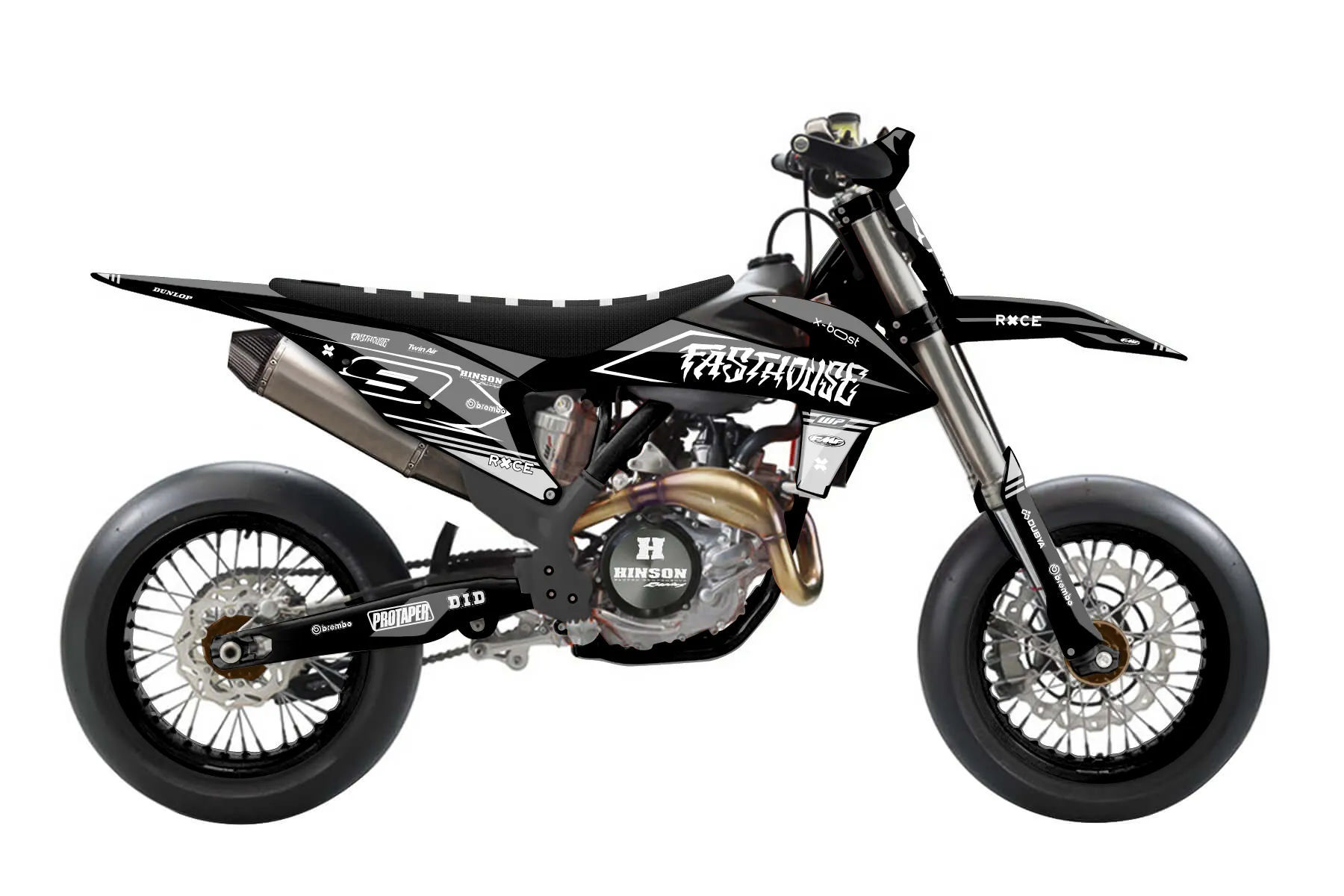 «Speedhouse» — готовый комплект графики серии Untucked для KTM Supermoto KTM SMR 450 2021. В комплекте: графика на бак и боковые облицовки, крылья (переднее и заднее), передний щиток, номерные таблички, защита вилки. Материал: ПВХ-винил 80 мкр с холодной ламинацией 300 мкр, общая толщина 380 мкр; покрытие глянцевое или матовое на выбор. Устойчив к UV-излучению, воде, бензину и мойке высокого давления. Клей акриловый на сольвентной основе — постоянный, для гибких пластиков. На простых поверхностях монтируется без нагрева; для сложных изгибов рекомендуем фен. Этот пресет можно заказать как есть или взять за основу в конструкторе: поменять цвета, добавить стартовый номер и свой бренд. Производство — 3–5 рабочих дней, доставка по России СДЭКом или Почтой, по СНГ — курьерскими службами.
