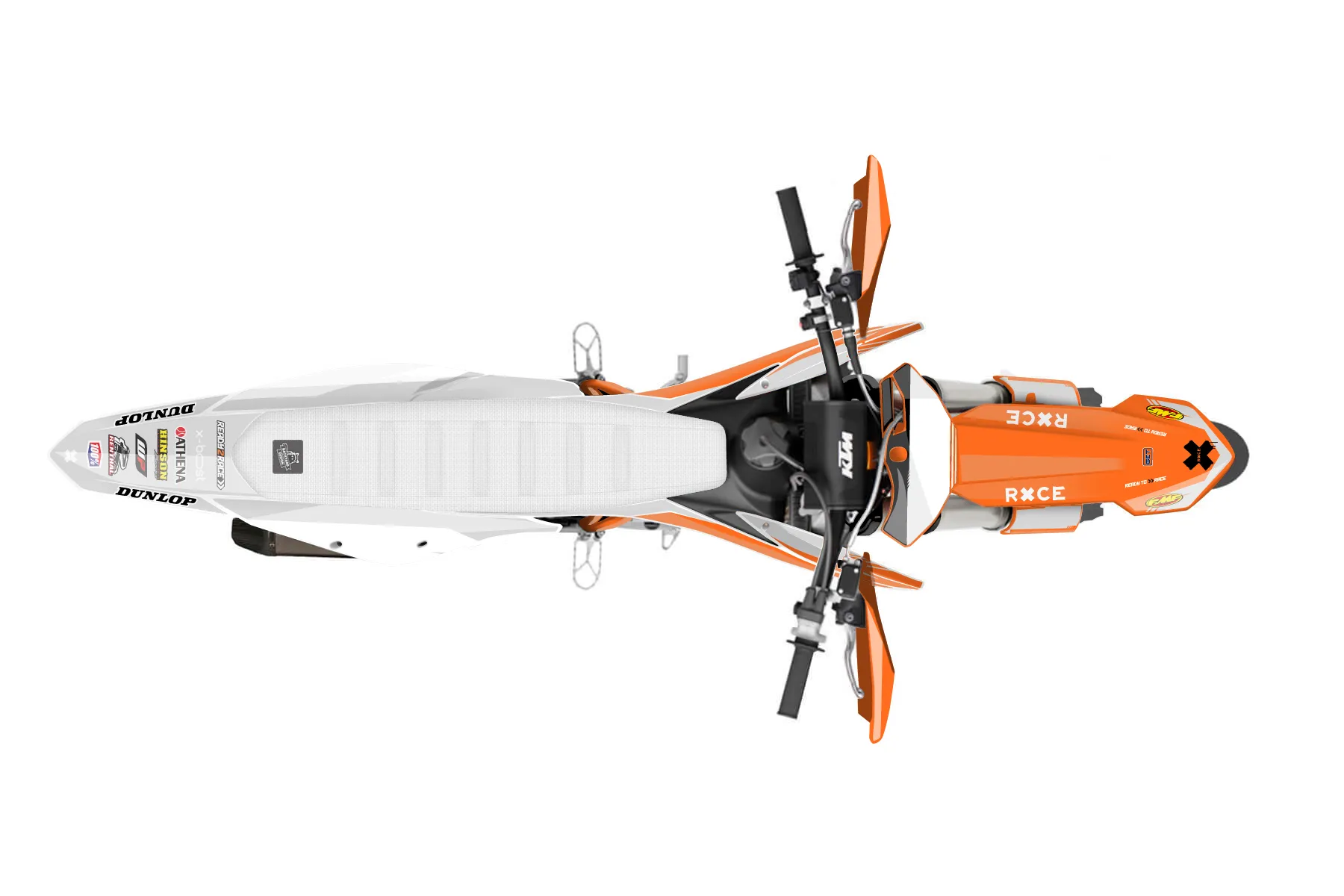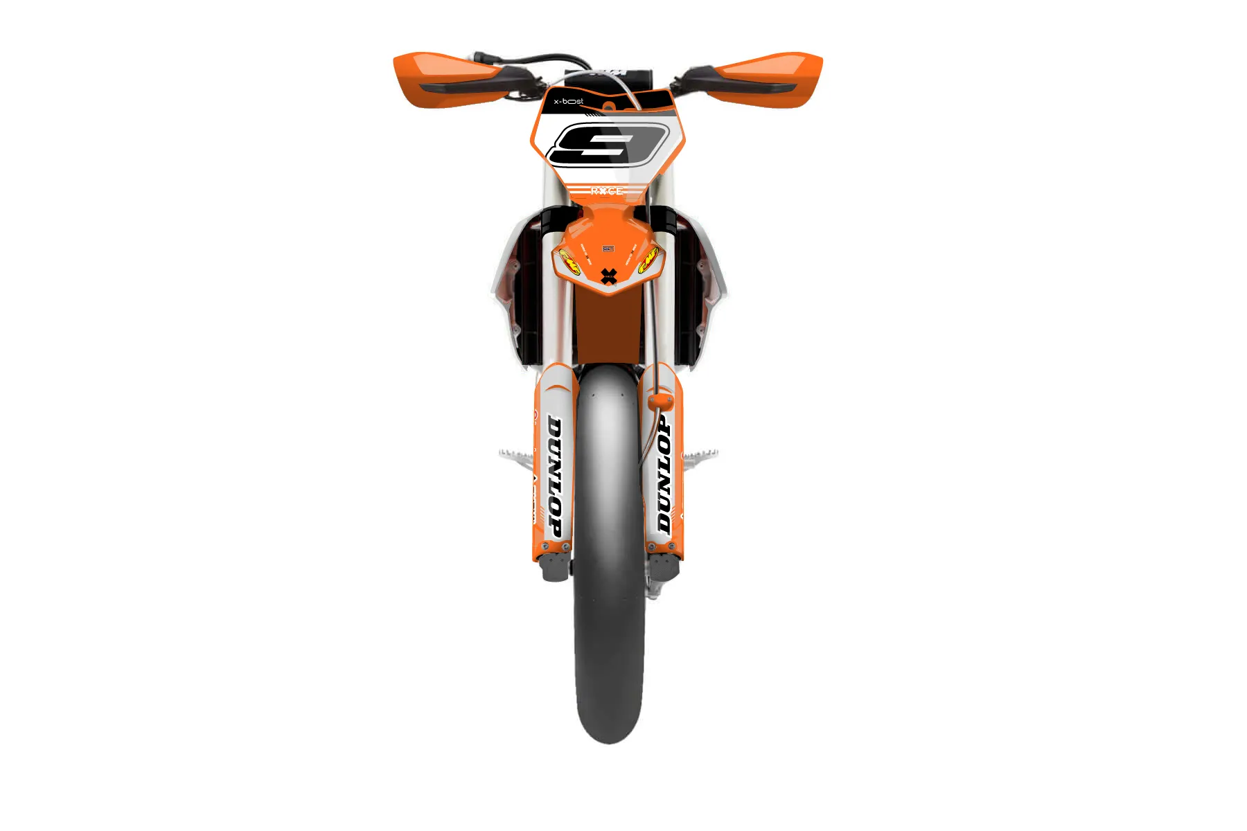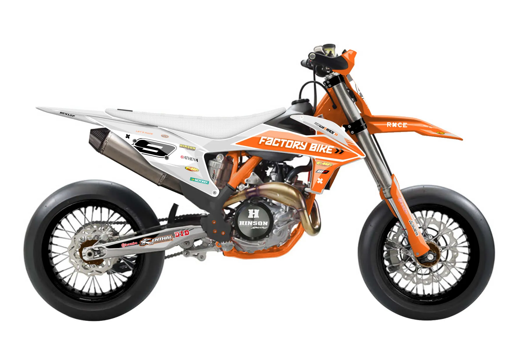 «Swell» — готовый комплект графики серии Untucked для KTM Supermoto KTM SMR 450 2021. В комплекте: графика на бак и боковые облицовки, крылья (переднее и заднее), передний щиток, номерные таблички, защита вилки. Материал: ПВХ-винил 80 мкр с холодной ламинацией 300 мкр, общая толщина 380 мкр; покрытие глянцевое или матовое на выбор. Устойчив к UV-излучению, воде, бензину и мойке высокого давления. Клей акриловый на сольвентной основе — постоянный, для гибких пластиков. На простых поверхностях монтируется без нагрева; для сложных изгибов рекомендуем фен. Этот пресет можно заказать как есть или взять за основу в конструкторе: поменять цвета, добавить стартовый номер и свой бренд. Производство — 3–5 рабочих дней, доставка по России СДЭКом или Почтой, по СНГ — курьерскими службами.