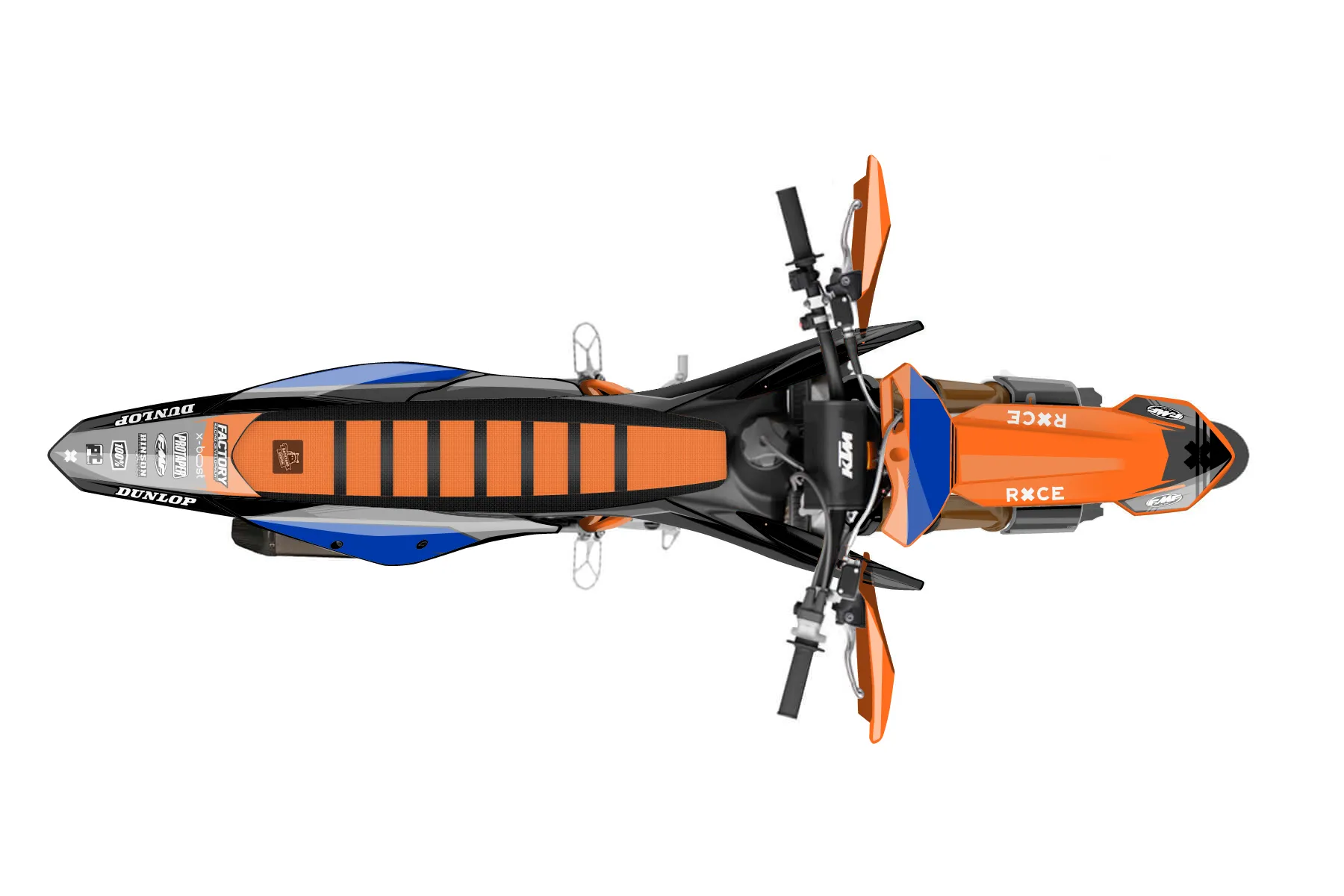 «Ultimate» — готовый комплект графики серии Untucked для KTM Supermoto KTM SMR 450 2021. В комплекте: графика на бак и боковые облицовки, крылья (переднее и заднее), передний щиток, номерные таблички, защита вилки. Материал: ПВХ-винил 80 мкр с холодной ламинацией 300 мкр, общая толщина 380 мкр; покрытие глянцевое или матовое на выбор. Устойчив к UV-излучению, воде, бензину и мойке высокого давления. Клей акриловый на сольвентной основе — постоянный, для гибких пластиков. На простых поверхностях монтируется без нагрева; для сложных изгибов рекомендуем фен. Этот пресет можно заказать как есть или взять за основу в конструкторе: поменять цвета, добавить стартовый номер и свой бренд. Производство — 3–5 рабочих дней, доставка по России СДЭКом или Почтой, по СНГ — курьерскими службами.