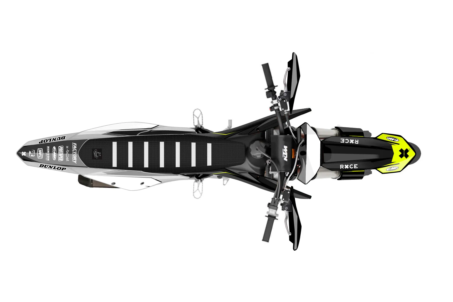 «Vivid Neon» — готовый комплект графики серии Untucked для KTM Supermoto KTM SMR 450 2021. В комплекте: графика на бак и боковые облицовки, крылья (переднее и заднее), передний щиток, номерные таблички, защита вилки. Материал: ПВХ-винил 80 мкр с холодной ламинацией 300 мкр, общая толщина 380 мкр; покрытие глянцевое или матовое на выбор. Устойчив к UV-излучению, воде, бензину и мойке высокого давления. Клей акриловый на сольвентной основе — постоянный, для гибких пластиков. На простых поверхностях монтируется без нагрева; для сложных изгибов рекомендуем фен. Этот пресет можно заказать как есть или взять за основу в конструкторе: поменять цвета, добавить стартовый номер и свой бренд. Производство — 3–5 рабочих дней, доставка по России СДЭКом или Почтой, по СНГ — курьерскими службами.