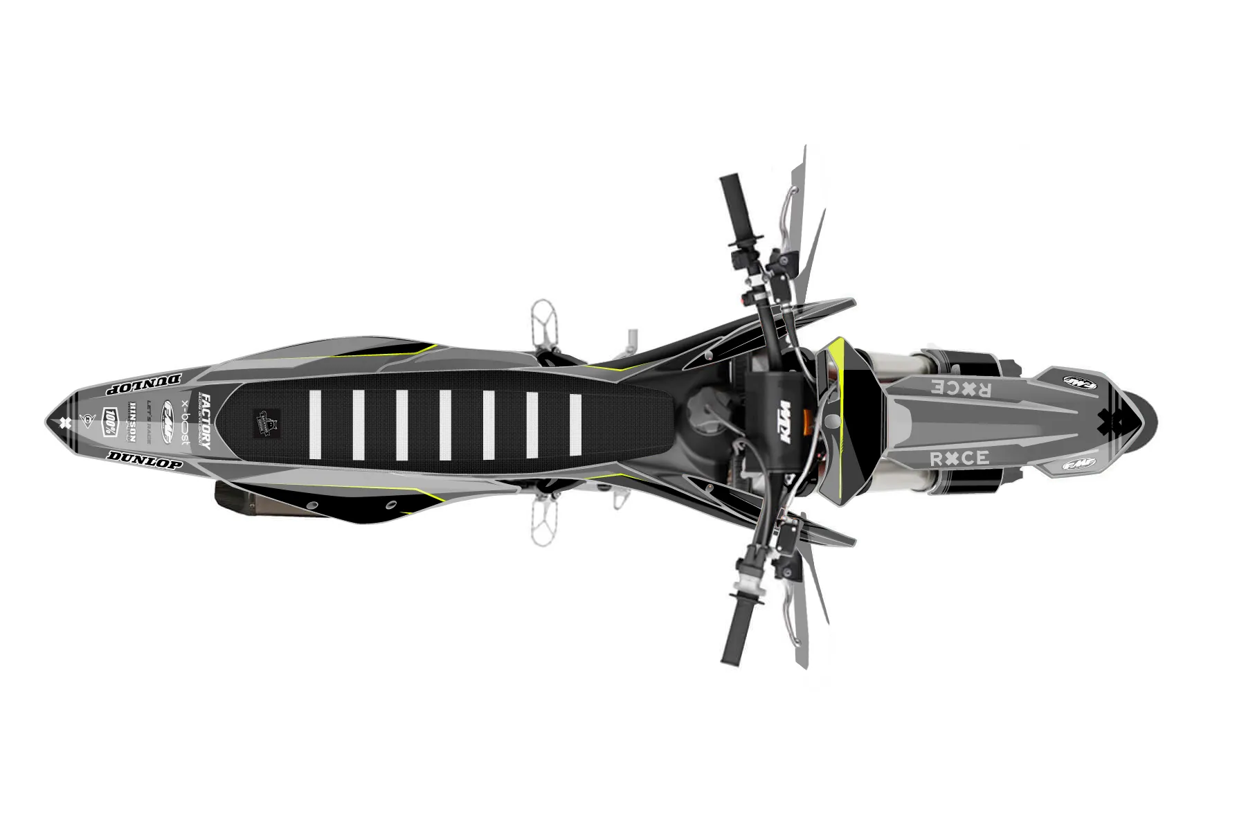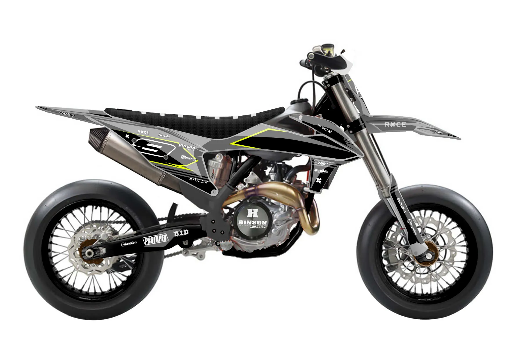 «Warp Neon» — готовый комплект графики серии Untucked для KTM Supermoto KTM SMR 450 2021. В комплекте: графика на бак и боковые облицовки, крылья (переднее и заднее), передний щиток, номерные таблички, защита вилки. Материал: ПВХ-винил 80 мкр с холодной ламинацией 300 мкр, общая толщина 380 мкр; покрытие глянцевое или матовое на выбор. Устойчив к UV-излучению, воде, бензину и мойке высокого давления. Клей акриловый на сольвентной основе — постоянный, для гибких пластиков. На простых поверхностях монтируется без нагрева; для сложных изгибов рекомендуем фен. Этот пресет можно заказать как есть или взять за основу в конструкторе: поменять цвета, добавить стартовый номер и свой бренд. Производство — 3–5 рабочих дней, доставка по России СДЭКом или Почтой, по СНГ — курьерскими службами.