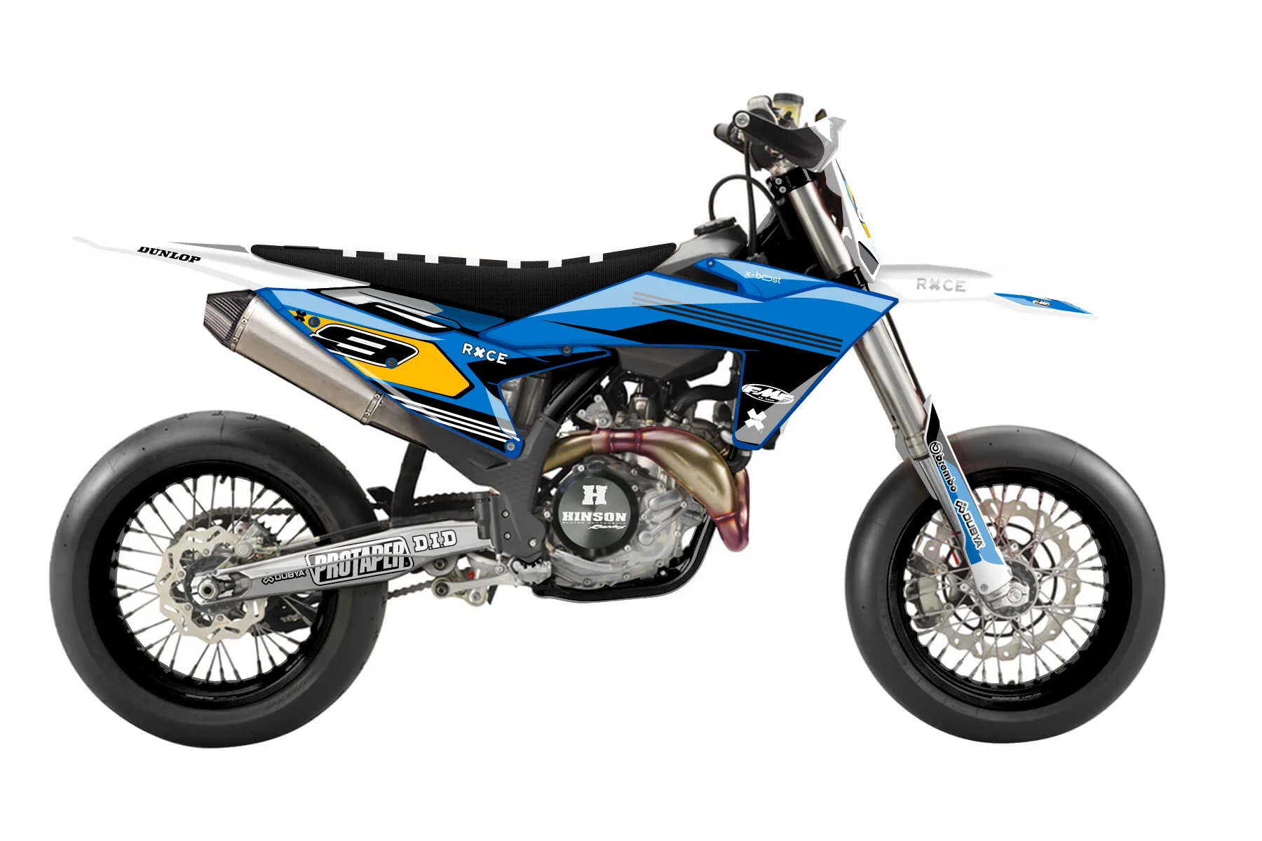 «All-Star» — готовый комплект графики серии Flow для KTM Supermoto KTM SMR 450 2023. В комплекте: графика на бак и боковые облицовки, крылья (переднее и заднее), передний щиток, номерные таблички, защита вилки. Материал: ПВХ-винил 80 мкр с холодной ламинацией 300 мкр, общая толщина 380 мкр; покрытие глянцевое или матовое на выбор. Устойчив к UV-излучению, воде, бензину и мойке высокого давления. Клей акриловый на сольвентной основе — постоянный, для гибких пластиков. На простых поверхностях монтируется без нагрева; для сложных изгибов рекомендуем фен. Этот пресет можно заказать как есть или взять за основу в конструкторе: поменять цвета, добавить стартовый номер и свой бренд. Производство — 3–5 рабочих дней, доставка по России СДЭКом или Почтой, по СНГ — курьерскими службами.