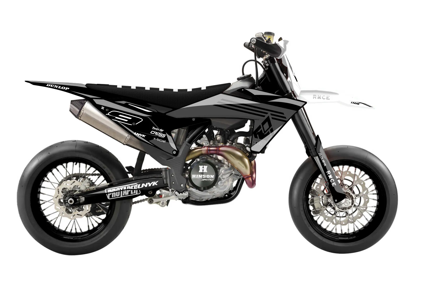 «Decal» — готовый комплект графики серии Flow для KTM Supermoto KTM SMR 450 2023. В комплекте: графика на бак и боковые облицовки, крылья (переднее и заднее), передний щиток, номерные таблички, защита вилки. Материал: ПВХ-винил 80 мкр с холодной ламинацией 300 мкр, общая толщина 380 мкр; покрытие глянцевое или матовое на выбор. Устойчив к UV-излучению, воде, бензину и мойке высокого давления. Клей акриловый на сольвентной основе — постоянный, для гибких пластиков. На простых поверхностях монтируется без нагрева; для сложных изгибов рекомендуем фен. Этот пресет можно заказать как есть или взять за основу в конструкторе: поменять цвета, добавить стартовый номер и свой бренд. Производство — 3–5 рабочих дней, доставка по России СДЭКом или Почтой, по СНГ — курьерскими службами.