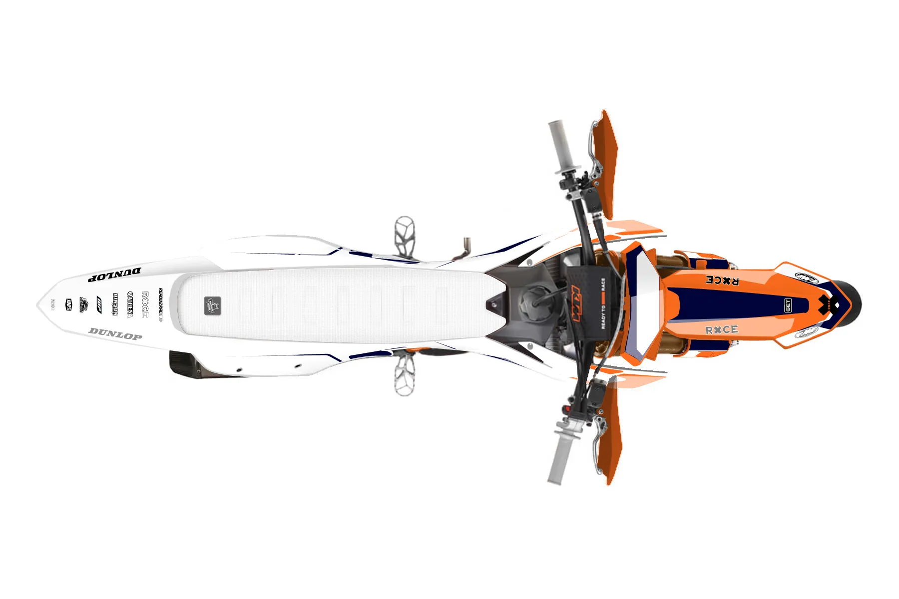 «Moto» — готовый комплект графики серии Flow для KTM Supermoto KTM SMR 450 2023. В комплекте: графика на бак и боковые облицовки, крылья (переднее и заднее), передний щиток, номерные таблички, защита вилки. Материал: ПВХ-винил 80 мкр с холодной ламинацией 300 мкр, общая толщина 380 мкр; покрытие глянцевое или матовое на выбор. Устойчив к UV-излучению, воде, бензину и мойке высокого давления. Клей акриловый на сольвентной основе — постоянный, для гибких пластиков. На простых поверхностях монтируется без нагрева; для сложных изгибов рекомендуем фен. Этот пресет можно заказать как есть или взять за основу в конструкторе: поменять цвета, добавить стартовый номер и свой бренд. Производство — 3–5 рабочих дней, доставка по России СДЭКом или Почтой, по СНГ — курьерскими службами.
