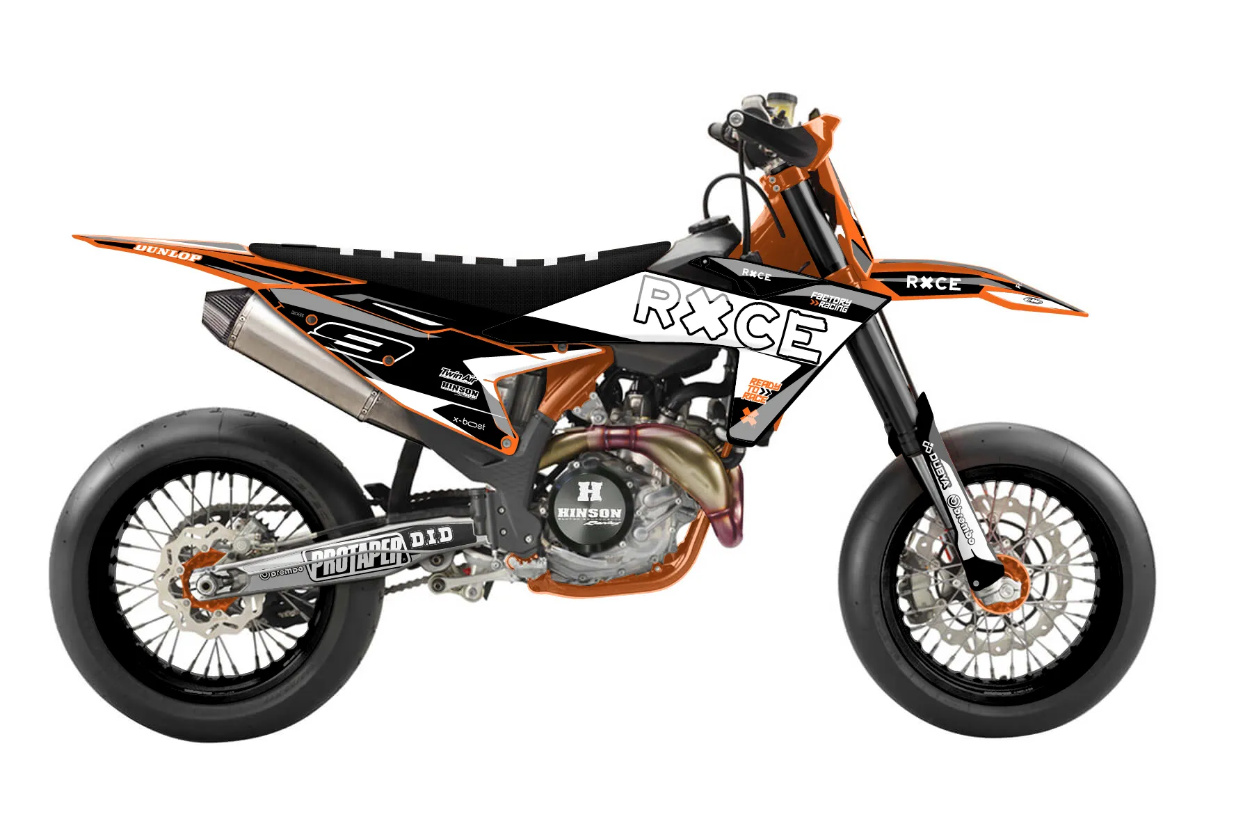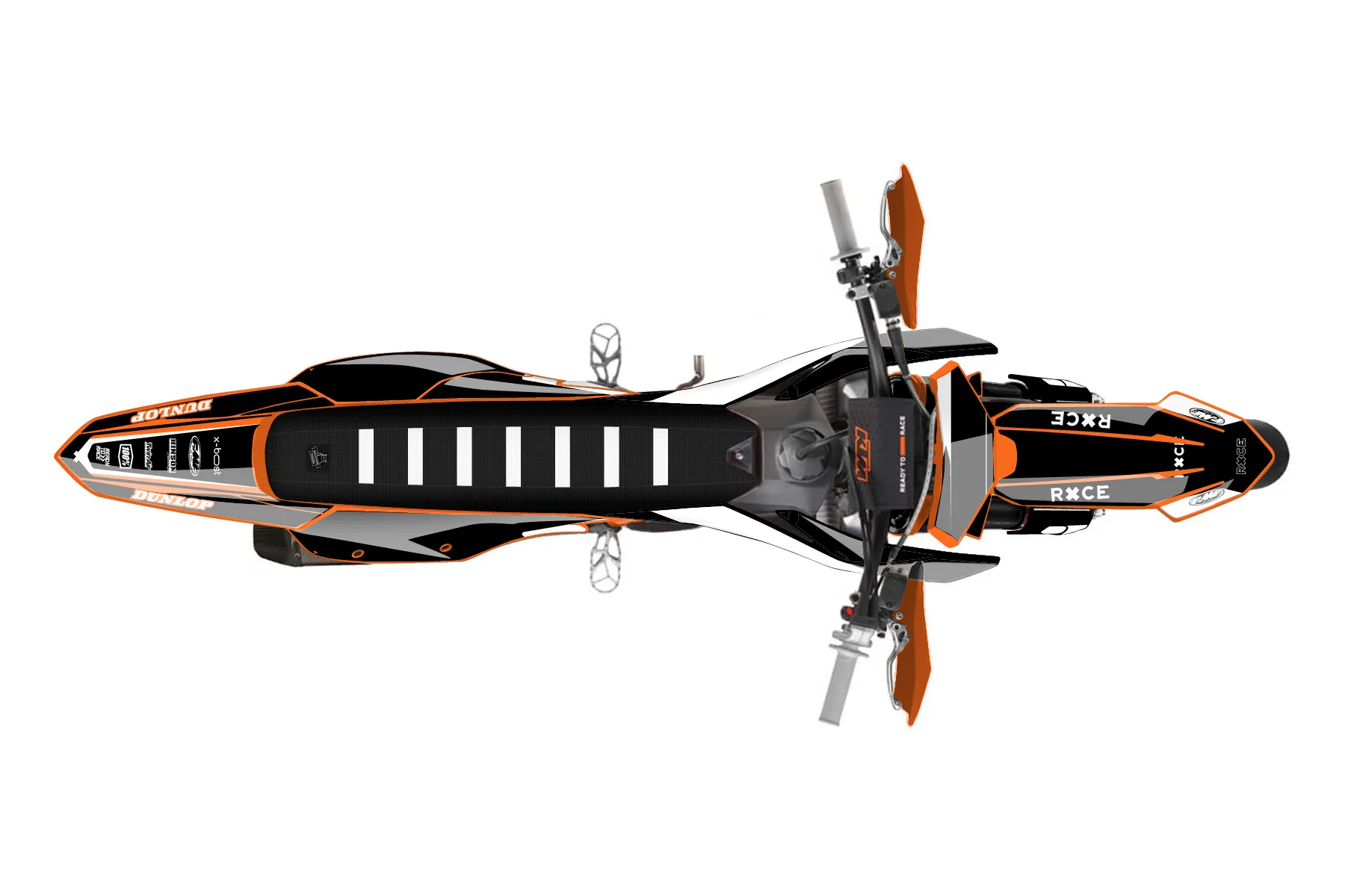 «Race» — готовый комплект графики серии Flow для KTM Supermoto KTM SMR 450 2023. В комплекте: графика на бак и боковые облицовки, крылья (переднее и заднее), передний щиток, номерные таблички, защита вилки. Материал: ПВХ-винил 80 мкр с холодной ламинацией 300 мкр, общая толщина 380 мкр; покрытие глянцевое или матовое на выбор. Устойчив к UV-излучению, воде, бензину и мойке высокого давления. Клей акриловый на сольвентной основе — постоянный, для гибких пластиков. На простых поверхностях монтируется без нагрева; для сложных изгибов рекомендуем фен. Этот пресет можно заказать как есть или взять за основу в конструкторе: поменять цвета, добавить стартовый номер и свой бренд. Производство — 3–5 рабочих дней, доставка по России СДЭКом или Почтой, по СНГ — курьерскими службами.