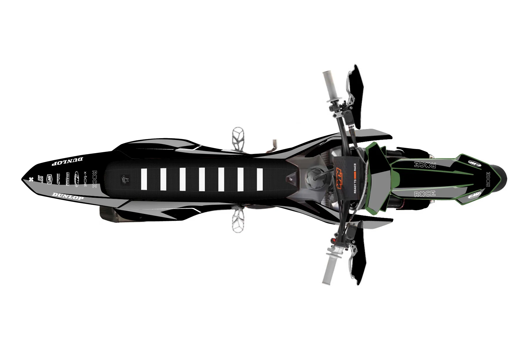 «Thrive» — готовый комплект графики серии Flow для KTM Supermoto KTM SMR 450 2023. В комплекте: графика на бак и боковые облицовки, крылья (переднее и заднее), передний щиток, номерные таблички, защита вилки. Материал: ПВХ-винил 80 мкр с холодной ламинацией 300 мкр, общая толщина 380 мкр; покрытие глянцевое или матовое на выбор. Устойчив к UV-излучению, воде, бензину и мойке высокого давления. Клей акриловый на сольвентной основе — постоянный, для гибких пластиков. На простых поверхностях монтируется без нагрева; для сложных изгибов рекомендуем фен. Этот пресет можно заказать как есть или взять за основу в конструкторе: поменять цвета, добавить стартовый номер и свой бренд. Производство — 3–5 рабочих дней, доставка по России СДЭКом или Почтой, по СНГ — курьерскими службами.