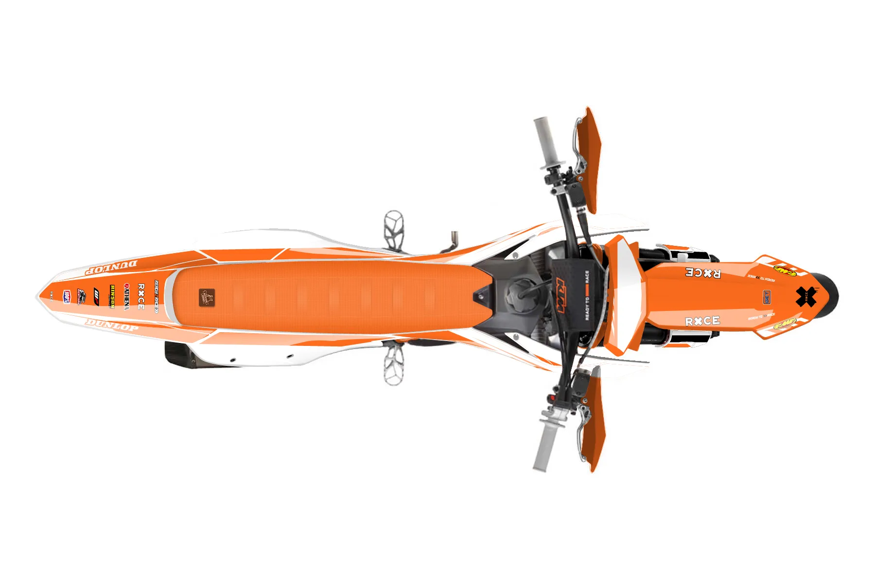 «Swapp» — готовый комплект графики серии Maverick для KTM Supermoto KTM SMR 450 2023. В комплекте: графика на бак и боковые облицовки, крылья (переднее и заднее), передний щиток, номерные таблички, защита вилки. Материал: ПВХ-винил 80 мкр с холодной ламинацией 300 мкр, общая толщина 380 мкр; покрытие глянцевое или матовое на выбор. Устойчив к UV-излучению, воде, бензину и мойке высокого давления. Клей акриловый на сольвентной основе — постоянный, для гибких пластиков. На простых поверхностях монтируется без нагрева; для сложных изгибов рекомендуем фен. Этот пресет можно заказать как есть или взять за основу в конструкторе: поменять цвета, добавить стартовый номер и свой бренд. Производство — 3–5 рабочих дней, доставка по России СДЭКом или Почтой, по СНГ — курьерскими службами.