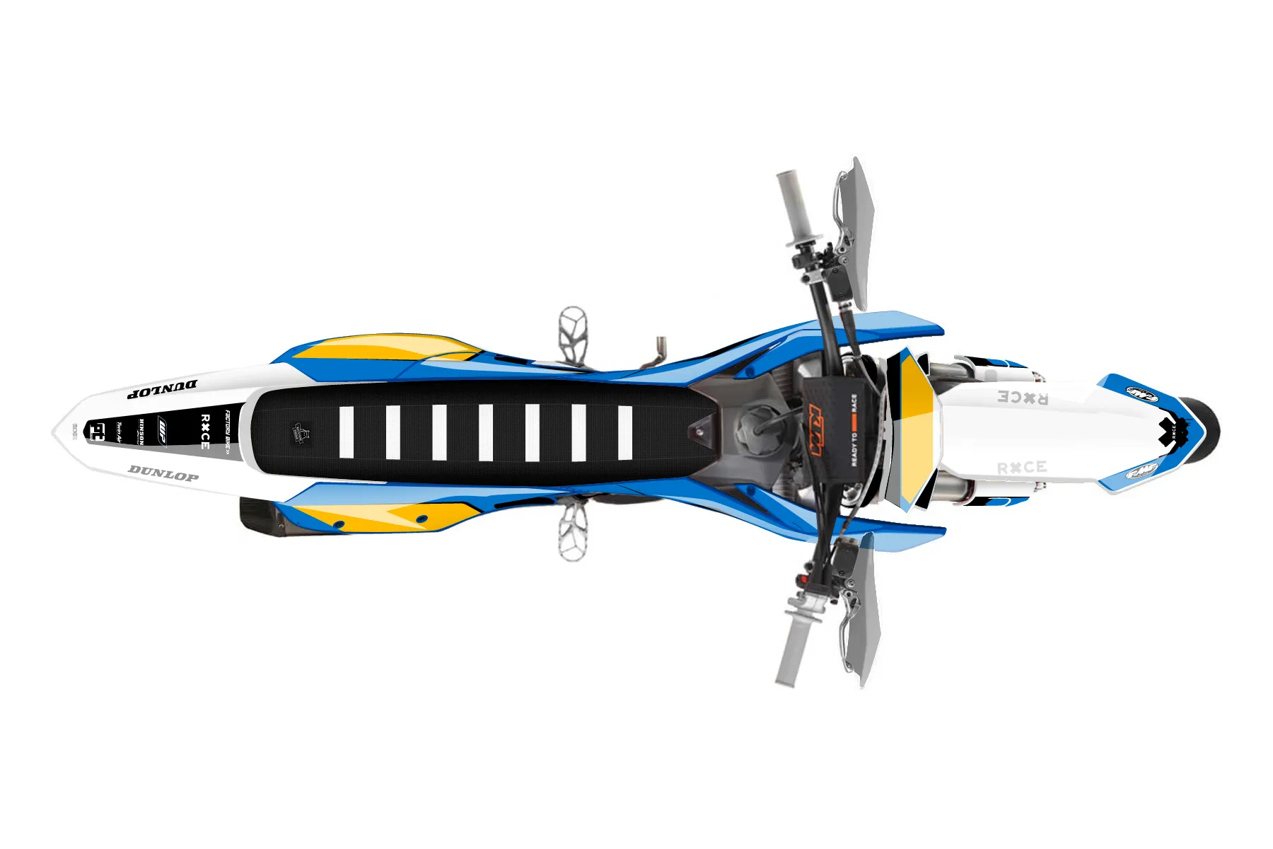 «All-Star» — готовый комплект графики серии Flow для KTM Supermoto KTM SMR 450 2025. В комплекте: графика на бак и боковые облицовки, крылья (переднее и заднее), передний щиток, номерные таблички, защита вилки. Материал: ПВХ-винил 80 мкр с холодной ламинацией 300 мкр, общая толщина 380 мкр; покрытие глянцевое или матовое на выбор. Устойчив к UV-излучению, воде, бензину и мойке высокого давления. Клей акриловый на сольвентной основе — постоянный, для гибких пластиков. На простых поверхностях монтируется без нагрева; для сложных изгибов рекомендуем фен. Этот пресет можно заказать как есть или взять за основу в конструкторе: поменять цвета, добавить стартовый номер и свой бренд. Производство — 3–5 рабочих дней, доставка по России СДЭКом или Почтой, по СНГ — курьерскими службами.