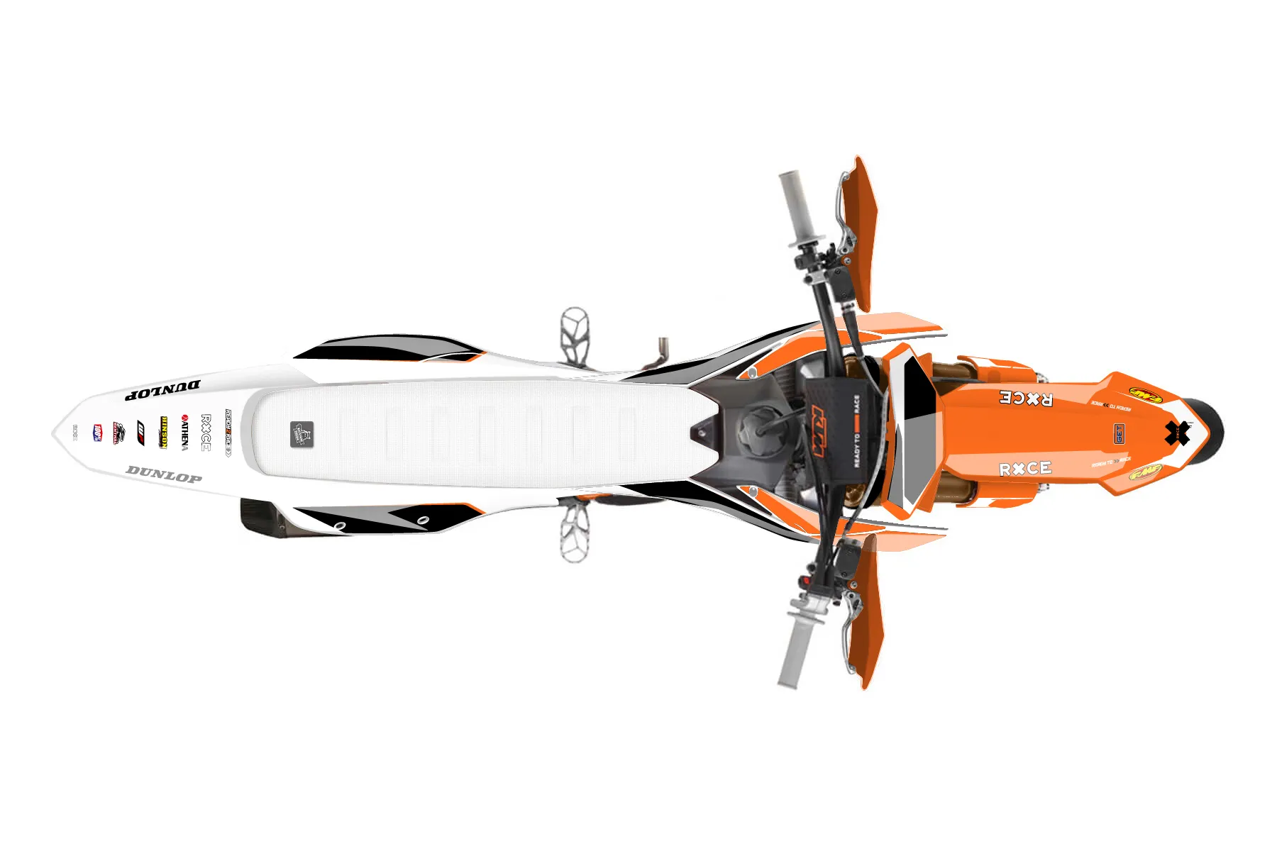 «Alpha» — готовый комплект графики серии Flow для KTM Supermoto KTM SMR 450 2025. В комплекте: графика на бак и боковые облицовки, крылья (переднее и заднее), передний щиток, номерные таблички, защита вилки. Материал: ПВХ-винил 80 мкр с холодной ламинацией 300 мкр, общая толщина 380 мкр; покрытие глянцевое или матовое на выбор. Устойчив к UV-излучению, воде, бензину и мойке высокого давления. Клей акриловый на сольвентной основе — постоянный, для гибких пластиков. На простых поверхностях монтируется без нагрева; для сложных изгибов рекомендуем фен. Этот пресет можно заказать как есть или взять за основу в конструкторе: поменять цвета, добавить стартовый номер и свой бренд. Производство — 3–5 рабочих дней, доставка по России СДЭКом или Почтой, по СНГ — курьерскими службами.