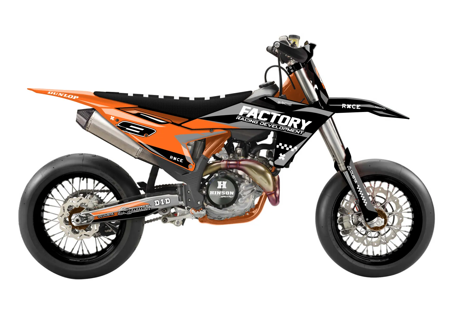 «Beyond» — готовый комплект графики серии Flow для KTM Supermoto KTM SMR 450 2025. В комплекте: графика на бак и боковые облицовки, крылья (переднее и заднее), передний щиток, номерные таблички, защита вилки. Материал: ПВХ-винил 80 мкр с холодной ламинацией 300 мкр, общая толщина 380 мкр; покрытие глянцевое или матовое на выбор. Устойчив к UV-излучению, воде, бензину и мойке высокого давления. Клей акриловый на сольвентной основе — постоянный, для гибких пластиков. На простых поверхностях монтируется без нагрева; для сложных изгибов рекомендуем фен. Этот пресет можно заказать как есть или взять за основу в конструкторе: поменять цвета, добавить стартовый номер и свой бренд. Производство — 3–5 рабочих дней, доставка по России СДЭКом или Почтой, по СНГ — курьерскими службами.