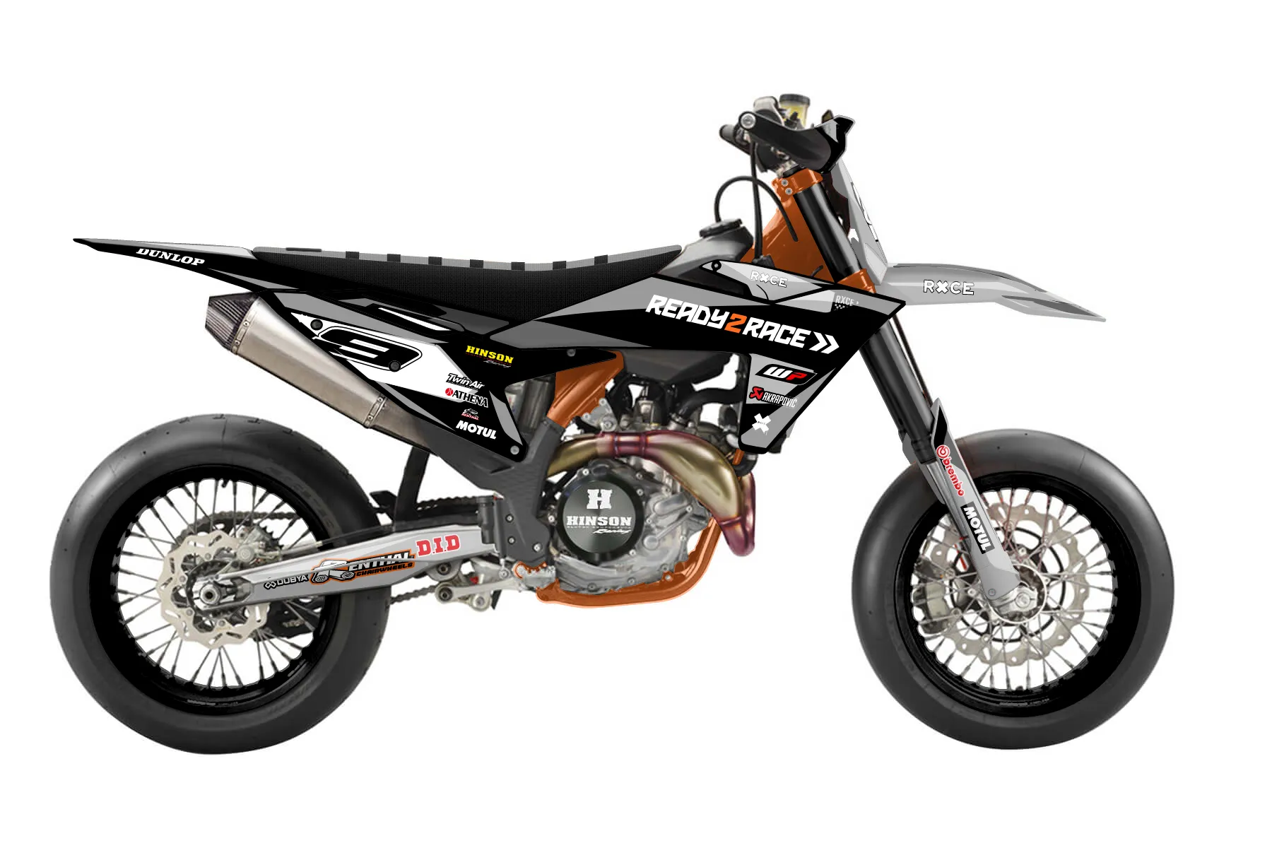 «Concepts» — готовый комплект графики серии Flow для KTM Supermoto KTM SMR 450 2025. В комплекте: графика на бак и боковые облицовки, крылья (переднее и заднее), передний щиток, номерные таблички, защита вилки. Материал: ПВХ-винил 80 мкр с холодной ламинацией 300 мкр, общая толщина 380 мкр; покрытие глянцевое или матовое на выбор. Устойчив к UV-излучению, воде, бензину и мойке высокого давления. Клей акриловый на сольвентной основе — постоянный, для гибких пластиков. На простых поверхностях монтируется без нагрева; для сложных изгибов рекомендуем фен. Этот пресет можно заказать как есть или взять за основу в конструкторе: поменять цвета, добавить стартовый номер и свой бренд. Производство — 3–5 рабочих дней, доставка по России СДЭКом или Почтой, по СНГ — курьерскими службами.
