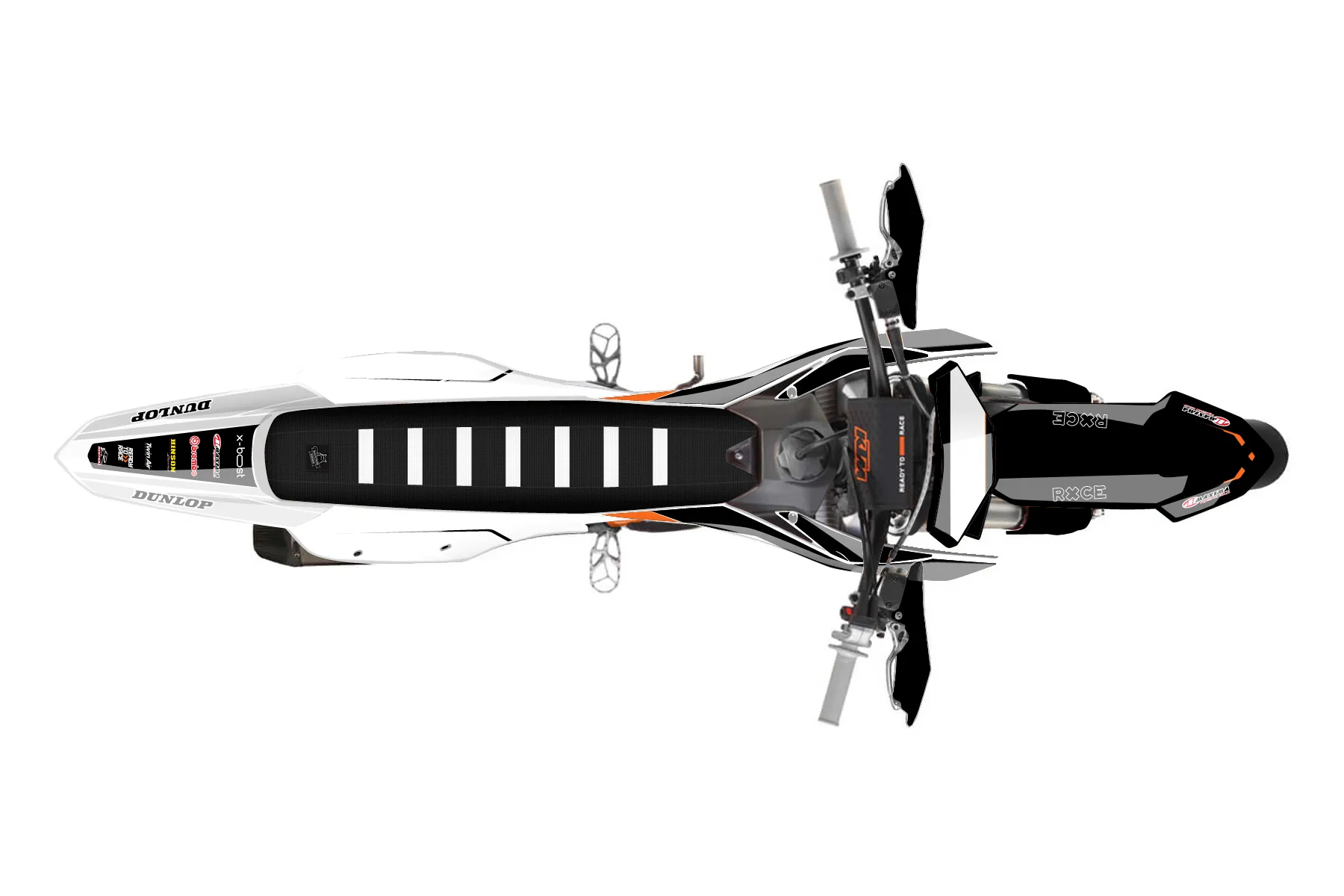 «Dew» — готовый комплект графики серии Flow для KTM Supermoto KTM SMR 450 2025. В комплекте: графика на бак и боковые облицовки, крылья (переднее и заднее), передний щиток, номерные таблички, защита вилки. Материал: ПВХ-винил 80 мкр с холодной ламинацией 300 мкр, общая толщина 380 мкр; покрытие глянцевое или матовое на выбор. Устойчив к UV-излучению, воде, бензину и мойке высокого давления. Клей акриловый на сольвентной основе — постоянный, для гибких пластиков. На простых поверхностях монтируется без нагрева; для сложных изгибов рекомендуем фен. Этот пресет можно заказать как есть или взять за основу в конструкторе: поменять цвета, добавить стартовый номер и свой бренд. Производство — 3–5 рабочих дней, доставка по России СДЭКом или Почтой, по СНГ — курьерскими службами.