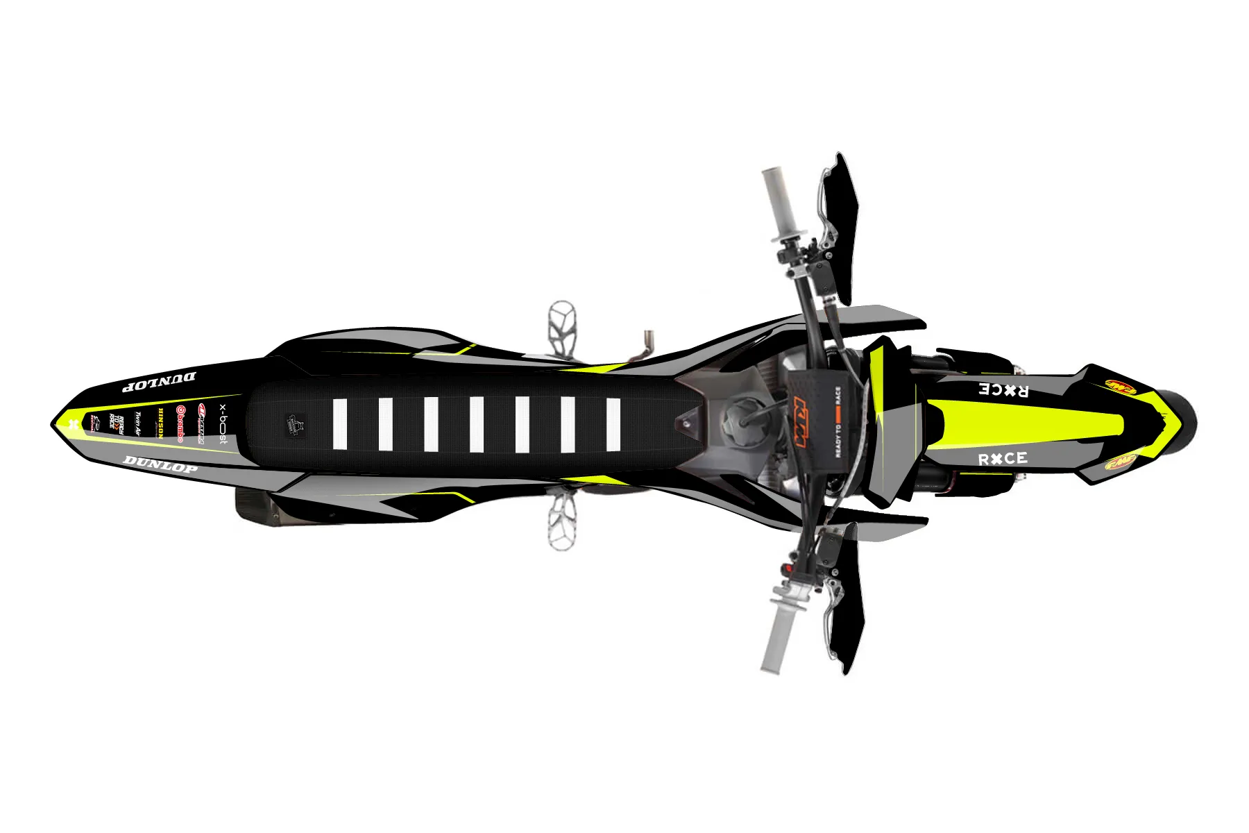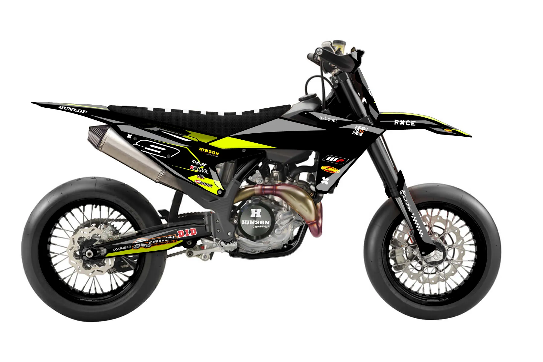 «Form» — готовый комплект графики серии Flow для KTM Supermoto KTM SMR 450 2025. В комплекте: графика на бак и боковые облицовки, крылья (переднее и заднее), передний щиток, номерные таблички, защита вилки. Материал: ПВХ-винил 80 мкр с холодной ламинацией 300 мкр, общая толщина 380 мкр; покрытие глянцевое или матовое на выбор. Устойчив к UV-излучению, воде, бензину и мойке высокого давления. Клей акриловый на сольвентной основе — постоянный, для гибких пластиков. На простых поверхностях монтируется без нагрева; для сложных изгибов рекомендуем фен. Этот пресет можно заказать как есть или взять за основу в конструкторе: поменять цвета, добавить стартовый номер и свой бренд. Производство — 3–5 рабочих дней, доставка по России СДЭКом или Почтой, по СНГ — курьерскими службами.