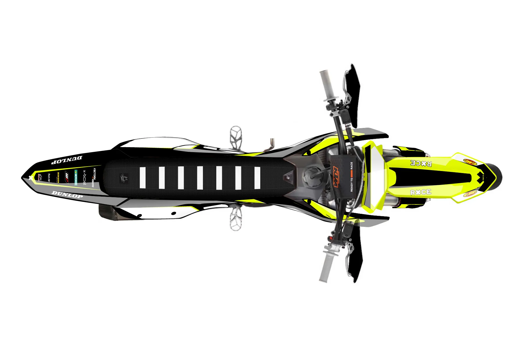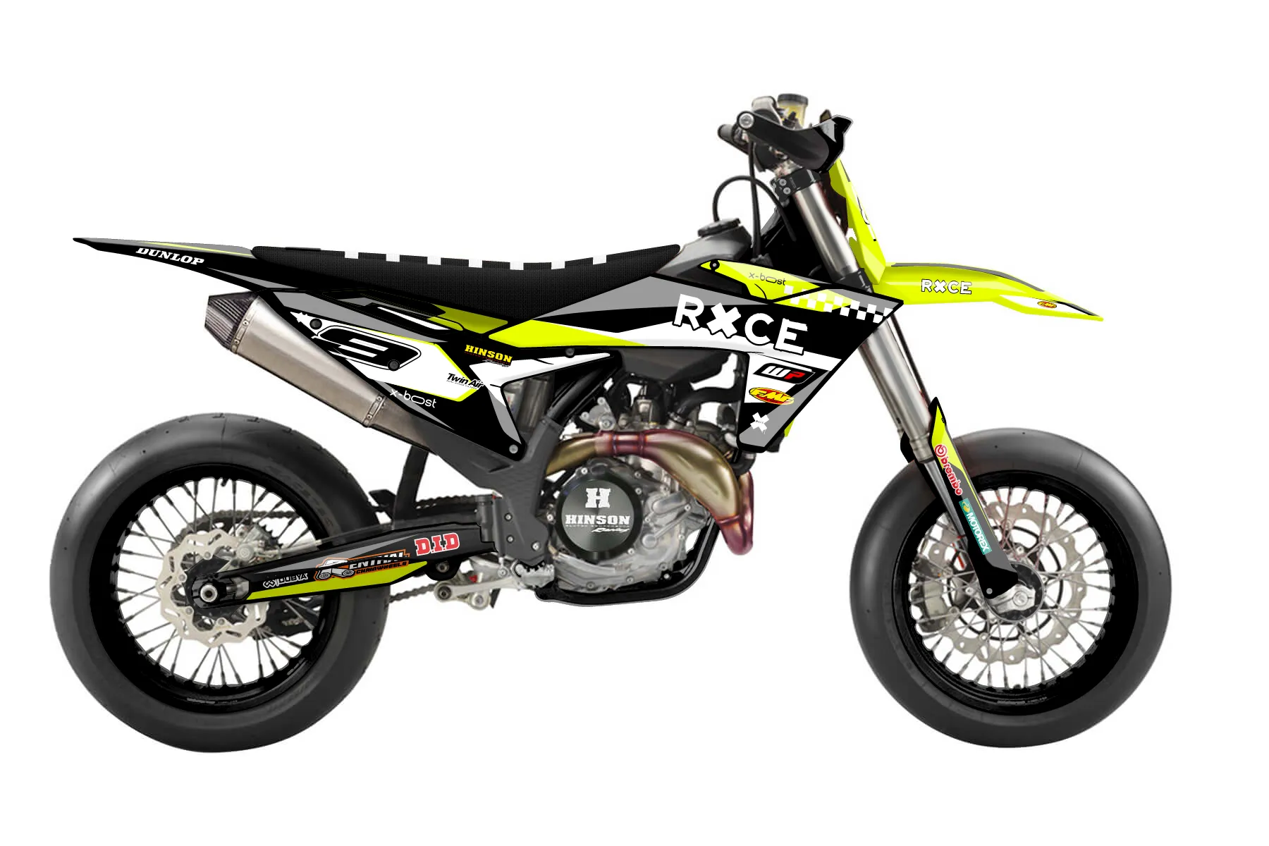 «Lucent Neon» — готовый комплект графики серии Flow для KTM Supermoto KTM SMR 450 2025. В комплекте: графика на бак и боковые облицовки, крылья (переднее и заднее), передний щиток, номерные таблички, защита вилки. Материал: ПВХ-винил 80 мкр с холодной ламинацией 300 мкр, общая толщина 380 мкр; покрытие глянцевое или матовое на выбор. Устойчив к UV-излучению, воде, бензину и мойке высокого давления. Клей акриловый на сольвентной основе — постоянный, для гибких пластиков. На простых поверхностях монтируется без нагрева; для сложных изгибов рекомендуем фен. Этот пресет можно заказать как есть или взять за основу в конструкторе: поменять цвета, добавить стартовый номер и свой бренд. Производство — 3–5 рабочих дней, доставка по России СДЭКом или Почтой, по СНГ — курьерскими службами.