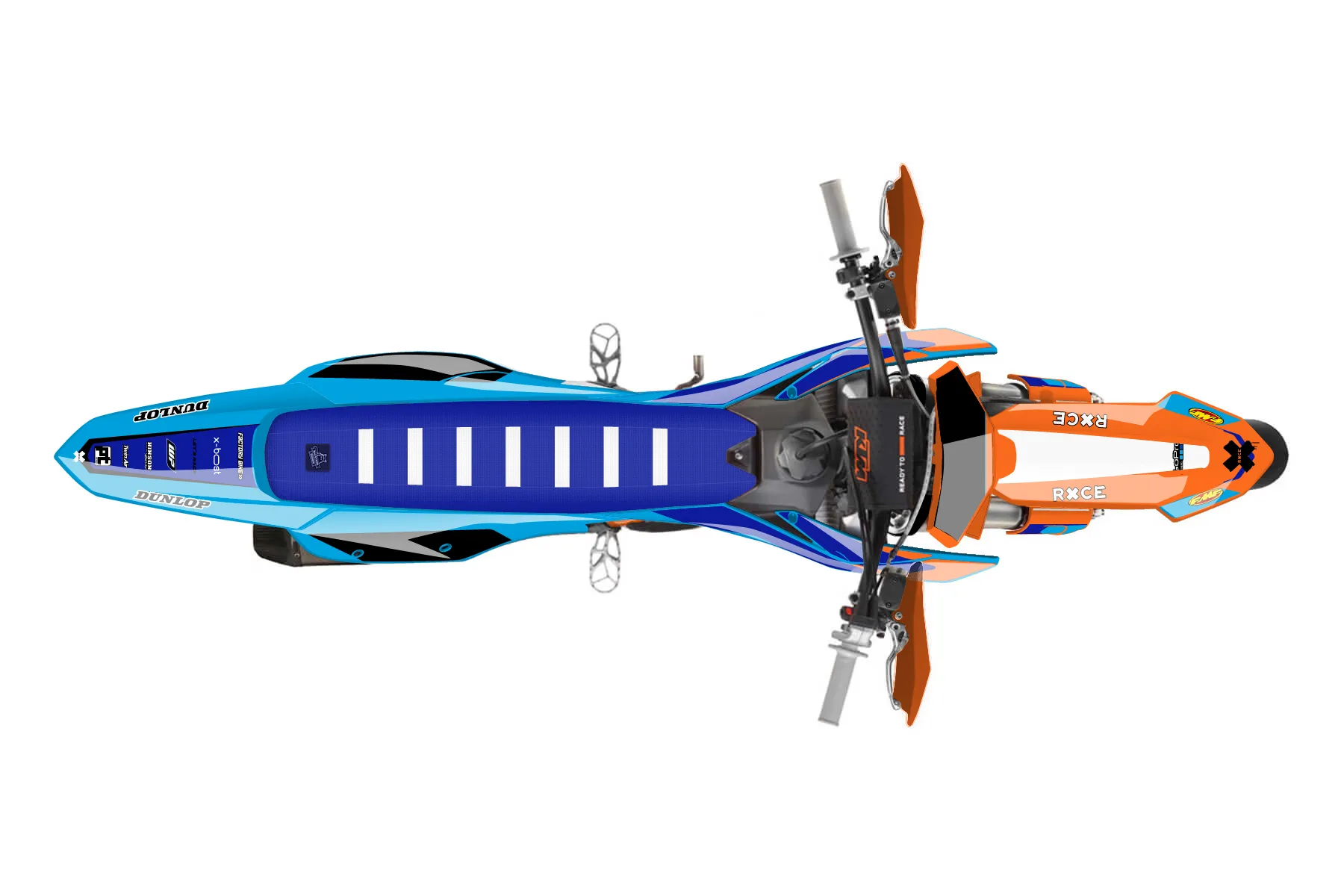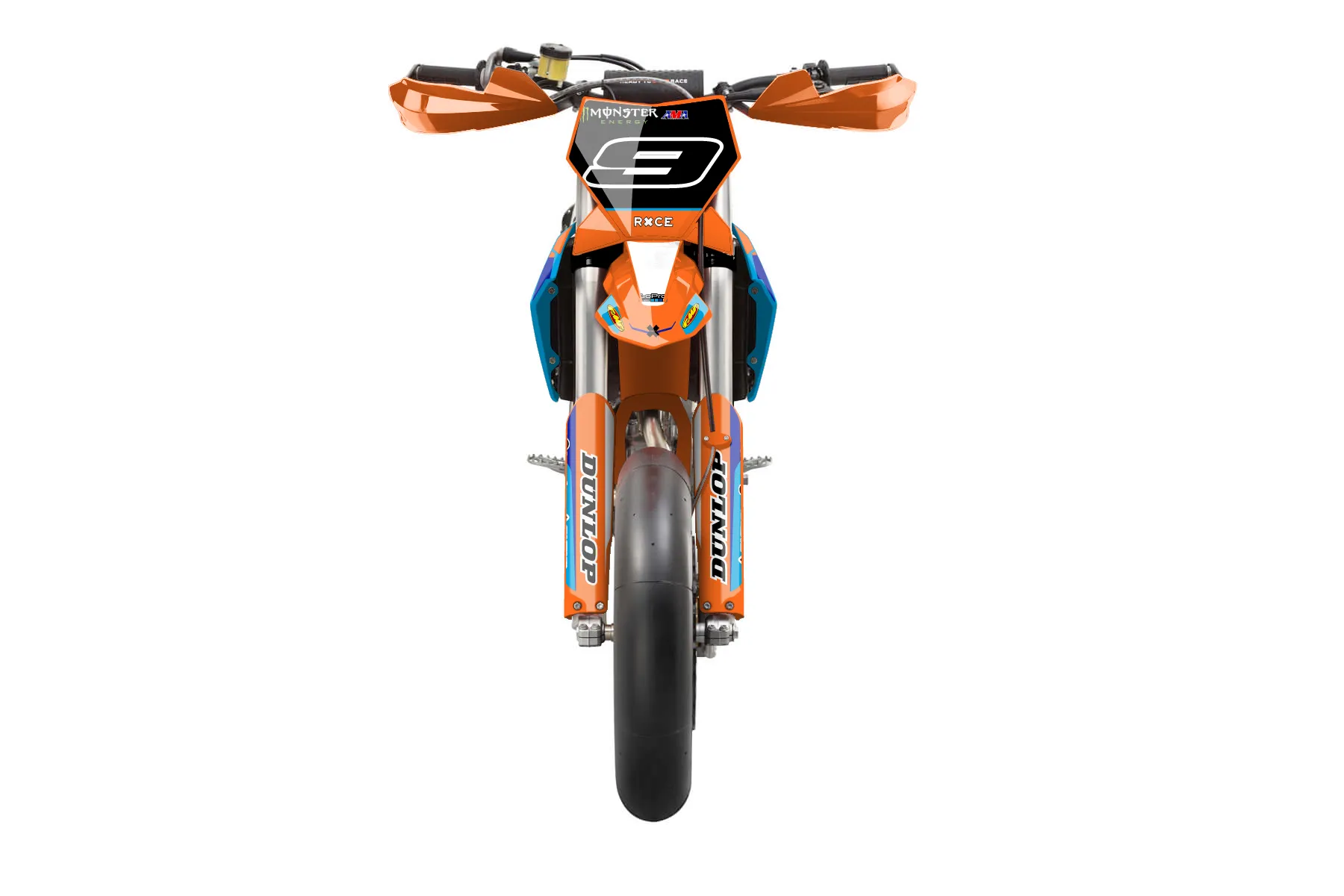 «Signature» — готовый комплект графики серии Flow для KTM Supermoto KTM SMR 450 2025. В комплекте: графика на бак и боковые облицовки, крылья (переднее и заднее), передний щиток, номерные таблички, защита вилки. Материал: ПВХ-винил 80 мкр с холодной ламинацией 300 мкр, общая толщина 380 мкр; покрытие глянцевое или матовое на выбор. Устойчив к UV-излучению, воде, бензину и мойке высокого давления. Клей акриловый на сольвентной основе — постоянный, для гибких пластиков. На простых поверхностях монтируется без нагрева; для сложных изгибов рекомендуем фен. Этот пресет можно заказать как есть или взять за основу в конструкторе: поменять цвета, добавить стартовый номер и свой бренд. Производство — 3–5 рабочих дней, доставка по России СДЭКом или Почтой, по СНГ — курьерскими службами.