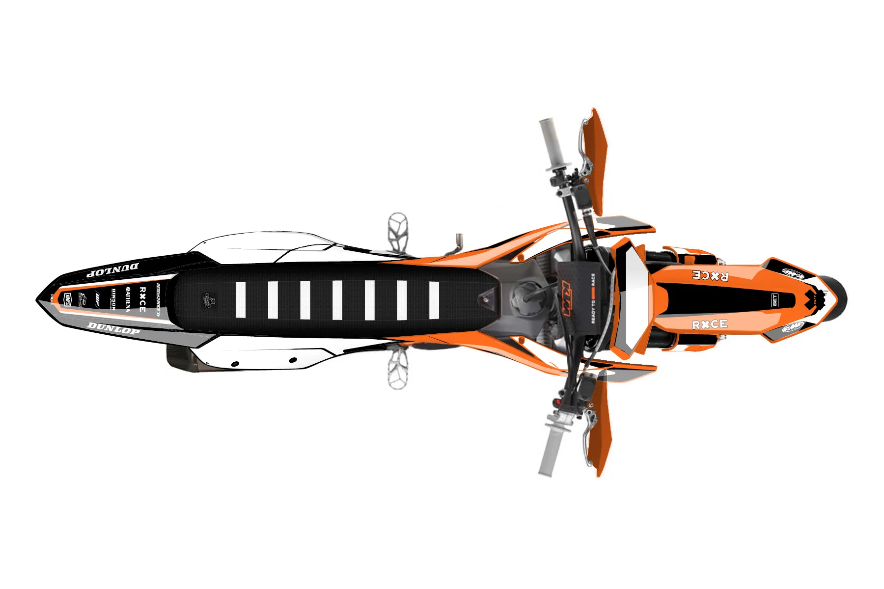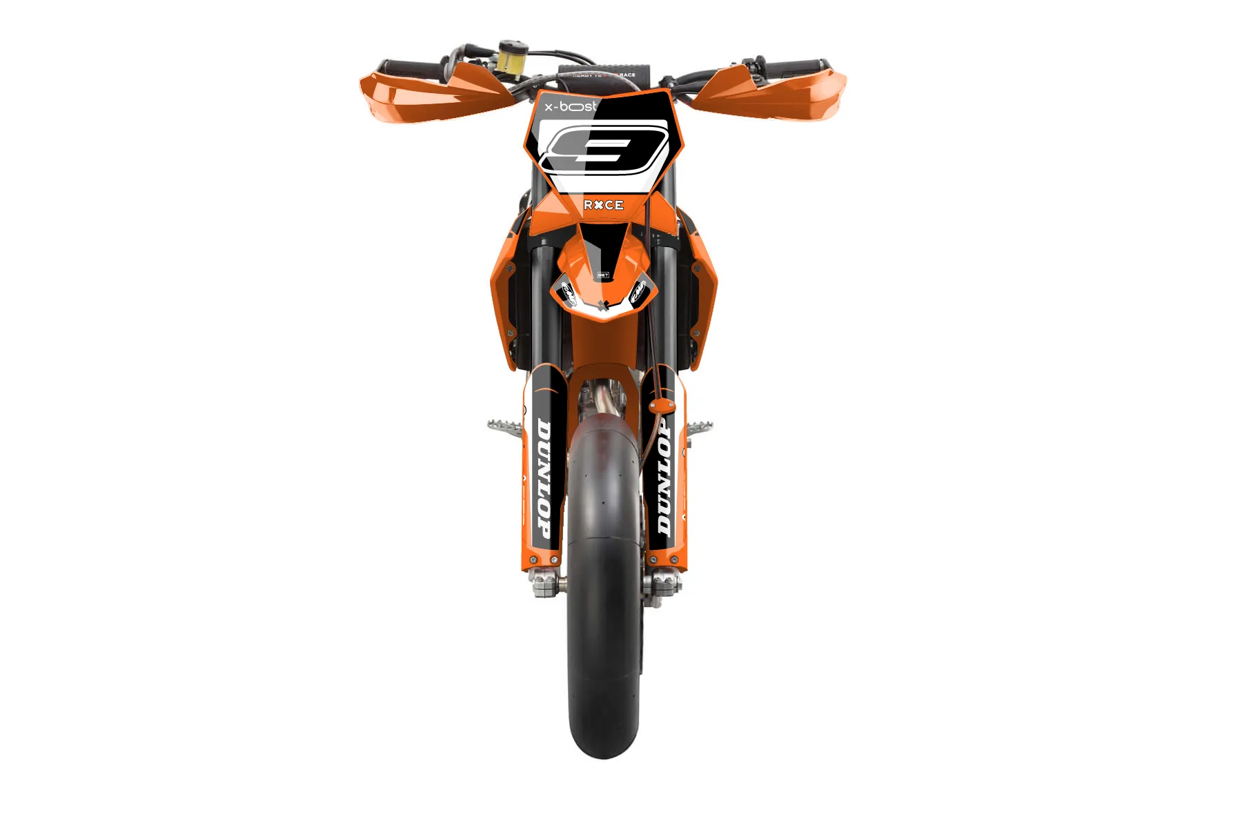 «Spotlight» — готовый комплект графики серии Flow для KTM Supermoto KTM SMR 450 2025. В комплекте: графика на бак и боковые облицовки, крылья (переднее и заднее), передний щиток, номерные таблички, защита вилки. Материал: ПВХ-винил 80 мкр с холодной ламинацией 300 мкр, общая толщина 380 мкр; покрытие глянцевое или матовое на выбор. Устойчив к UV-излучению, воде, бензину и мойке высокого давления. Клей акриловый на сольвентной основе — постоянный, для гибких пластиков. На простых поверхностях монтируется без нагрева; для сложных изгибов рекомендуем фен. Этот пресет можно заказать как есть или взять за основу в конструкторе: поменять цвета, добавить стартовый номер и свой бренд. Производство — 3–5 рабочих дней, доставка по России СДЭКом или Почтой, по СНГ — курьерскими службами.