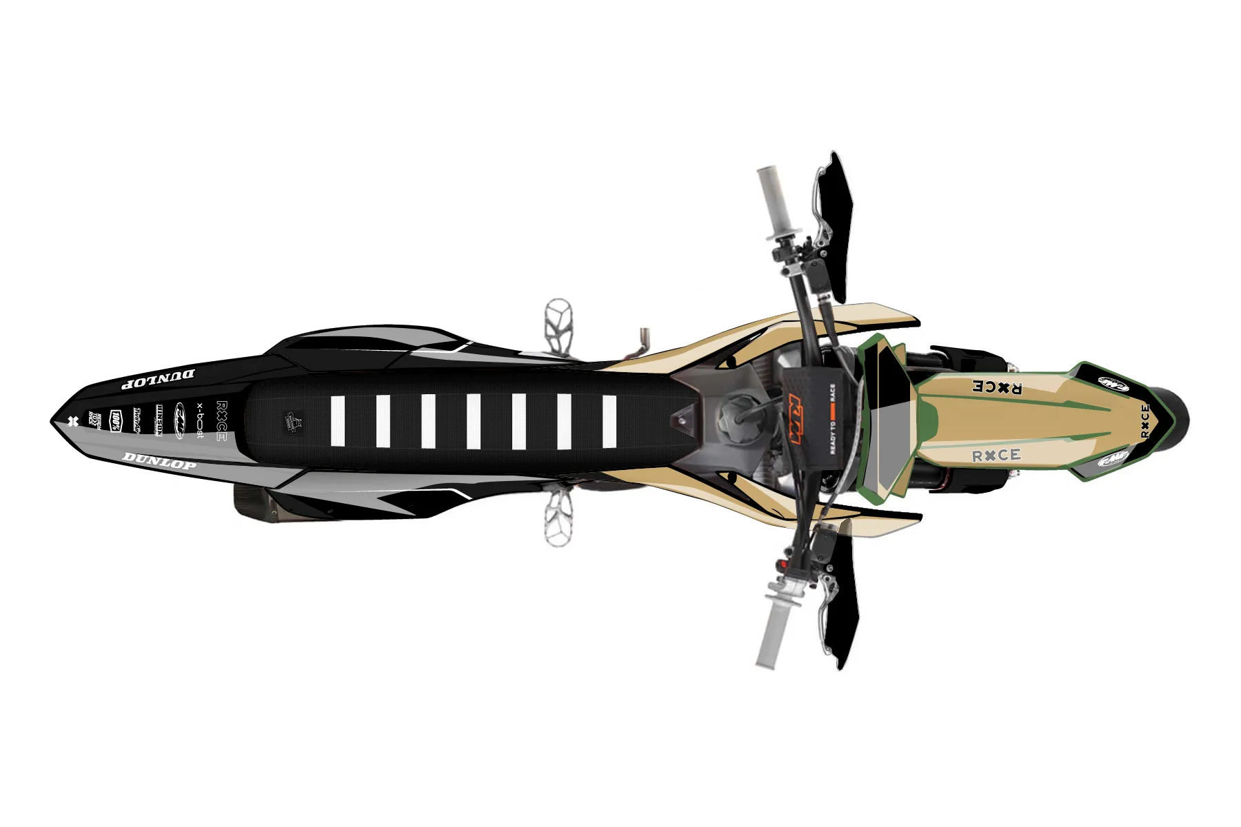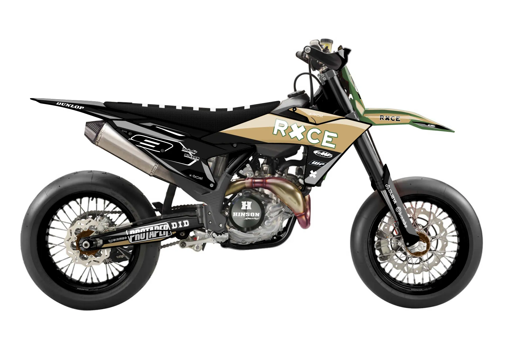 «Thrive» — готовый комплект графики серии Flow для KTM Supermoto KTM SMR 450 2025. В комплекте: графика на бак и боковые облицовки, крылья (переднее и заднее), передний щиток, номерные таблички, защита вилки. Материал: ПВХ-винил 80 мкр с холодной ламинацией 300 мкр, общая толщина 380 мкр; покрытие глянцевое или матовое на выбор. Устойчив к UV-излучению, воде, бензину и мойке высокого давления. Клей акриловый на сольвентной основе — постоянный, для гибких пластиков. На простых поверхностях монтируется без нагрева; для сложных изгибов рекомендуем фен. Этот пресет можно заказать как есть или взять за основу в конструкторе: поменять цвета, добавить стартовый номер и свой бренд. Производство — 3–5 рабочих дней, доставка по России СДЭКом или Почтой, по СНГ — курьерскими службами.