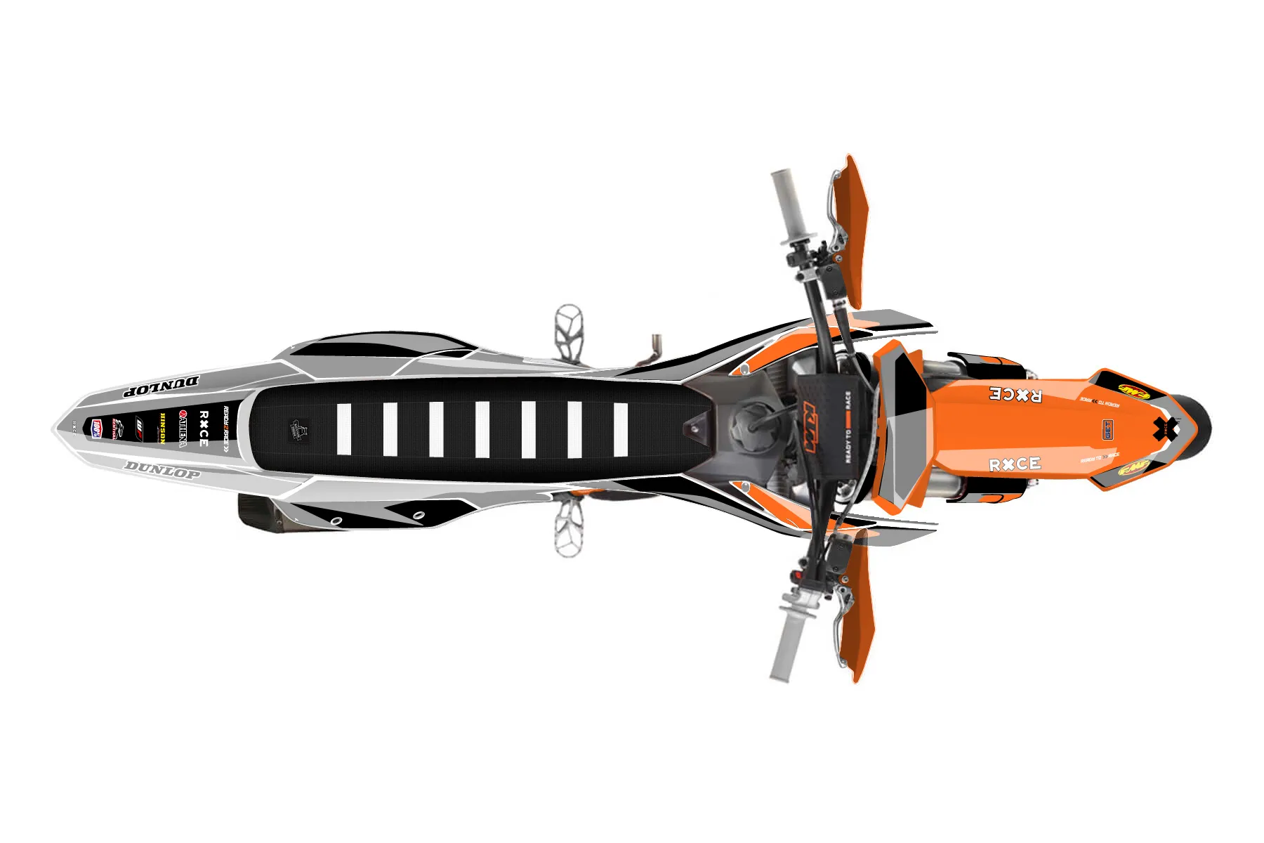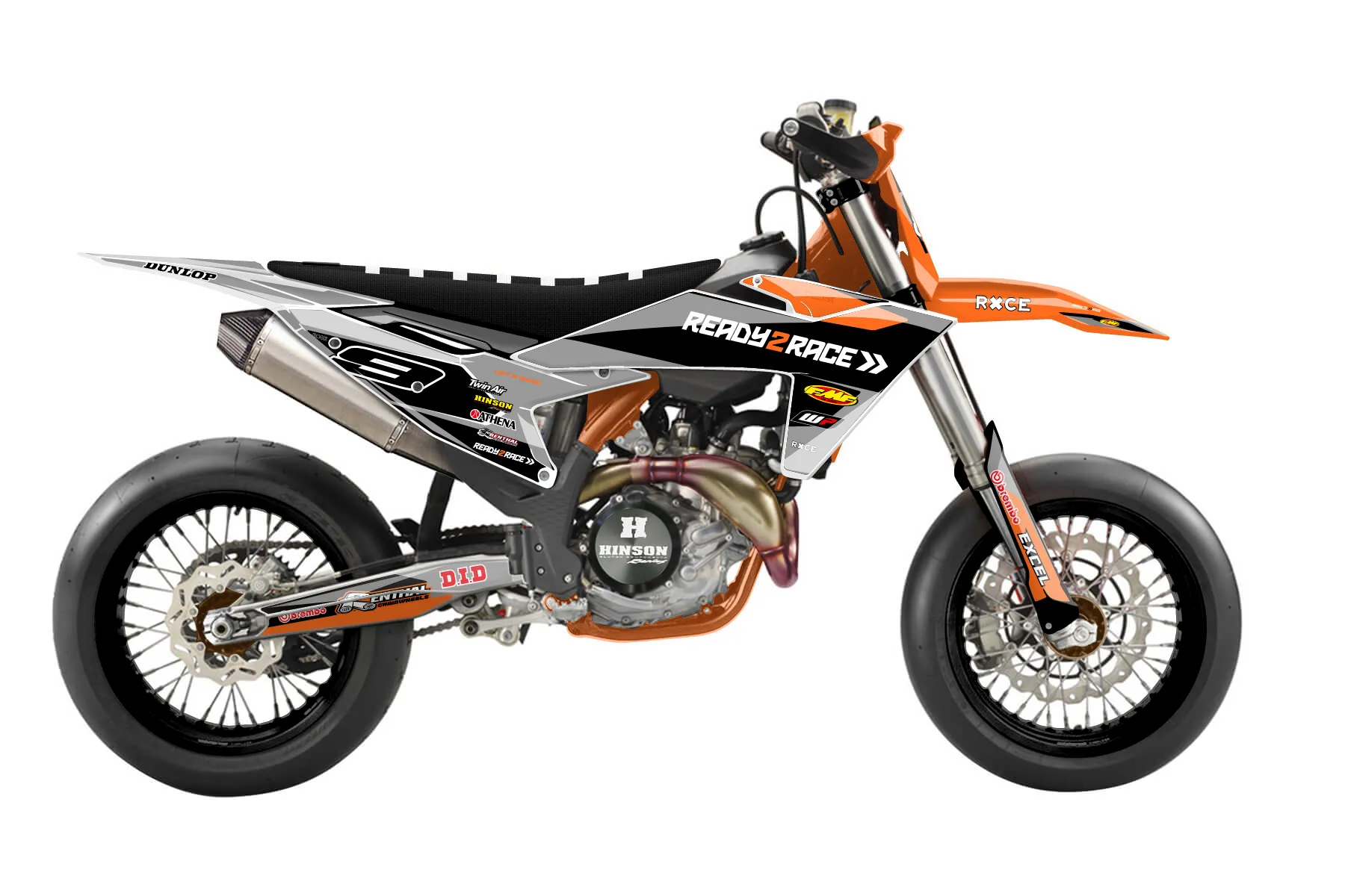 «Throwback» — готовый комплект графики серии Flow для KTM Supermoto KTM SMR 450 2025. В комплекте: графика на бак и боковые облицовки, крылья (переднее и заднее), передний щиток, номерные таблички, защита вилки. Материал: ПВХ-винил 80 мкр с холодной ламинацией 300 мкр, общая толщина 380 мкр; покрытие глянцевое или матовое на выбор. Устойчив к UV-излучению, воде, бензину и мойке высокого давления. Клей акриловый на сольвентной основе — постоянный, для гибких пластиков. На простых поверхностях монтируется без нагрева; для сложных изгибов рекомендуем фен. Этот пресет можно заказать как есть или взять за основу в конструкторе: поменять цвета, добавить стартовый номер и свой бренд. Производство — 3–5 рабочих дней, доставка по России СДЭКом или Почтой, по СНГ — курьерскими службами.