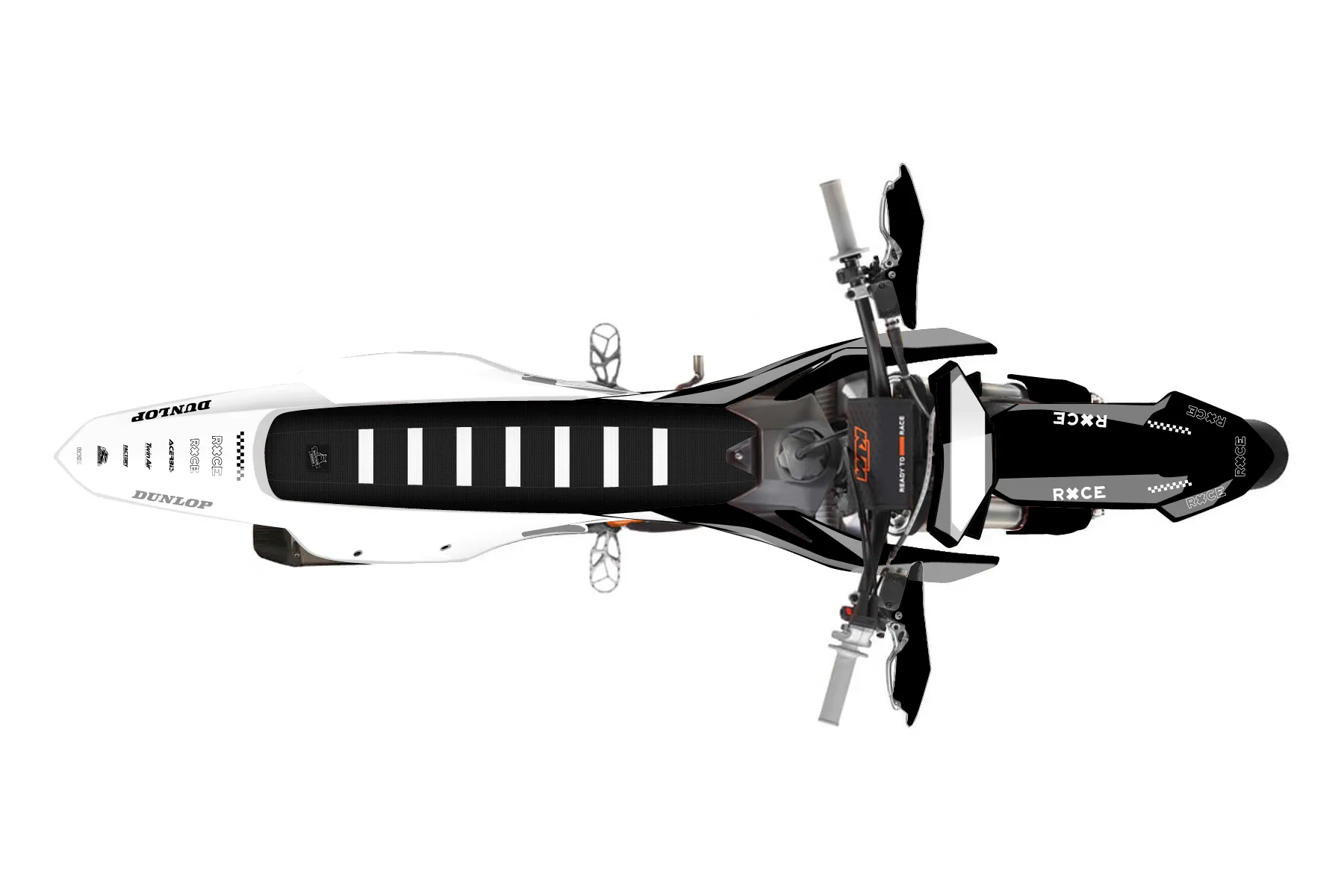 «Vector» — готовый комплект графики серии Flow для KTM Supermoto KTM SMR 450 2025. В комплекте: графика на бак и боковые облицовки, крылья (переднее и заднее), передний щиток, номерные таблички, защита вилки. Материал: ПВХ-винил 80 мкр с холодной ламинацией 300 мкр, общая толщина 380 мкр; покрытие глянцевое или матовое на выбор. Устойчив к UV-излучению, воде, бензину и мойке высокого давления. Клей акриловый на сольвентной основе — постоянный, для гибких пластиков. На простых поверхностях монтируется без нагрева; для сложных изгибов рекомендуем фен. Этот пресет можно заказать как есть или взять за основу в конструкторе: поменять цвета, добавить стартовый номер и свой бренд. Производство — 3–5 рабочих дней, доставка по России СДЭКом или Почтой, по СНГ — курьерскими службами.