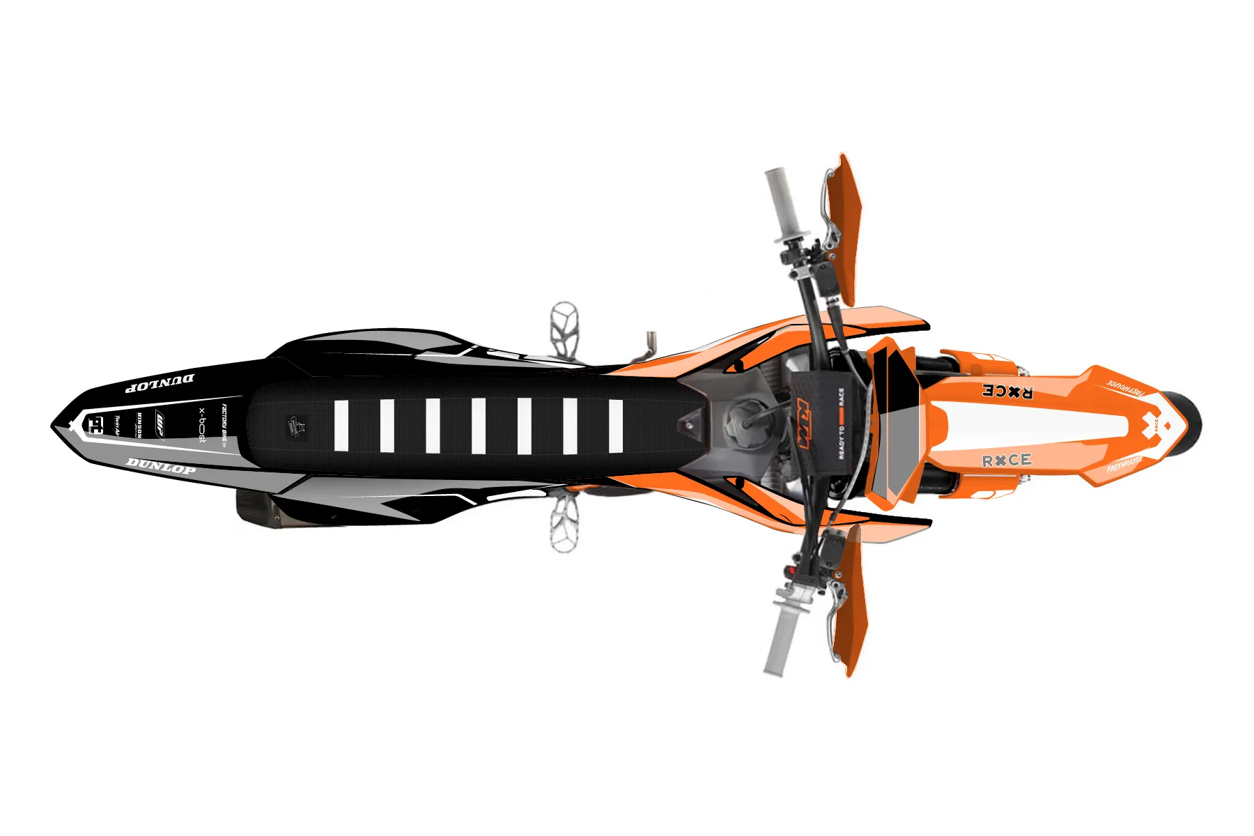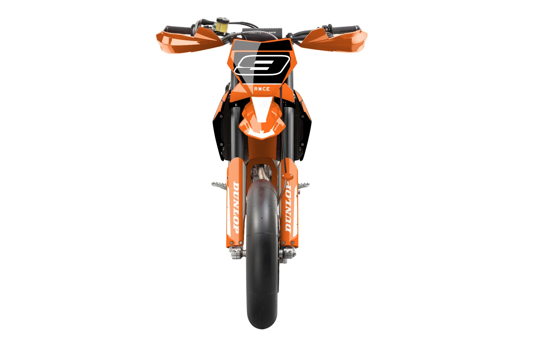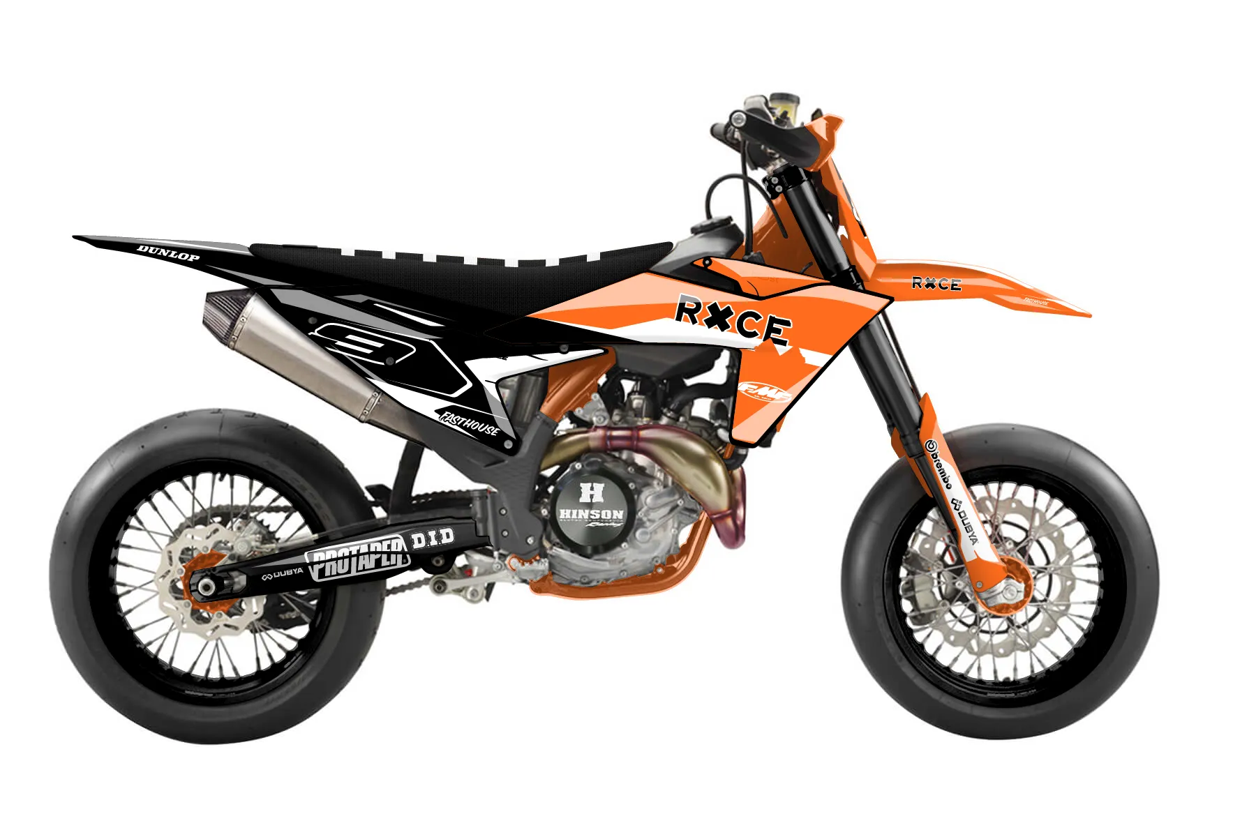 «Visonary» — готовый комплект графики серии Flow для KTM Supermoto KTM SMR 450 2025. В комплекте: графика на бак и боковые облицовки, крылья (переднее и заднее), передний щиток, номерные таблички, защита вилки. Материал: ПВХ-винил 80 мкр с холодной ламинацией 300 мкр, общая толщина 380 мкр; покрытие глянцевое или матовое на выбор. Устойчив к UV-излучению, воде, бензину и мойке высокого давления. Клей акриловый на сольвентной основе — постоянный, для гибких пластиков. На простых поверхностях монтируется без нагрева; для сложных изгибов рекомендуем фен. Этот пресет можно заказать как есть или взять за основу в конструкторе: поменять цвета, добавить стартовый номер и свой бренд. Производство — 3–5 рабочих дней, доставка по России СДЭКом или Почтой, по СНГ — курьерскими службами.