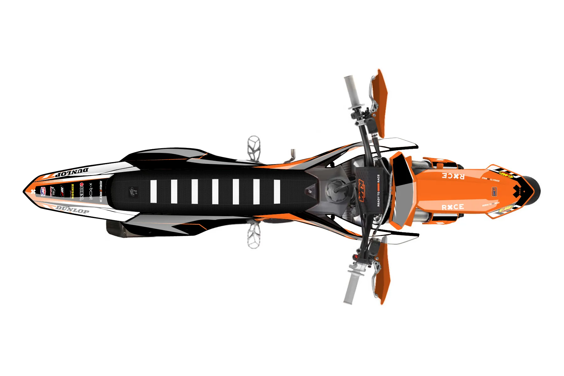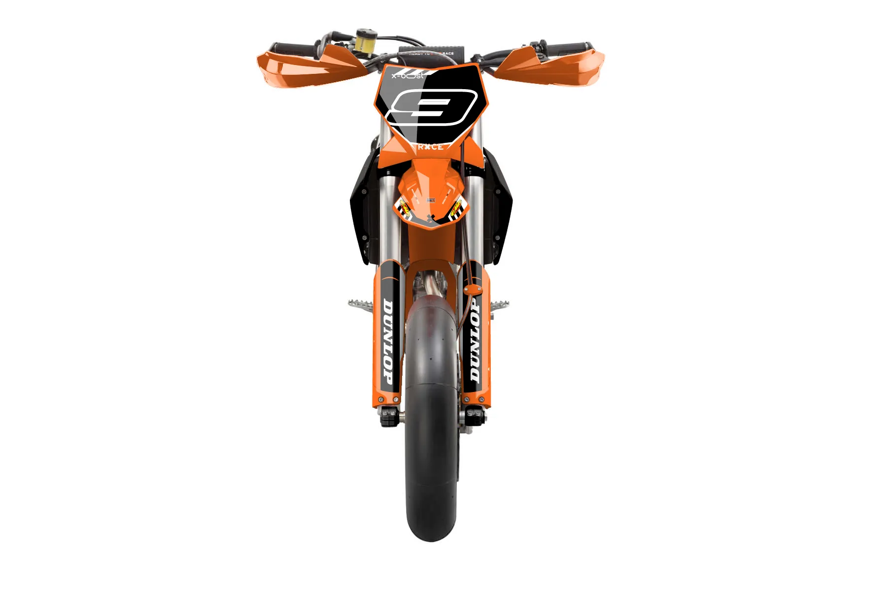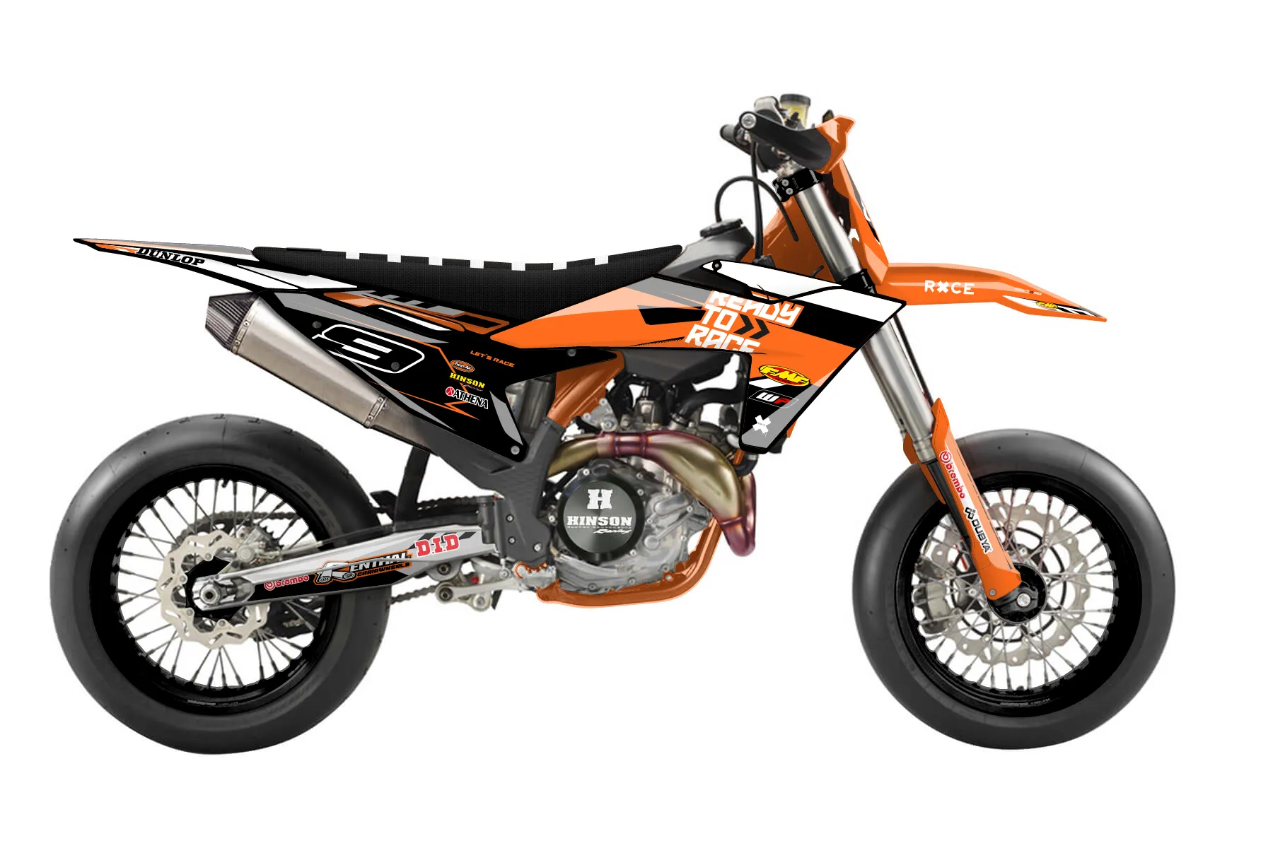 «Agile» — готовый комплект графики серии Maverick для KTM Supermoto KTM SMR 450 2025. В комплекте: графика на бак и боковые облицовки, крылья (переднее и заднее), передний щиток, номерные таблички, защита вилки. Материал: ПВХ-винил 80 мкр с холодной ламинацией 300 мкр, общая толщина 380 мкр; покрытие глянцевое или матовое на выбор. Устойчив к UV-излучению, воде, бензину и мойке высокого давления. Клей акриловый на сольвентной основе — постоянный, для гибких пластиков. На простых поверхностях монтируется без нагрева; для сложных изгибов рекомендуем фен. Этот пресет можно заказать как есть или взять за основу в конструкторе: поменять цвета, добавить стартовый номер и свой бренд. Производство — 3–5 рабочих дней, доставка по России СДЭКом или Почтой, по СНГ — курьерскими службами.