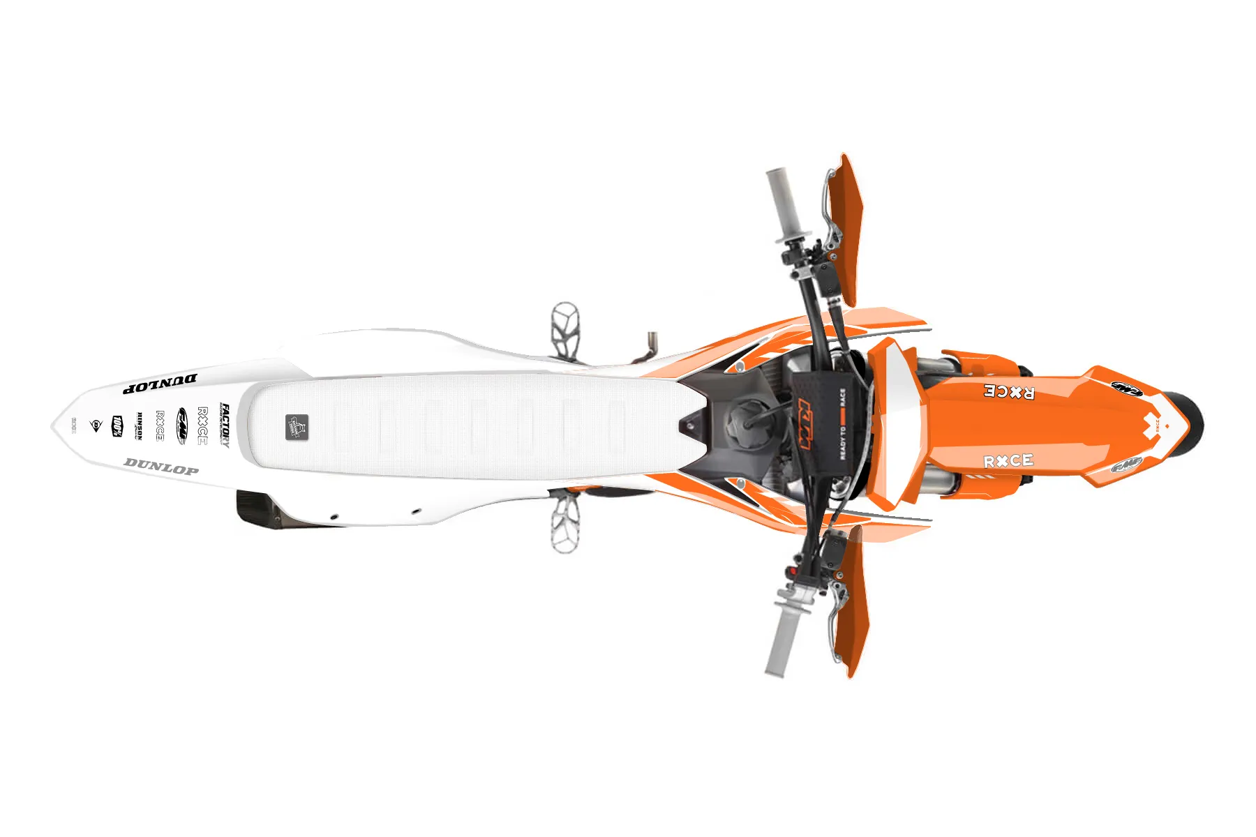 «Bones» — готовый комплект графики серии Maverick для KTM Supermoto KTM SMR 450 2025. В комплекте: графика на бак и боковые облицовки, крылья (переднее и заднее), передний щиток, номерные таблички, защита вилки. Материал: ПВХ-винил 80 мкр с холодной ламинацией 300 мкр, общая толщина 380 мкр; покрытие глянцевое или матовое на выбор. Устойчив к UV-излучению, воде, бензину и мойке высокого давления. Клей акриловый на сольвентной основе — постоянный, для гибких пластиков. На простых поверхностях монтируется без нагрева; для сложных изгибов рекомендуем фен. Этот пресет можно заказать как есть или взять за основу в конструкторе: поменять цвета, добавить стартовый номер и свой бренд. Производство — 3–5 рабочих дней, доставка по России СДЭКом или Почтой, по СНГ — курьерскими службами.