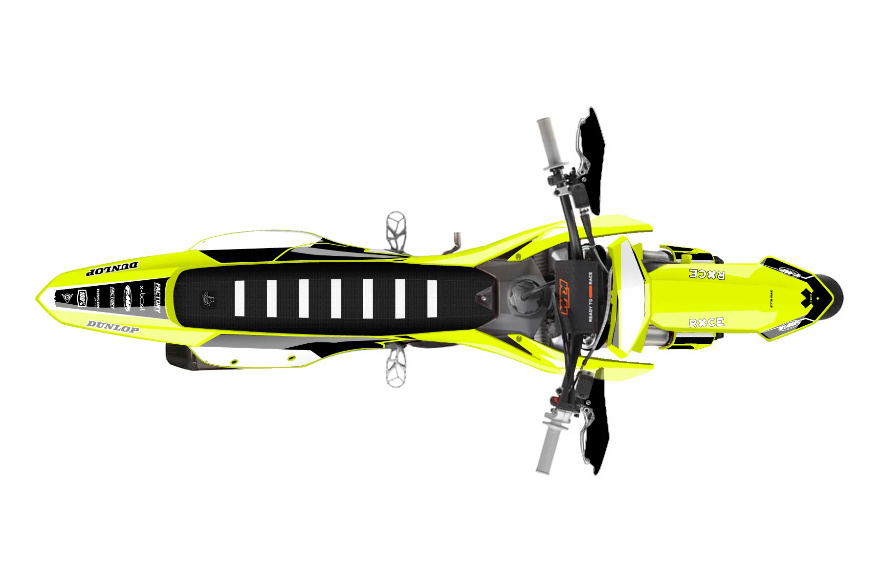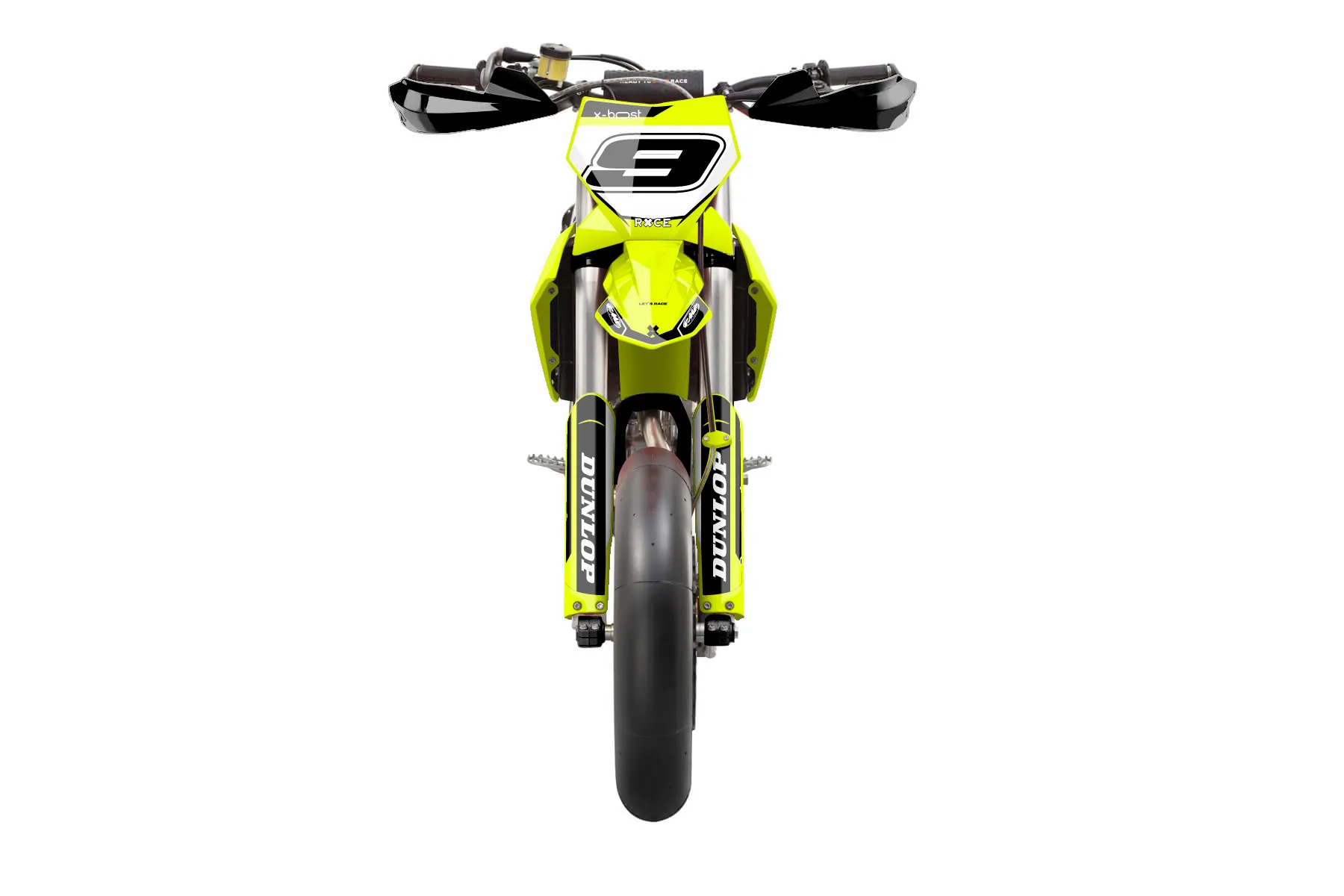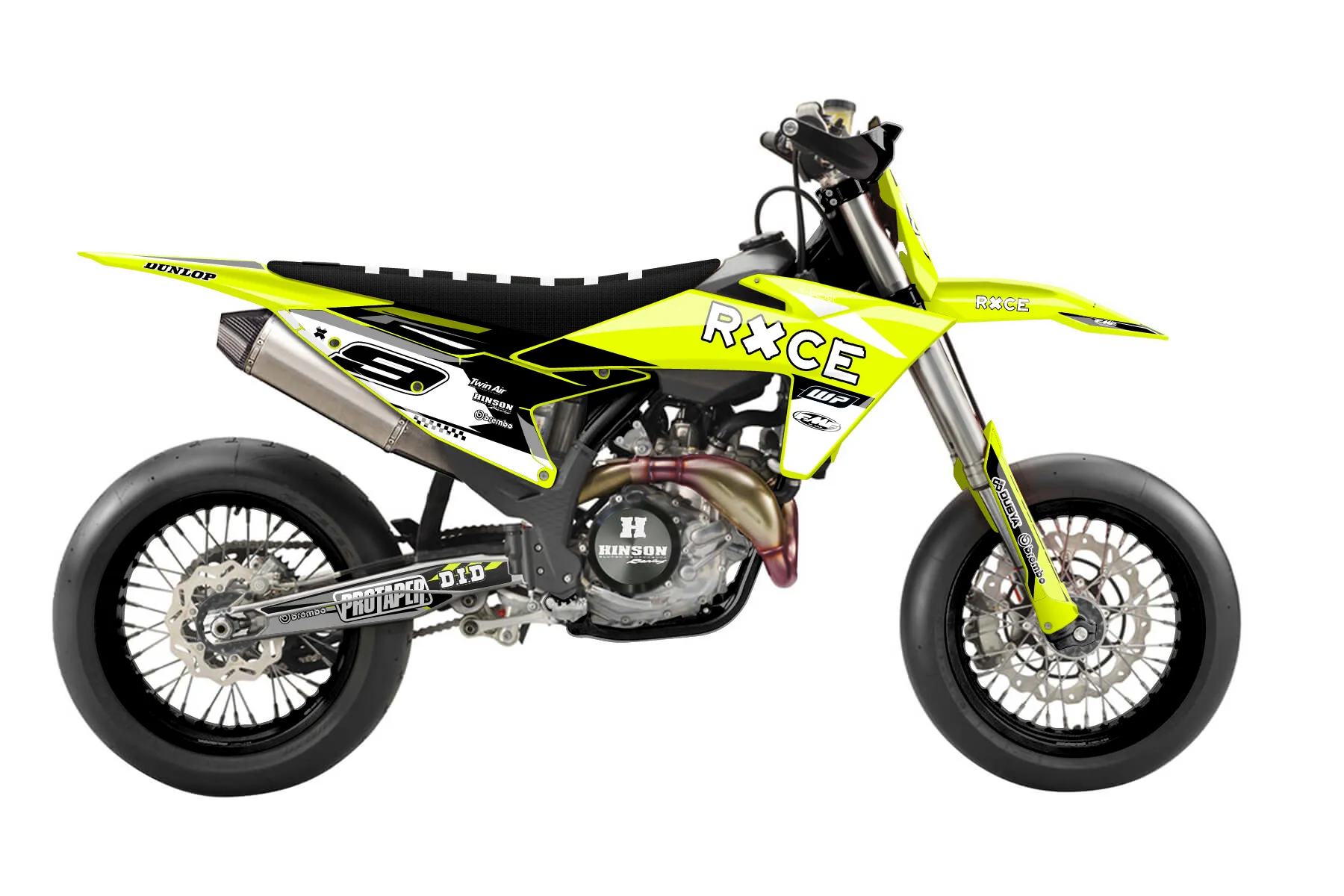 «Bright Neon» — готовый комплект графики серии Maverick для KTM Supermoto KTM SMR 450 2025. В комплекте: графика на бак и боковые облицовки, крылья (переднее и заднее), передний щиток, номерные таблички, защита вилки. Материал: ПВХ-винил 80 мкр с холодной ламинацией 300 мкр, общая толщина 380 мкр; покрытие глянцевое или матовое на выбор. Устойчив к UV-излучению, воде, бензину и мойке высокого давления. Клей акриловый на сольвентной основе — постоянный, для гибких пластиков. На простых поверхностях монтируется без нагрева; для сложных изгибов рекомендуем фен. Этот пресет можно заказать как есть или взять за основу в конструкторе: поменять цвета, добавить стартовый номер и свой бренд. Производство — 3–5 рабочих дней, доставка по России СДЭКом или Почтой, по СНГ — курьерскими службами.