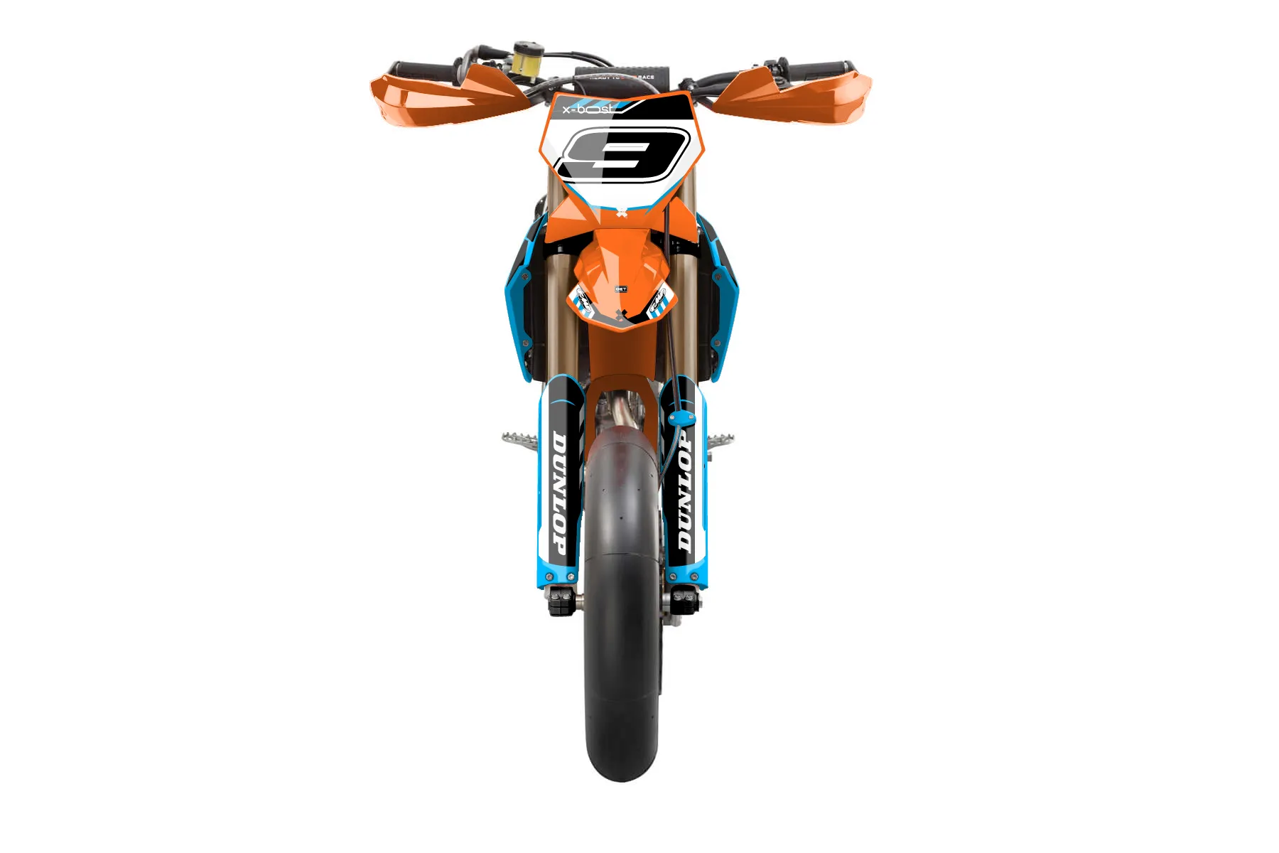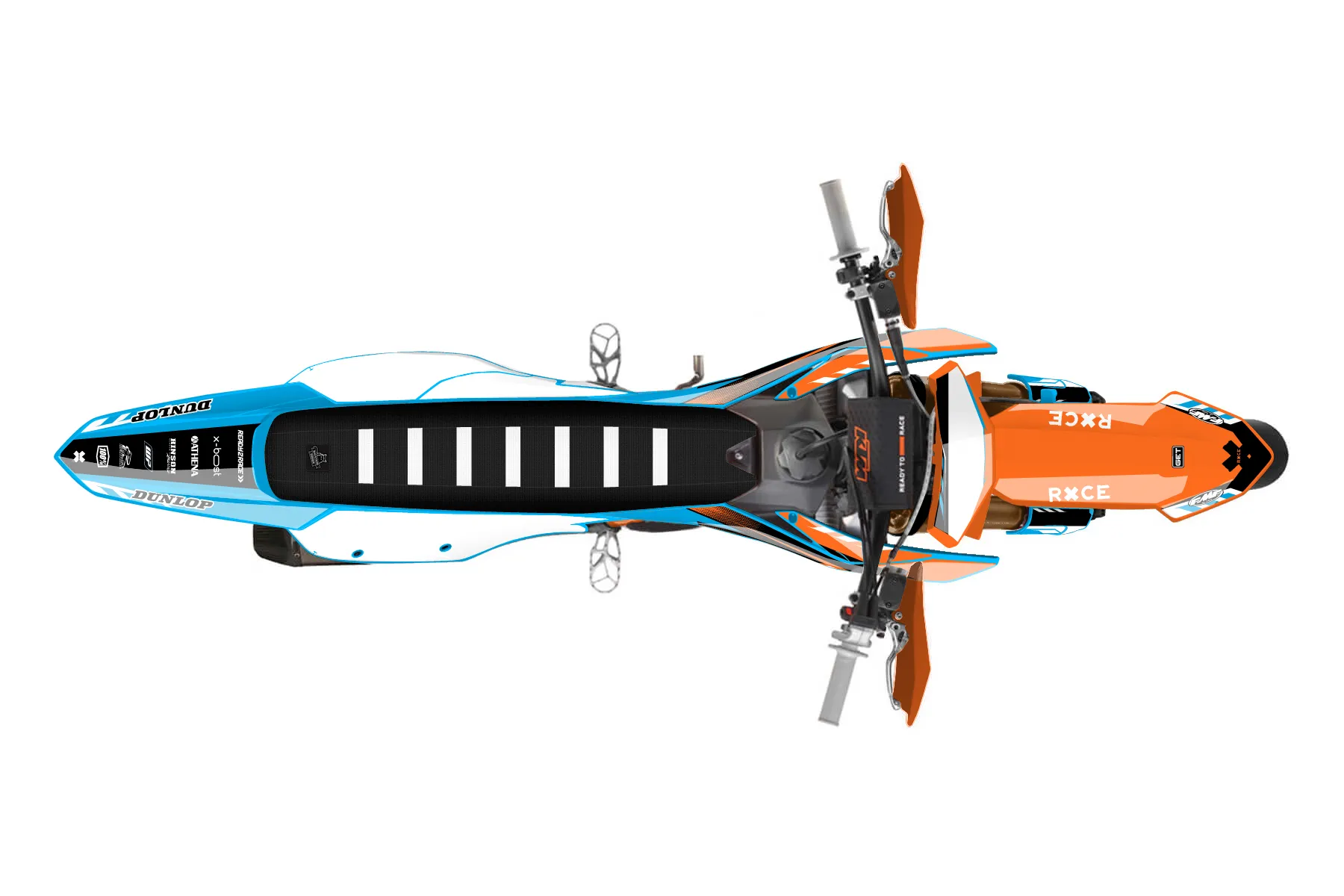 «Checkered» — готовый комплект графики серии Maverick для KTM Supermoto KTM SMR 450 2025. В комплекте: графика на бак и боковые облицовки, крылья (переднее и заднее), передний щиток, номерные таблички, защита вилки. Материал: ПВХ-винил 80 мкр с холодной ламинацией 300 мкр, общая толщина 380 мкр; покрытие глянцевое или матовое на выбор. Устойчив к UV-излучению, воде, бензину и мойке высокого давления. Клей акриловый на сольвентной основе — постоянный, для гибких пластиков. На простых поверхностях монтируется без нагрева; для сложных изгибов рекомендуем фен. Этот пресет можно заказать как есть или взять за основу в конструкторе: поменять цвета, добавить стартовый номер и свой бренд. Производство — 3–5 рабочих дней, доставка по России СДЭКом или Почтой, по СНГ — курьерскими службами.