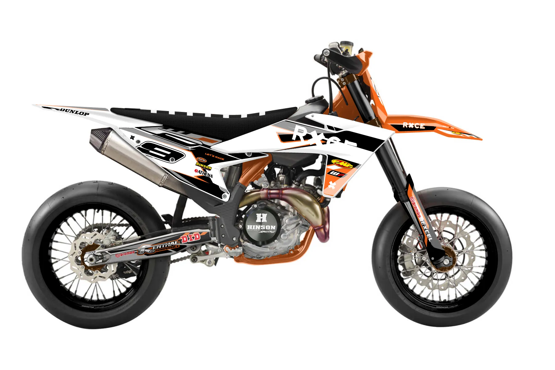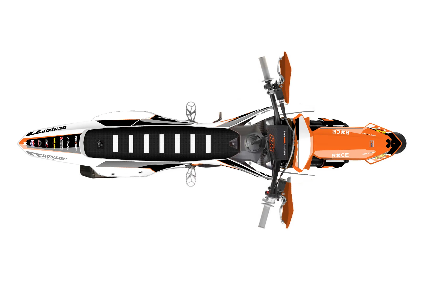 «Club» — готовый комплект графики серии Maverick для KTM Supermoto KTM SMR 450 2025. В комплекте: графика на бак и боковые облицовки, крылья (переднее и заднее), передний щиток, номерные таблички, защита вилки. Материал: ПВХ-винил 80 мкр с холодной ламинацией 300 мкр, общая толщина 380 мкр; покрытие глянцевое или матовое на выбор. Устойчив к UV-излучению, воде, бензину и мойке высокого давления. Клей акриловый на сольвентной основе — постоянный, для гибких пластиков. На простых поверхностях монтируется без нагрева; для сложных изгибов рекомендуем фен. Этот пресет можно заказать как есть или взять за основу в конструкторе: поменять цвета, добавить стартовый номер и свой бренд. Производство — 3–5 рабочих дней, доставка по России СДЭКом или Почтой, по СНГ — курьерскими службами.