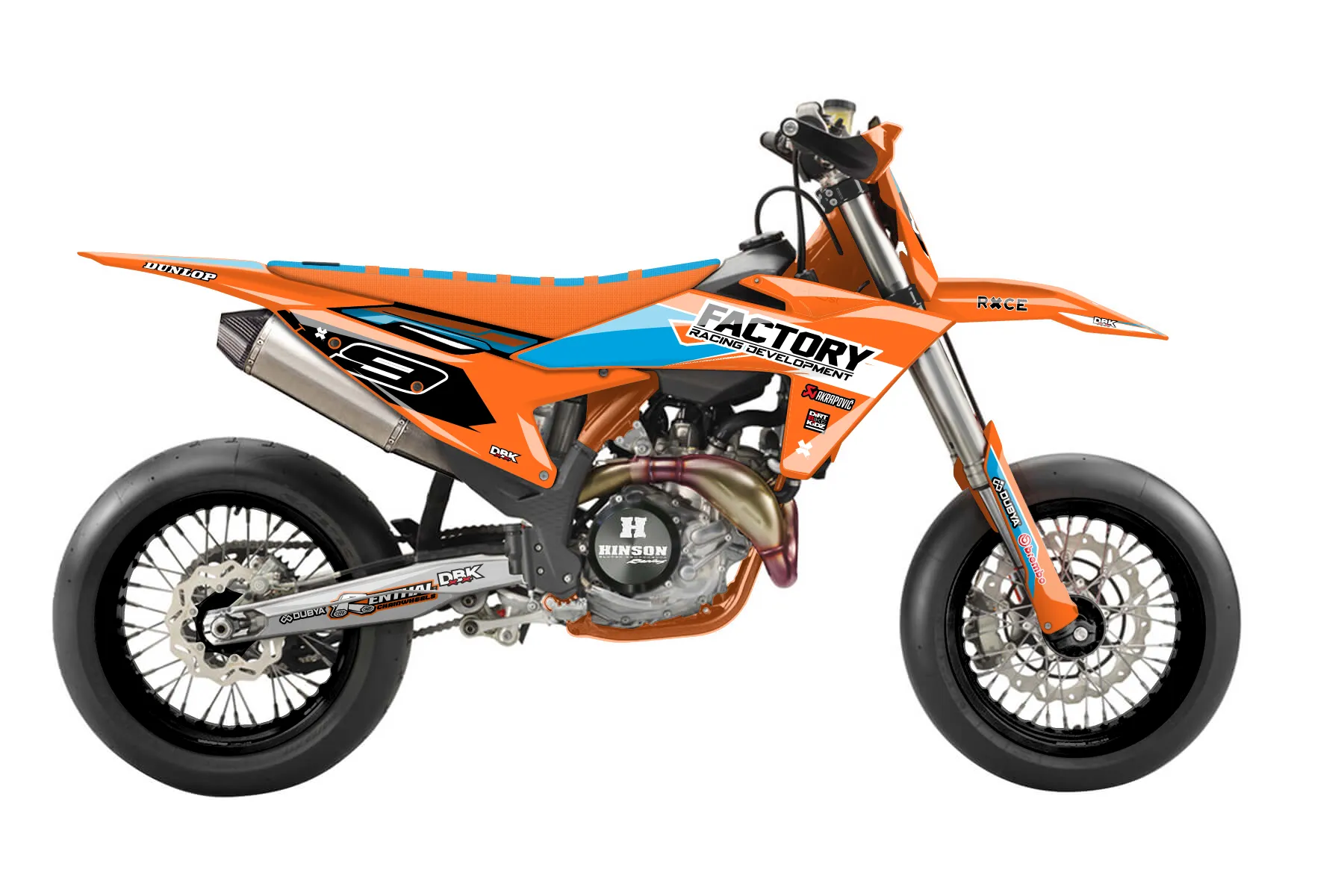 «Coach» — готовый комплект графики серии Maverick для KTM Supermoto KTM SMR 450 2025. В комплекте: графика на бак и боковые облицовки, крылья (переднее и заднее), передний щиток, номерные таблички, защита вилки. Материал: ПВХ-винил 80 мкр с холодной ламинацией 300 мкр, общая толщина 380 мкр; покрытие глянцевое или матовое на выбор. Устойчив к UV-излучению, воде, бензину и мойке высокого давления. Клей акриловый на сольвентной основе — постоянный, для гибких пластиков. На простых поверхностях монтируется без нагрева; для сложных изгибов рекомендуем фен. Этот пресет можно заказать как есть или взять за основу в конструкторе: поменять цвета, добавить стартовый номер и свой бренд. Производство — 3–5 рабочих дней, доставка по России СДЭКом или Почтой, по СНГ — курьерскими службами.