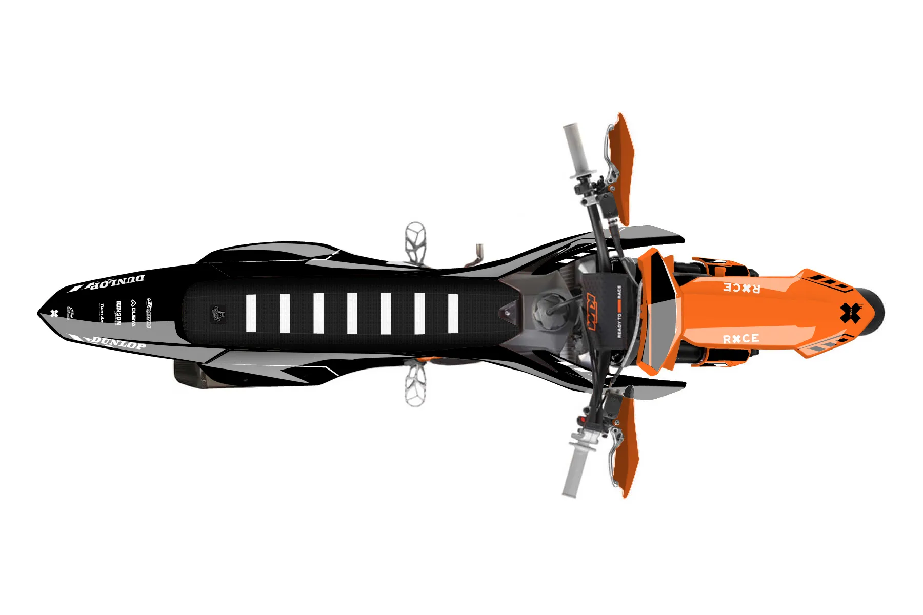 «Daze» — готовый комплект графики серии Maverick для KTM Supermoto KTM SMR 450 2025. В комплекте: графика на бак и боковые облицовки, крылья (переднее и заднее), передний щиток, номерные таблички, защита вилки. Материал: ПВХ-винил 80 мкр с холодной ламинацией 300 мкр, общая толщина 380 мкр; покрытие глянцевое или матовое на выбор. Устойчив к UV-излучению, воде, бензину и мойке высокого давления. Клей акриловый на сольвентной основе — постоянный, для гибких пластиков. На простых поверхностях монтируется без нагрева; для сложных изгибов рекомендуем фен. Этот пресет можно заказать как есть или взять за основу в конструкторе: поменять цвета, добавить стартовый номер и свой бренд. Производство — 3–5 рабочих дней, доставка по России СДЭКом или Почтой, по СНГ — курьерскими службами.