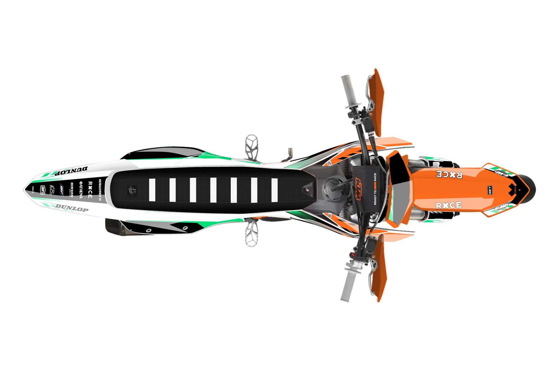 «Future» — готовый комплект графики серии Maverick для KTM Supermoto KTM SMR 450 2025. В комплекте: графика на бак и боковые облицовки, крылья (переднее и заднее), передний щиток, номерные таблички, защита вилки. Материал: ПВХ-винил 80 мкр с холодной ламинацией 300 мкр, общая толщина 380 мкр; покрытие глянцевое или матовое на выбор. Устойчив к UV-излучению, воде, бензину и мойке высокого давления. Клей акриловый на сольвентной основе — постоянный, для гибких пластиков. На простых поверхностях монтируется без нагрева; для сложных изгибов рекомендуем фен. Этот пресет можно заказать как есть или взять за основу в конструкторе: поменять цвета, добавить стартовый номер и свой бренд. Производство — 3–5 рабочих дней, доставка по России СДЭКом или Почтой, по СНГ — курьерскими службами.