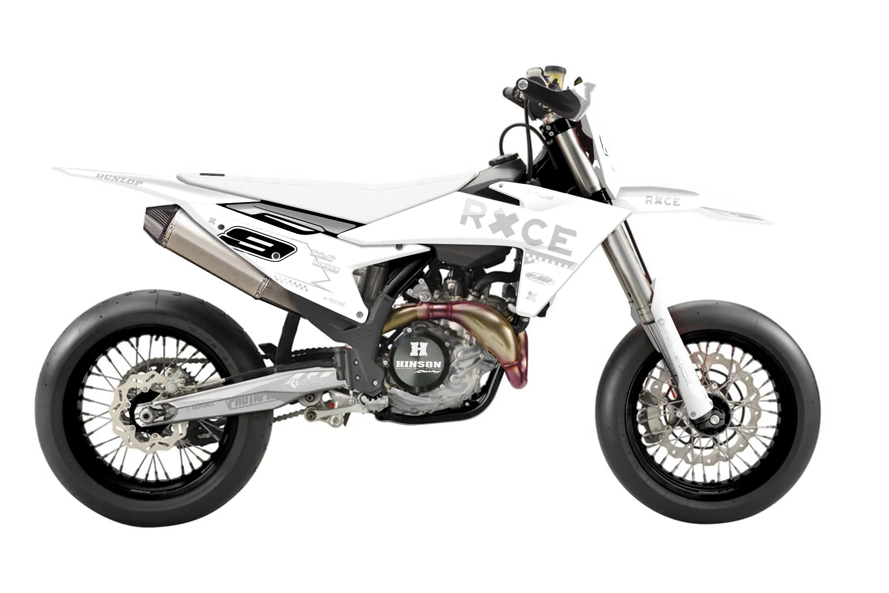 «Ghost» — готовый комплект графики серии Maverick для KTM Supermoto KTM SMR 450 2025. В комплекте: графика на бак и боковые облицовки, крылья (переднее и заднее), передний щиток, номерные таблички, защита вилки. Материал: ПВХ-винил 80 мкр с холодной ламинацией 300 мкр, общая толщина 380 мкр; покрытие глянцевое или матовое на выбор. Устойчив к UV-излучению, воде, бензину и мойке высокого давления. Клей акриловый на сольвентной основе — постоянный, для гибких пластиков. На простых поверхностях монтируется без нагрева; для сложных изгибов рекомендуем фен. Этот пресет можно заказать как есть или взять за основу в конструкторе: поменять цвета, добавить стартовый номер и свой бренд. Производство — 3–5 рабочих дней, доставка по России СДЭКом или Почтой, по СНГ — курьерскими службами.
