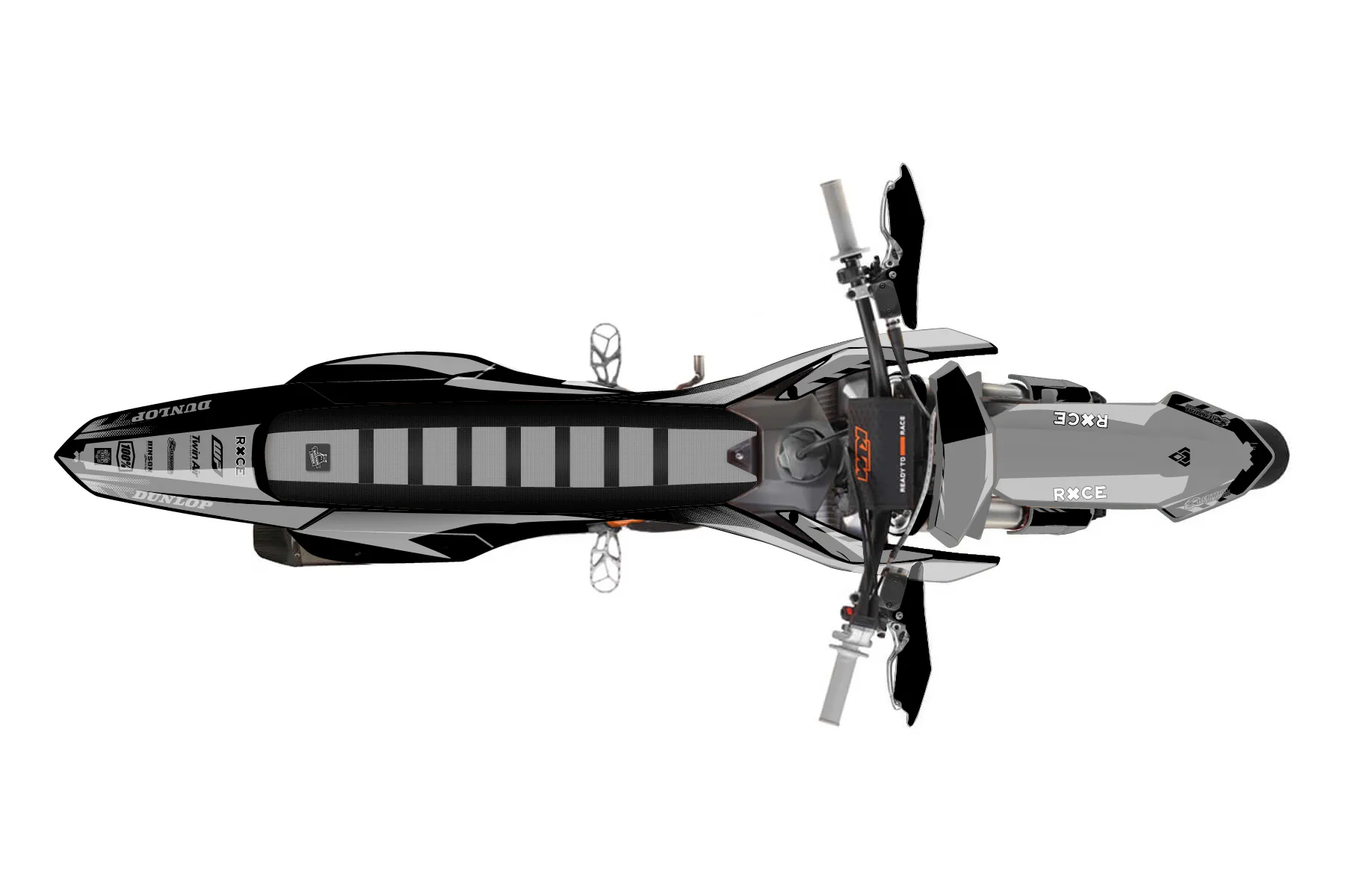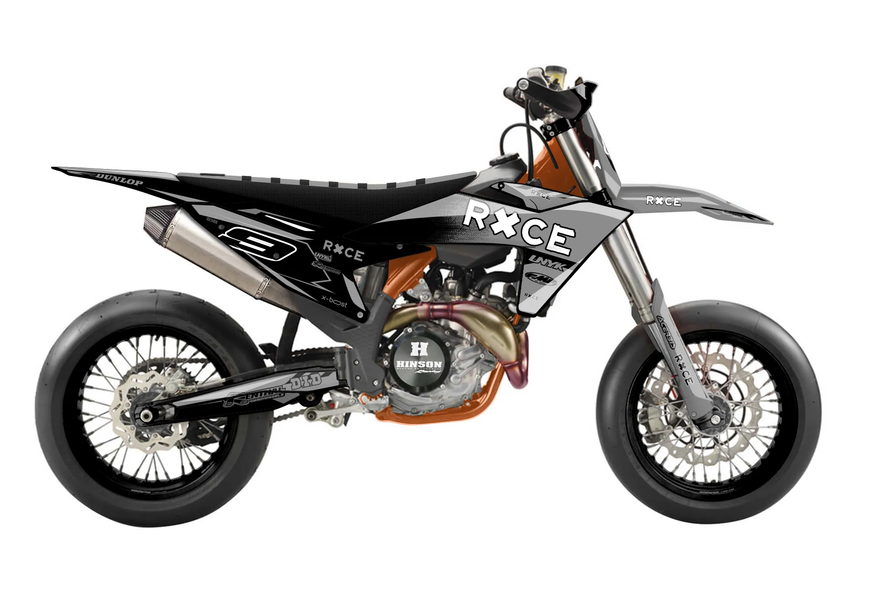 «Grip» — готовый комплект графики серии Maverick для KTM Supermoto KTM SMR 450 2025. В комплекте: графика на бак и боковые облицовки, крылья (переднее и заднее), передний щиток, номерные таблички, защита вилки. Материал: ПВХ-винил 80 мкр с холодной ламинацией 300 мкр, общая толщина 380 мкр; покрытие глянцевое или матовое на выбор. Устойчив к UV-излучению, воде, бензину и мойке высокого давления. Клей акриловый на сольвентной основе — постоянный, для гибких пластиков. На простых поверхностях монтируется без нагрева; для сложных изгибов рекомендуем фен. Этот пресет можно заказать как есть или взять за основу в конструкторе: поменять цвета, добавить стартовый номер и свой бренд. Производство — 3–5 рабочих дней, доставка по России СДЭКом или Почтой, по СНГ — курьерскими службами.