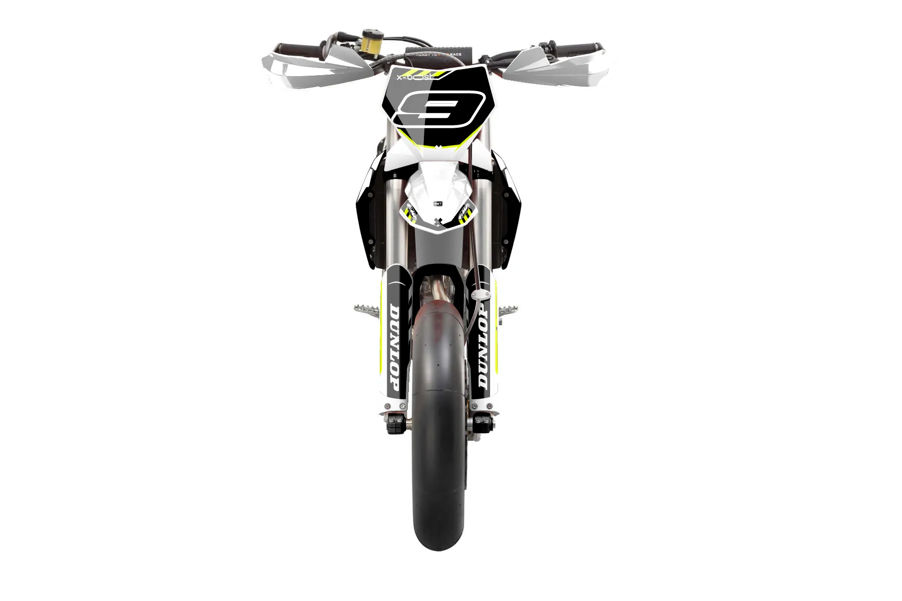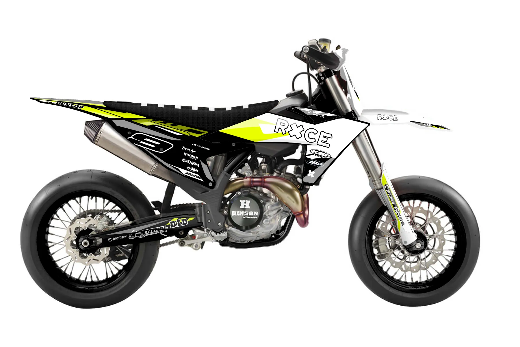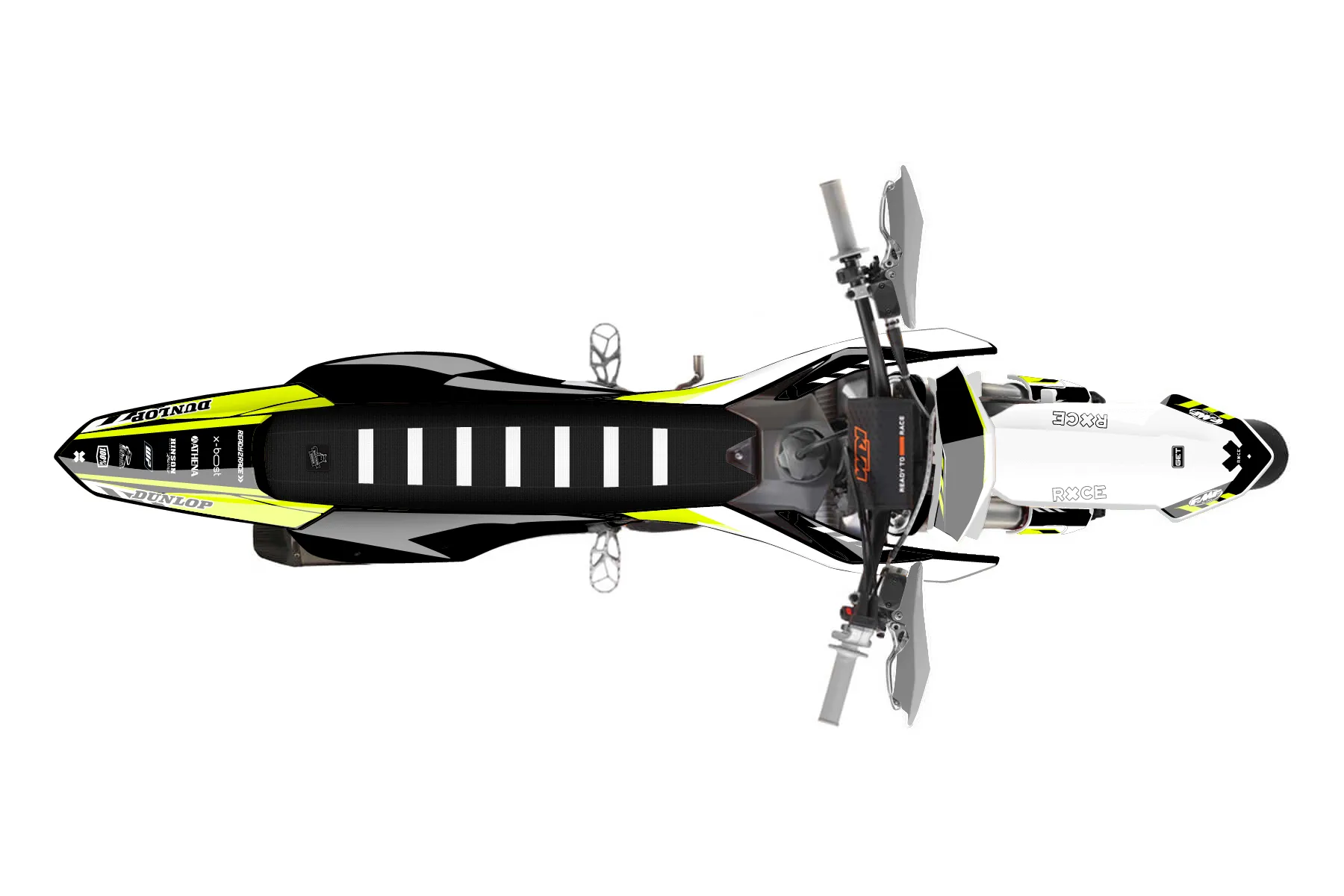 «Grip Neon» — готовый комплект графики серии Maverick для KTM Supermoto KTM SMR 450 2025. В комплекте: графика на бак и боковые облицовки, крылья (переднее и заднее), передний щиток, номерные таблички, защита вилки. Материал: ПВХ-винил 80 мкр с холодной ламинацией 300 мкр, общая толщина 380 мкр; покрытие глянцевое или матовое на выбор. Устойчив к UV-излучению, воде, бензину и мойке высокого давления. Клей акриловый на сольвентной основе — постоянный, для гибких пластиков. На простых поверхностях монтируется без нагрева; для сложных изгибов рекомендуем фен. Этот пресет можно заказать как есть или взять за основу в конструкторе: поменять цвета, добавить стартовый номер и свой бренд. Производство — 3–5 рабочих дней, доставка по России СДЭКом или Почтой, по СНГ — курьерскими службами.