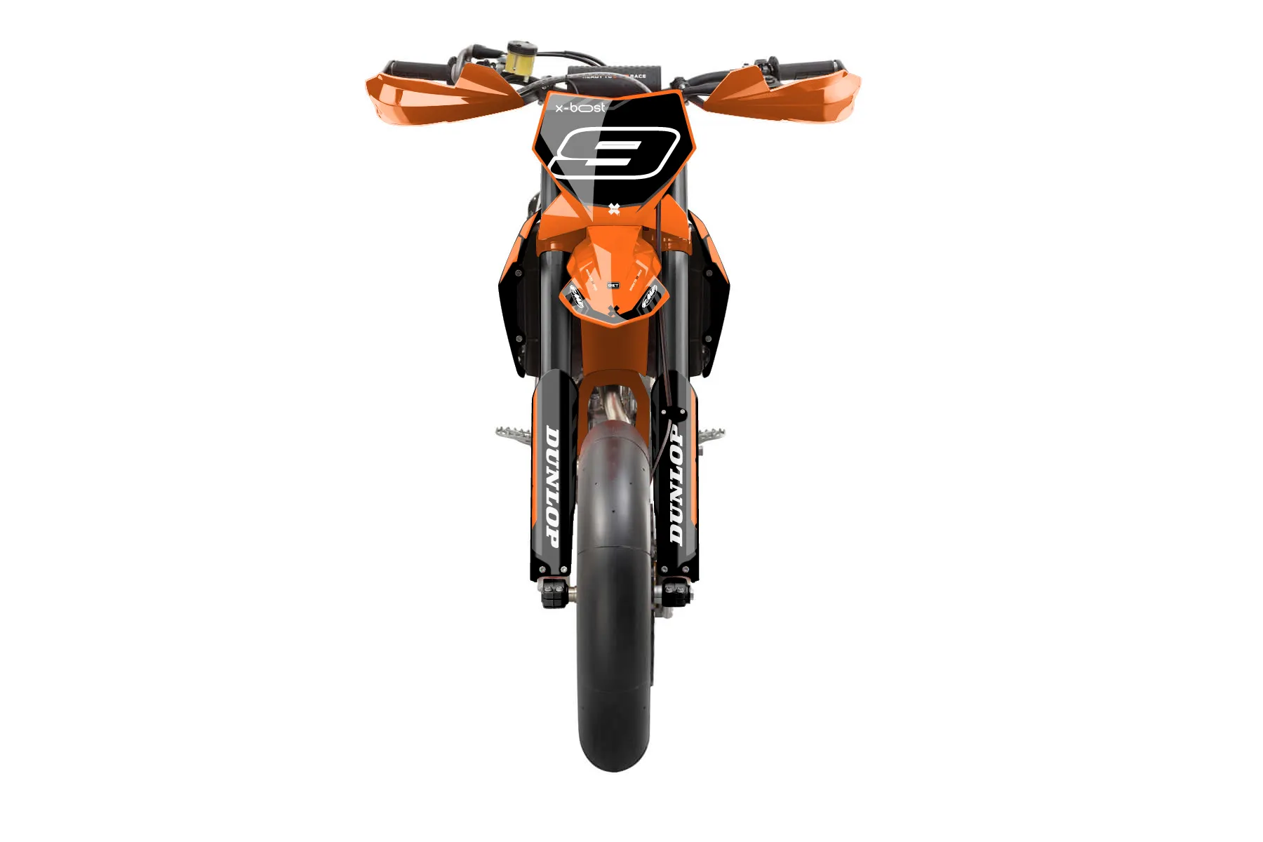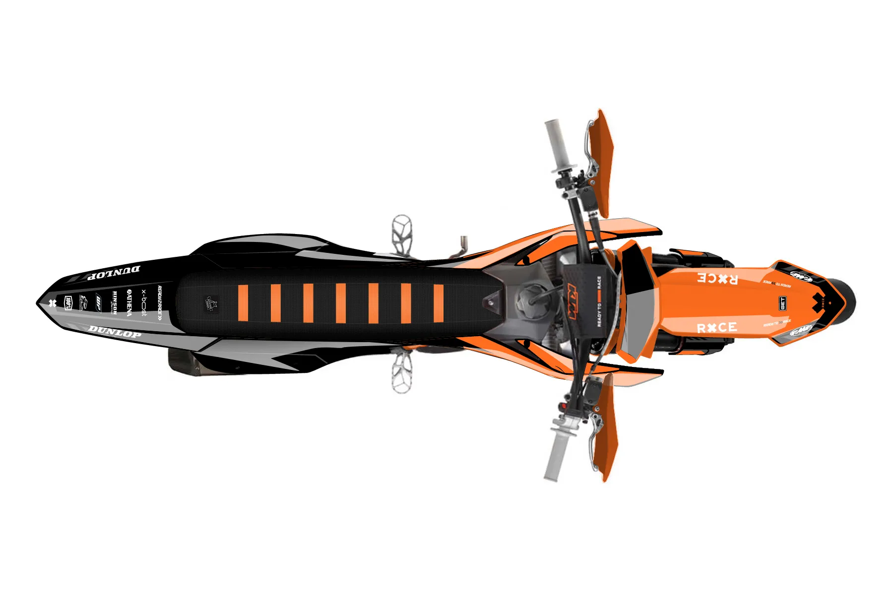 «Leader» — готовый комплект графики серии Maverick для KTM Supermoto KTM SMR 450 2025. В комплекте: графика на бак и боковые облицовки, крылья (переднее и заднее), передний щиток, номерные таблички, защита вилки. Материал: ПВХ-винил 80 мкр с холодной ламинацией 300 мкр, общая толщина 380 мкр; покрытие глянцевое или матовое на выбор. Устойчив к UV-излучению, воде, бензину и мойке высокого давления. Клей акриловый на сольвентной основе — постоянный, для гибких пластиков. На простых поверхностях монтируется без нагрева; для сложных изгибов рекомендуем фен. Этот пресет можно заказать как есть или взять за основу в конструкторе: поменять цвета, добавить стартовый номер и свой бренд. Производство — 3–5 рабочих дней, доставка по России СДЭКом или Почтой, по СНГ — курьерскими службами.