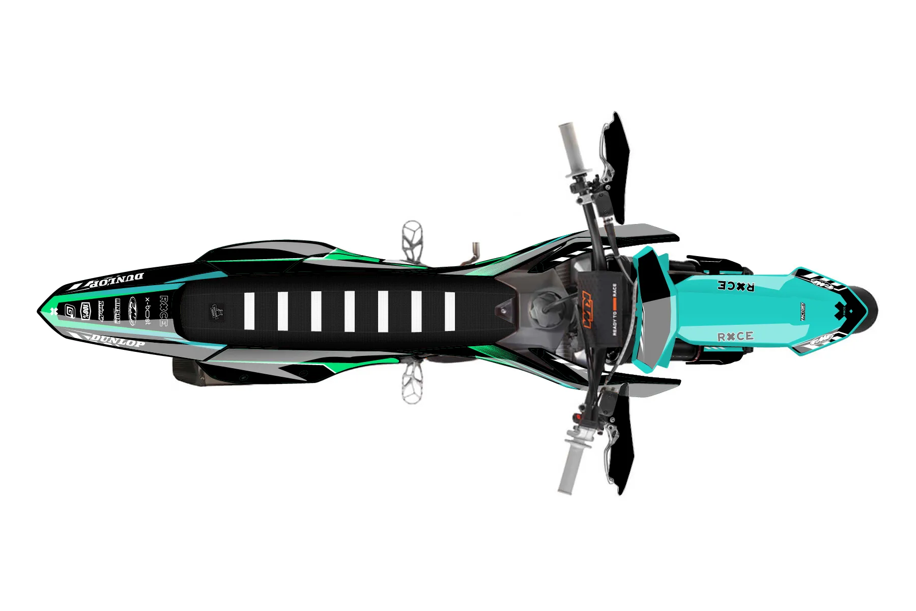 «Refuse» — готовый комплект графики серии Maverick для KTM Supermoto KTM SMR 450 2025. В комплекте: графика на бак и боковые облицовки, крылья (переднее и заднее), передний щиток, номерные таблички, защита вилки. Материал: ПВХ-винил 80 мкр с холодной ламинацией 300 мкр, общая толщина 380 мкр; покрытие глянцевое или матовое на выбор. Устойчив к UV-излучению, воде, бензину и мойке высокого давления. Клей акриловый на сольвентной основе — постоянный, для гибких пластиков. На простых поверхностях монтируется без нагрева; для сложных изгибов рекомендуем фен. Этот пресет можно заказать как есть или взять за основу в конструкторе: поменять цвета, добавить стартовый номер и свой бренд. Производство — 3–5 рабочих дней, доставка по России СДЭКом или Почтой, по СНГ — курьерскими службами.
