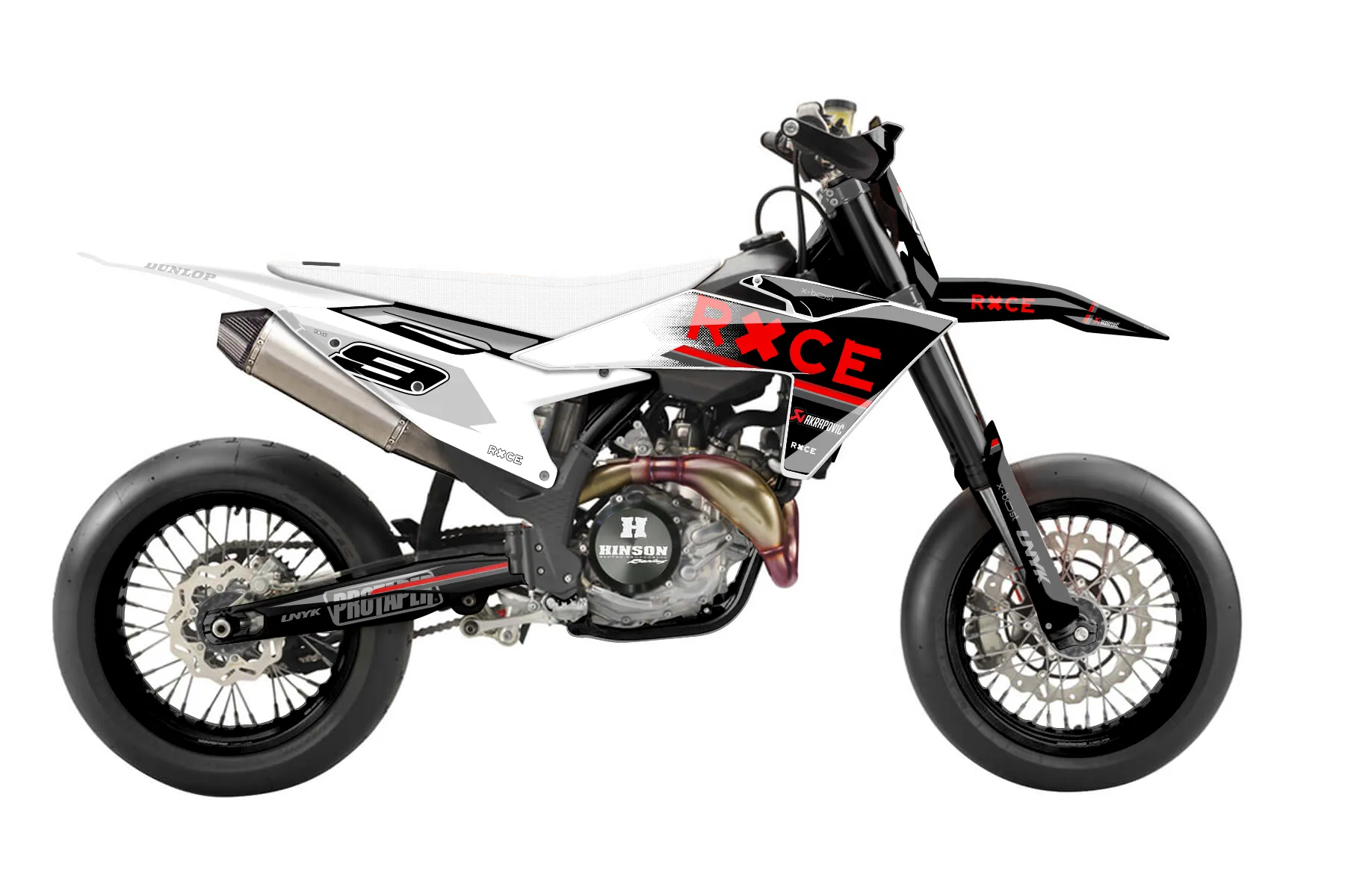 «Rise» — готовый комплект графики серии Maverick для KTM Supermoto KTM SMR 450 2025. В комплекте: графика на бак и боковые облицовки, крылья (переднее и заднее), передний щиток, номерные таблички, защита вилки. Материал: ПВХ-винил 80 мкр с холодной ламинацией 300 мкр, общая толщина 380 мкр; покрытие глянцевое или матовое на выбор. Устойчив к UV-излучению, воде, бензину и мойке высокого давления. Клей акриловый на сольвентной основе — постоянный, для гибких пластиков. На простых поверхностях монтируется без нагрева; для сложных изгибов рекомендуем фен. Этот пресет можно заказать как есть или взять за основу в конструкторе: поменять цвета, добавить стартовый номер и свой бренд. Производство — 3–5 рабочих дней, доставка по России СДЭКом или Почтой, по СНГ — курьерскими службами.