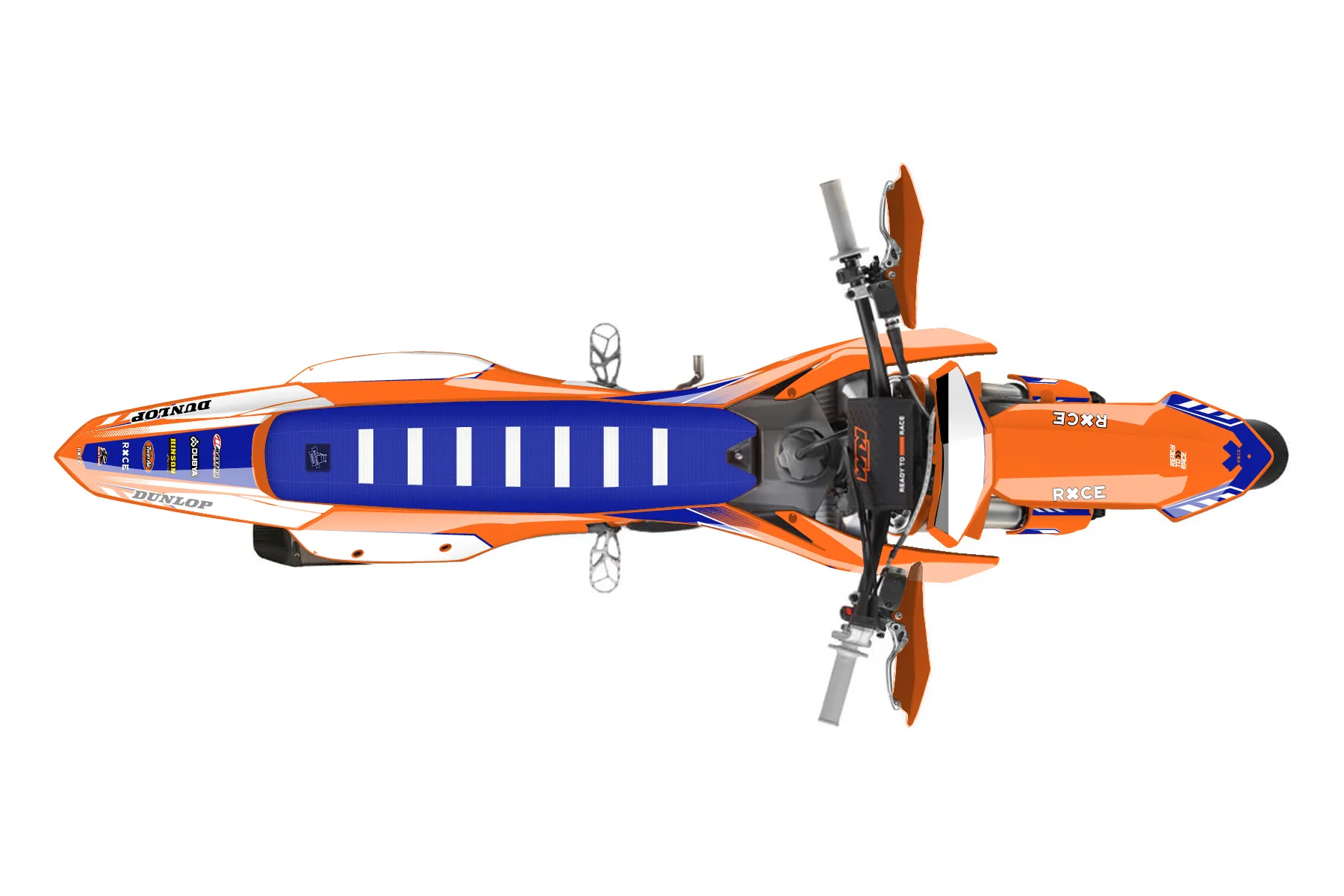 «Showtime» — готовый комплект графики серии Maverick для KTM Supermoto KTM SMR 450 2025. В комплекте: графика на бак и боковые облицовки, крылья (переднее и заднее), передний щиток, номерные таблички, защита вилки. Материал: ПВХ-винил 80 мкр с холодной ламинацией 300 мкр, общая толщина 380 мкр; покрытие глянцевое или матовое на выбор. Устойчив к UV-излучению, воде, бензину и мойке высокого давления. Клей акриловый на сольвентной основе — постоянный, для гибких пластиков. На простых поверхностях монтируется без нагрева; для сложных изгибов рекомендуем фен. Этот пресет можно заказать как есть или взять за основу в конструкторе: поменять цвета, добавить стартовый номер и свой бренд. Производство — 3–5 рабочих дней, доставка по России СДЭКом или Почтой, по СНГ — курьерскими службами.