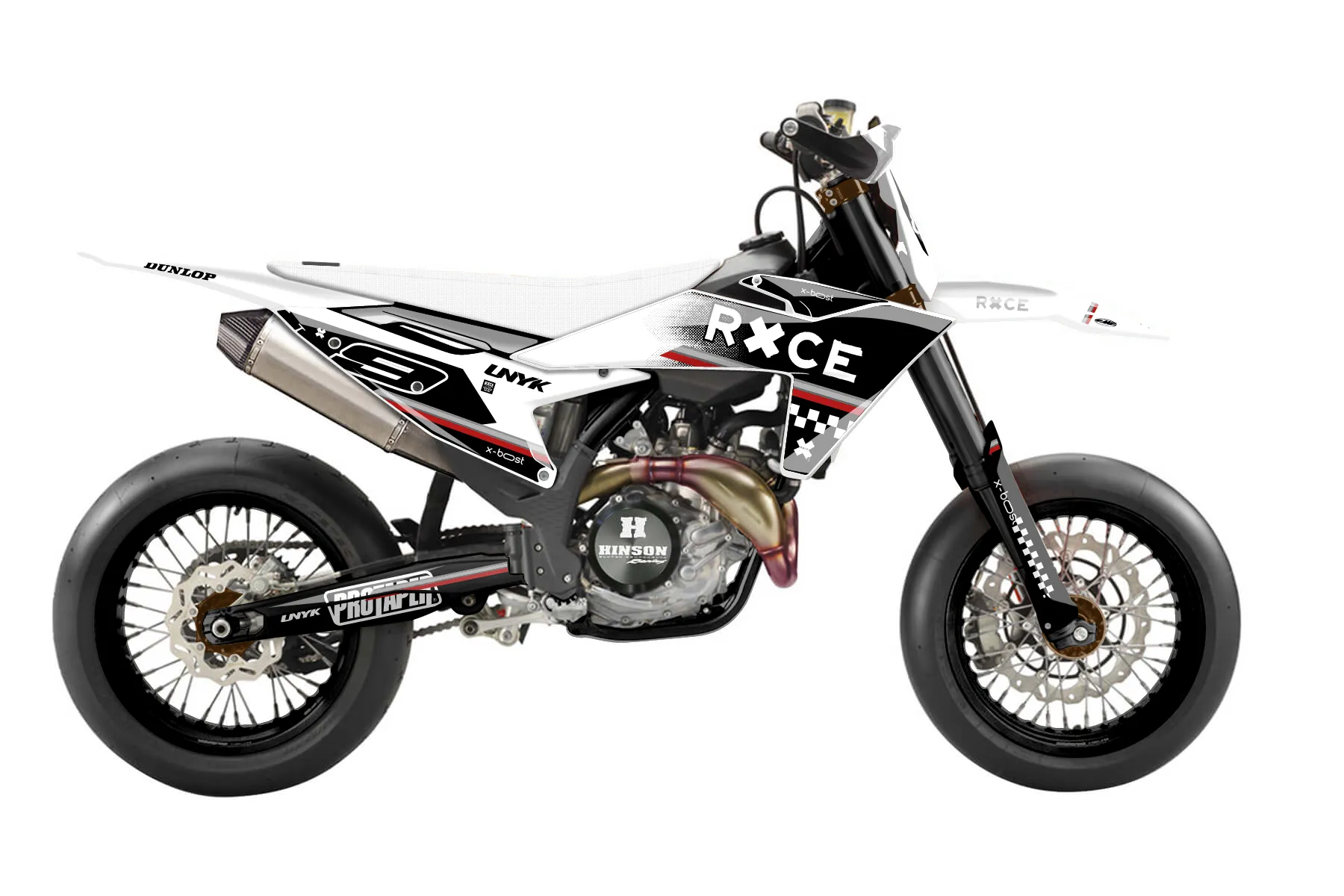 «Speedy» — готовый комплект графики серии Maverick для KTM Supermoto KTM SMR 450 2025. В комплекте: графика на бак и боковые облицовки, крылья (переднее и заднее), передний щиток, номерные таблички, защита вилки. Материал: ПВХ-винил 80 мкр с холодной ламинацией 300 мкр, общая толщина 380 мкр; покрытие глянцевое или матовое на выбор. Устойчив к UV-излучению, воде, бензину и мойке высокого давления. Клей акриловый на сольвентной основе — постоянный, для гибких пластиков. На простых поверхностях монтируется без нагрева; для сложных изгибов рекомендуем фен. Этот пресет можно заказать как есть или взять за основу в конструкторе: поменять цвета, добавить стартовый номер и свой бренд. Производство — 3–5 рабочих дней, доставка по России СДЭКом или Почтой, по СНГ — курьерскими службами.