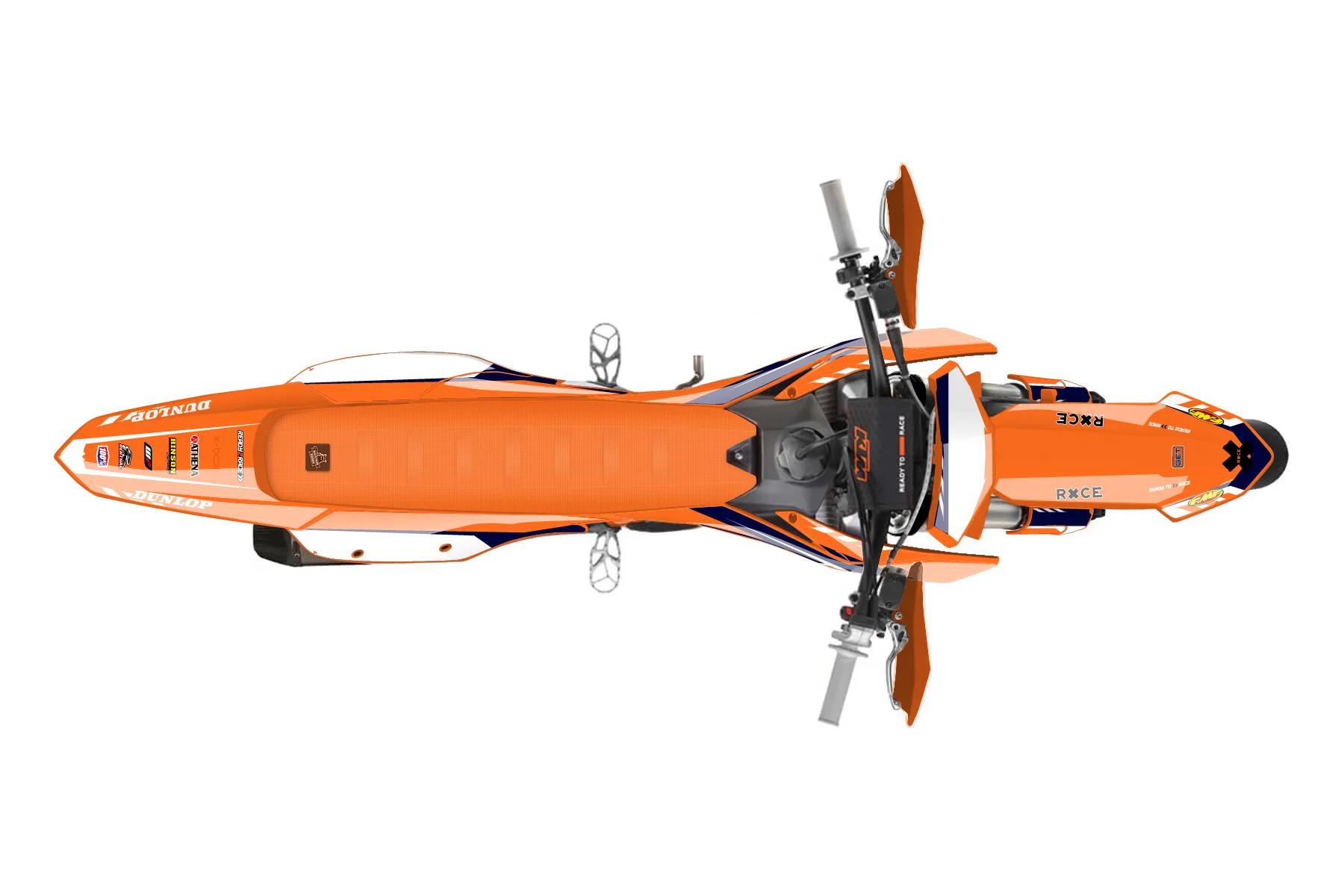 «Swift» — готовый комплект графики серии Maverick для KTM Supermoto KTM SMR 450 2025. В комплекте: графика на бак и боковые облицовки, крылья (переднее и заднее), передний щиток, номерные таблички, защита вилки. Материал: ПВХ-винил 80 мкр с холодной ламинацией 300 мкр, общая толщина 380 мкр; покрытие глянцевое или матовое на выбор. Устойчив к UV-излучению, воде, бензину и мойке высокого давления. Клей акриловый на сольвентной основе — постоянный, для гибких пластиков. На простых поверхностях монтируется без нагрева; для сложных изгибов рекомендуем фен. Этот пресет можно заказать как есть или взять за основу в конструкторе: поменять цвета, добавить стартовый номер и свой бренд. Производство — 3–5 рабочих дней, доставка по России СДЭКом или Почтой, по СНГ — курьерскими службами.